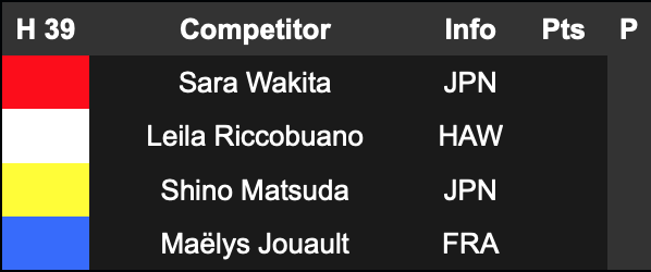 ヒート3では脇田沙良と松田詩野がまさかの同じヒートに組み込まれ、Leila Riccobuano(HAW)、Maelys Jouault(FRA)と対戦予定となっており、このヒートに関してはぜひとも日本人選手2名にワンツーフィニッシュを決めてもらいたい!