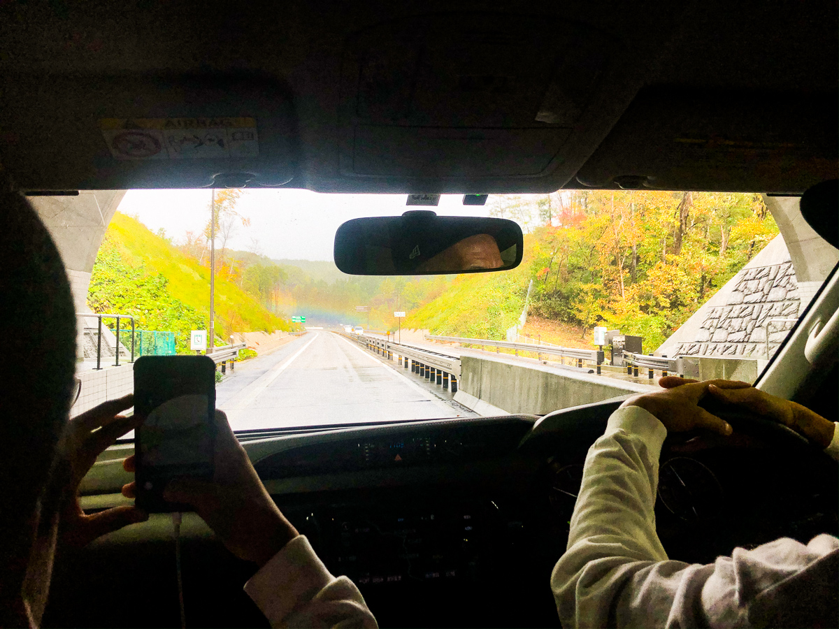 出発前にそんなことを話しながら、松岡慧斗がサポートを受けるTOYOTA HILUXと村上舜の車2台で並走しながら、激しい雨が降りしきる中、夜通し高速を走らせた。