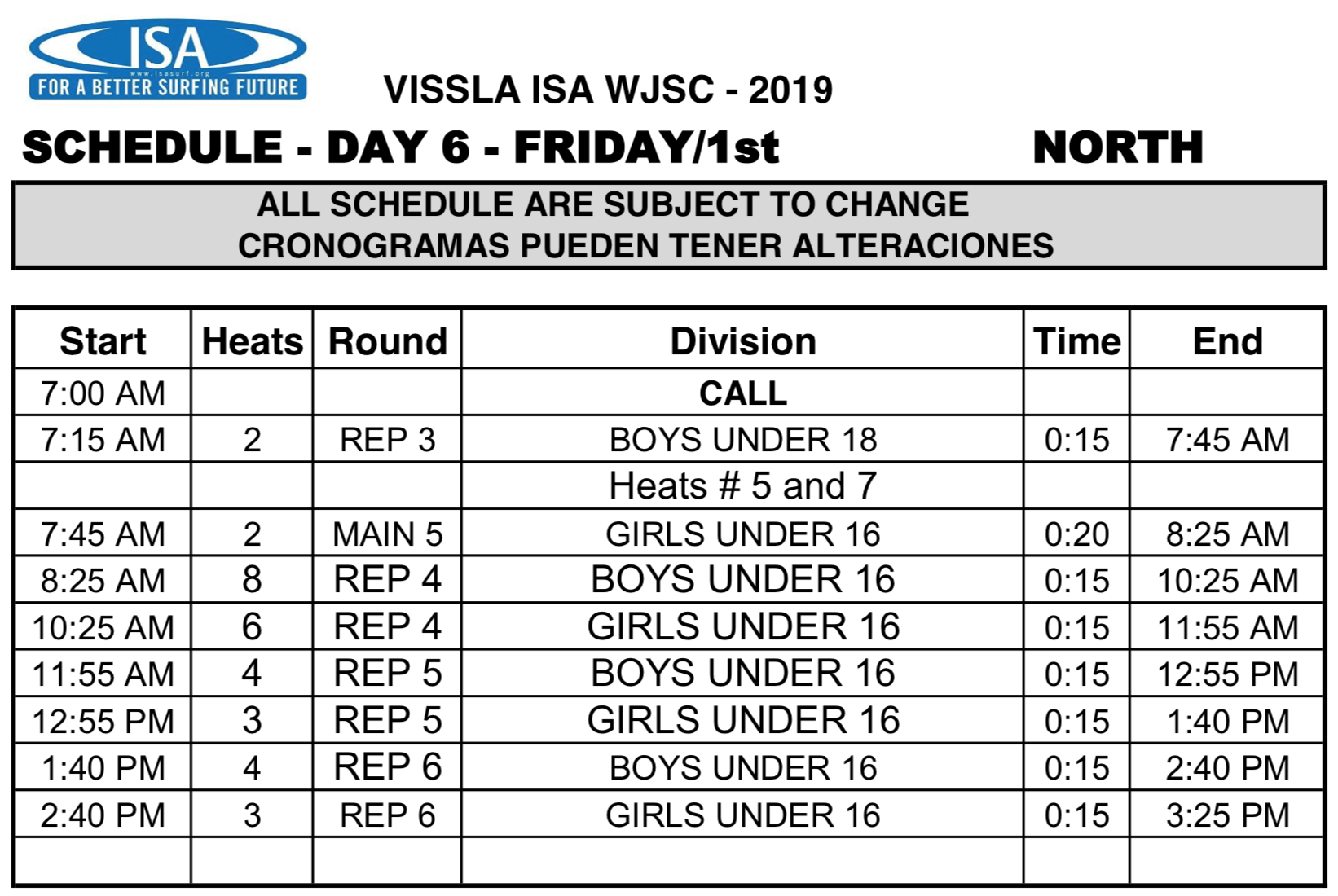 また、この日ヒートがなかった昨年のISA金メダリストで波乗りジャパンのエース的存在である上山キアヌは、リパチャージラウンド3のヒート6でSebastian Tello(PER)、Jamie Thomson(AUS)、Caleb Rapson(BAR)と対戦予定だ。
