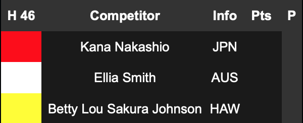 迎えるメインラウンド5のヒート1ではEllia Smith(AUS)、Betty Lou Sakura Johnson(HAW)と対戦予定となっている。