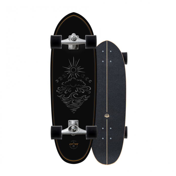 従来のモデルと比べてダウンヒルでの安定性と同時に平地でのパンプのしやすさを追求して生み出されたデッキに、太陽、風邪、そして月と潮といったサーフィンに関わる重要な要素をモチーフにしたグラフィックをデッキにあしらい、クラシックスプーン型のデッキよりもさらにハイパフォーマンスが可能な仕上がりとなって進化を遂げた。