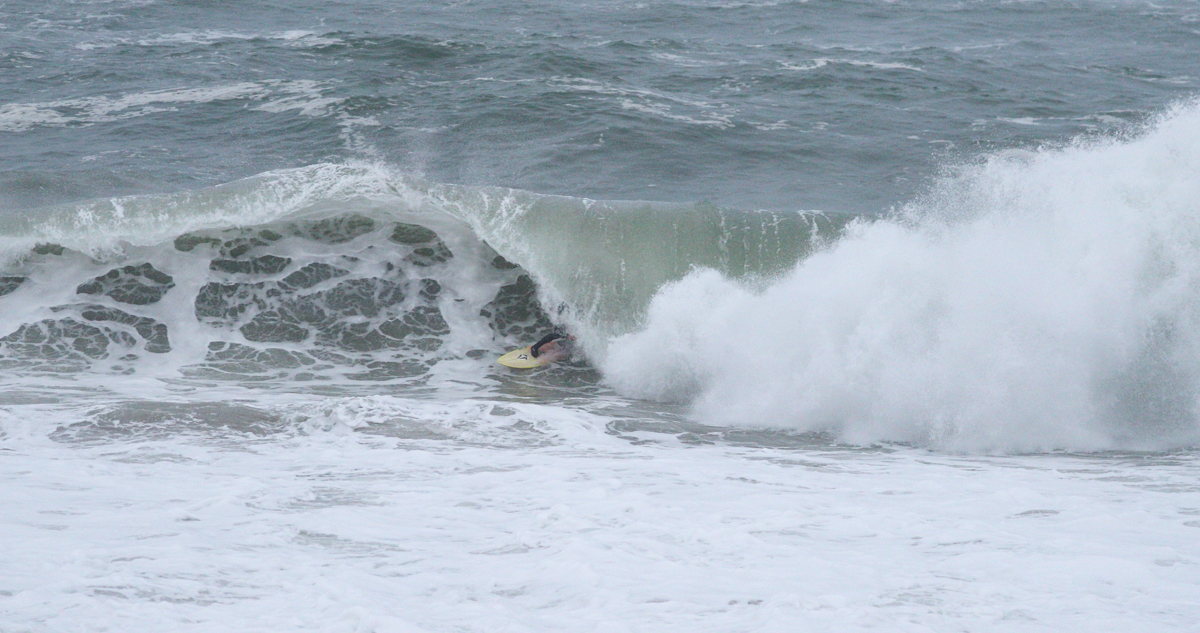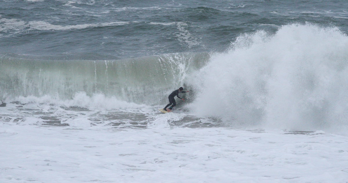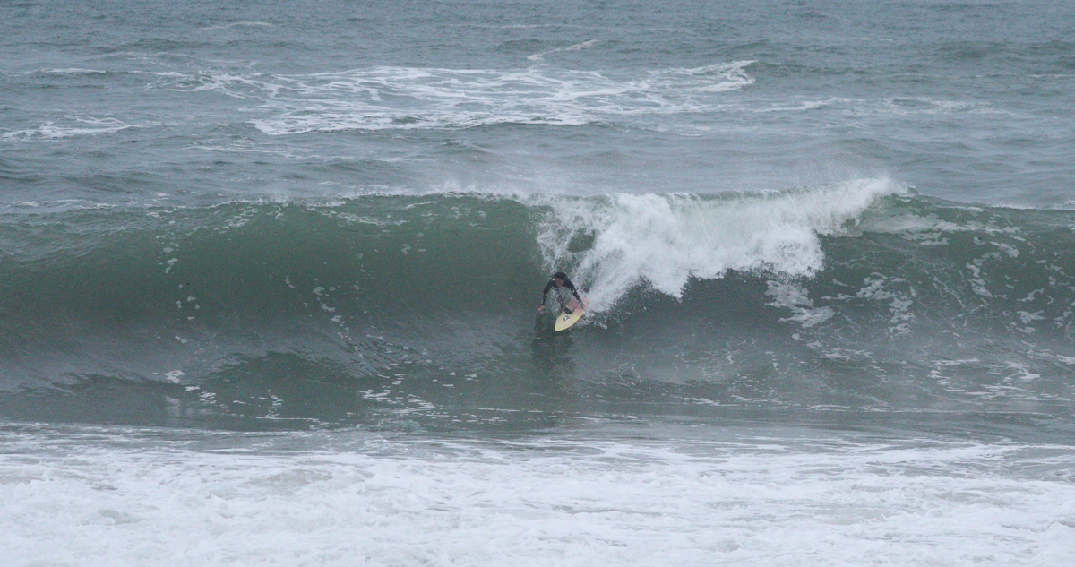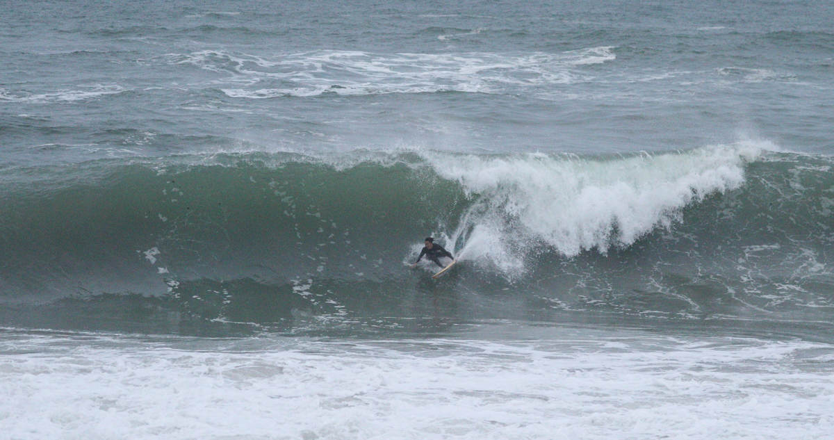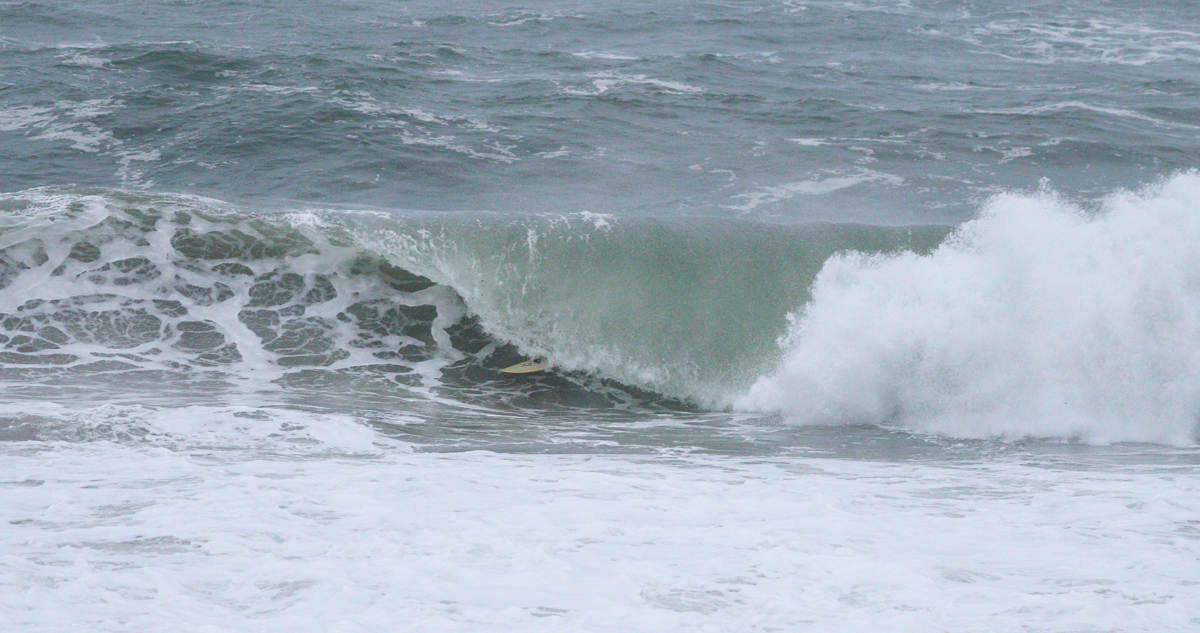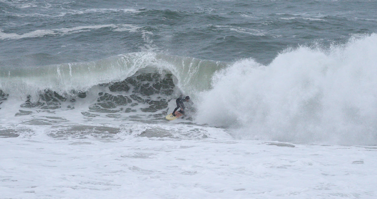 波は予想に反してスペシャルとはならなかったものの、オンショアが吹き荒れる中、風にも負けないパワフルなうねりがインサイドのサンドバーにヒットし、グリグリのチューブを形成。