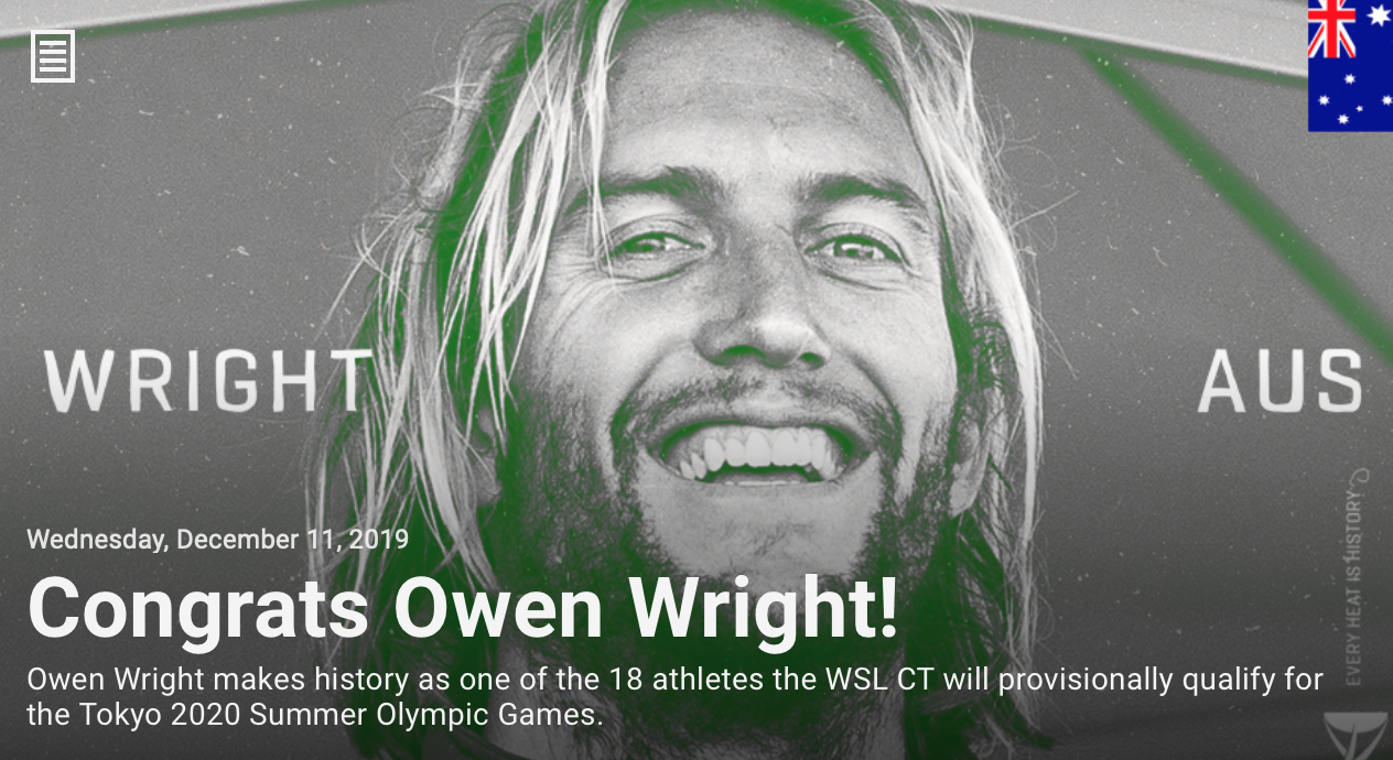 さらにCTランキング10位以内となったことで2020年東京オリンピックの日本代表選手枠が決定となった五十嵐カノアの引き続き、Gabriel Medinaがブラジル代表として、Owen Wrightがオーストラリア代表として、Michel Bourezがフランス代表としてオリンピック出場権を獲得。
