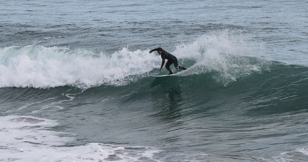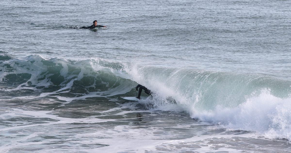 翌朝になると大原洋人も合流し、さらには西慶司郎まで駆け付け、各ブレイクをチェックしてみたものの、風が合わなかったり形が悪かったりで結局すぐにはセッションとならず、ゆっくりランチを取りつつ、サイズが弱冠上がってきた雰囲気が漂い始めたお昼過ぎに、某ショアブレイクで1ラウンドということになった。
