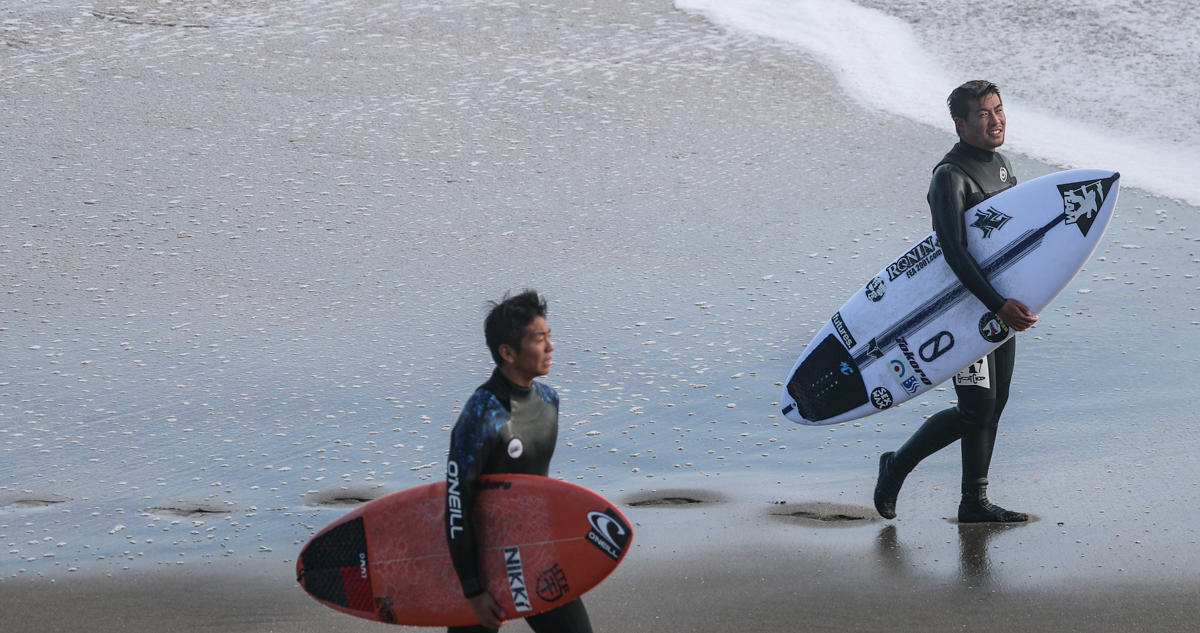 セット胸あるかないか程度の、本当に岸からすぐのショアブレイクで、良いか悪いかと聞かれれば消して良いとは言えないようなコンディションであったにも関わらず、そこはさすがこの日本トップレベルのこのメンツ。