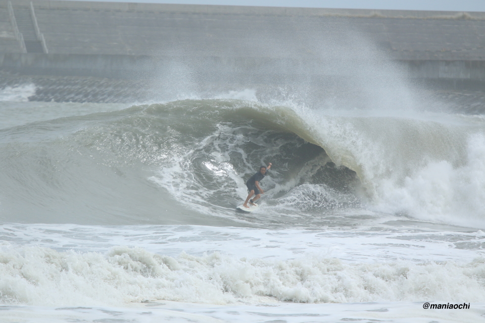決してパーフェクトとは言えないブレイクと強いカレントとウネリの方向すら変化するまさにハードコアブレイク!インサイドは凄まじいシュアブレイクでアウトに出るタイミングすらなかなか掴めないそんな状況の中ではあったが時折ブレイクするどか掘れセクションを狙うまさにプロサーファー魂を感じるセッションとなった。