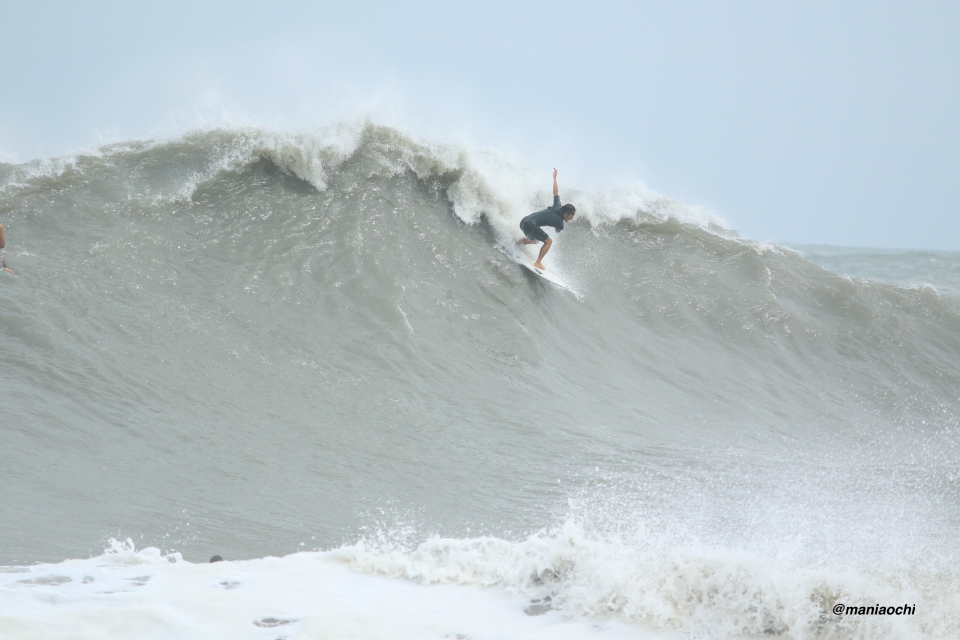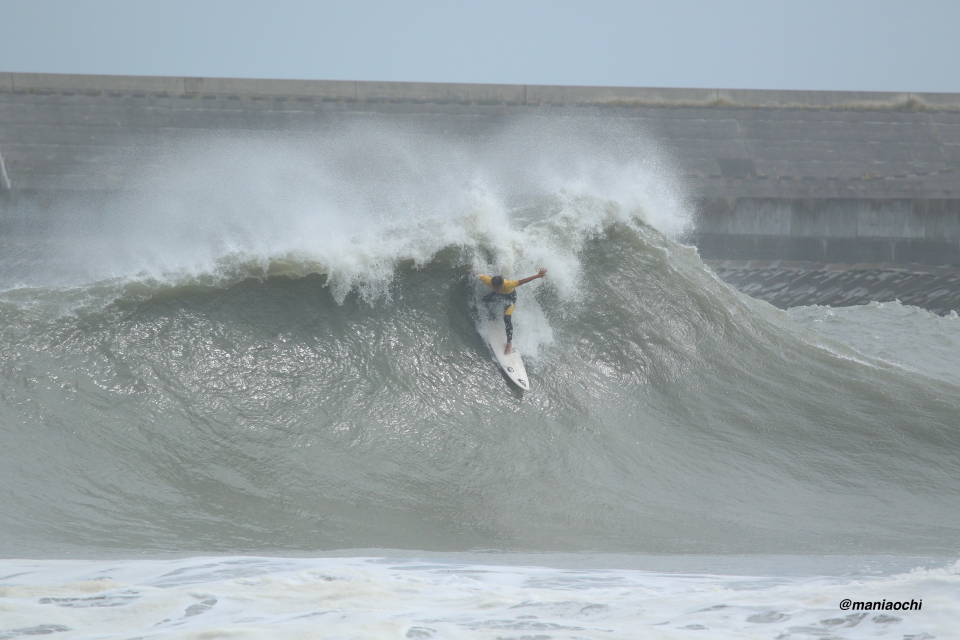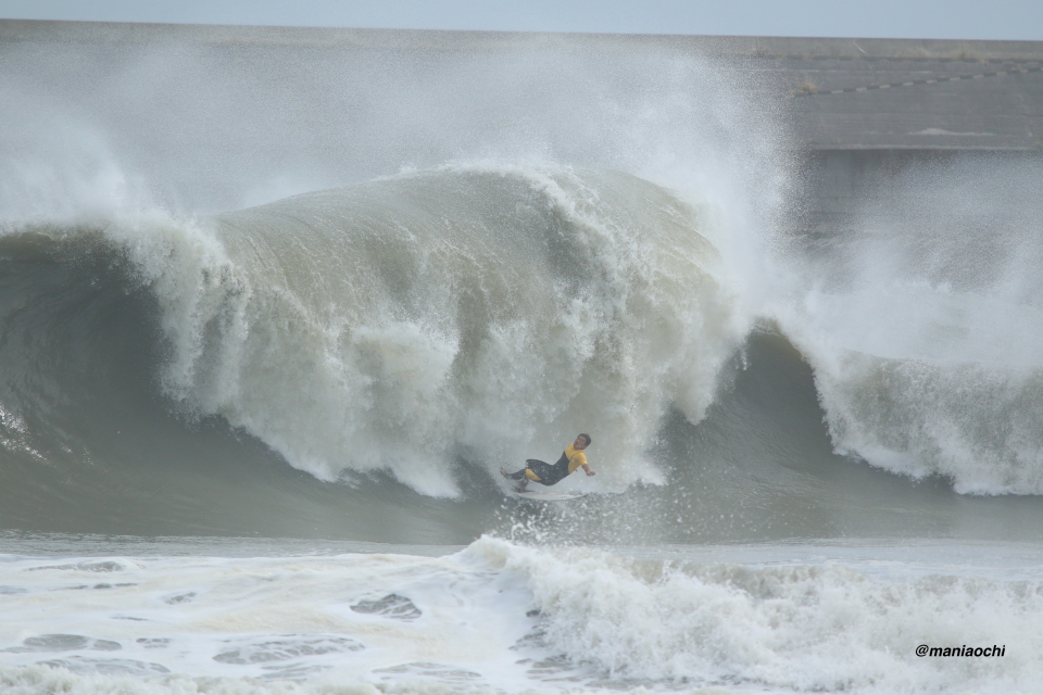 プロ資格を取得する前から近年での活躍が目覚ましく2019年には念願のプロ資格も取得し思い出に残る2019年となったであろう飯田 航太プロ。今回もオーストラリアから一時帰国し積極的に日本の波をチャージしていた。今回のこのセッションでのシークエンスも荒れ狂う19号のスウェルにチャージする飯田プロのハードコアな1本! その後もいいポジションを見つけてはバレルをメイクしていった。