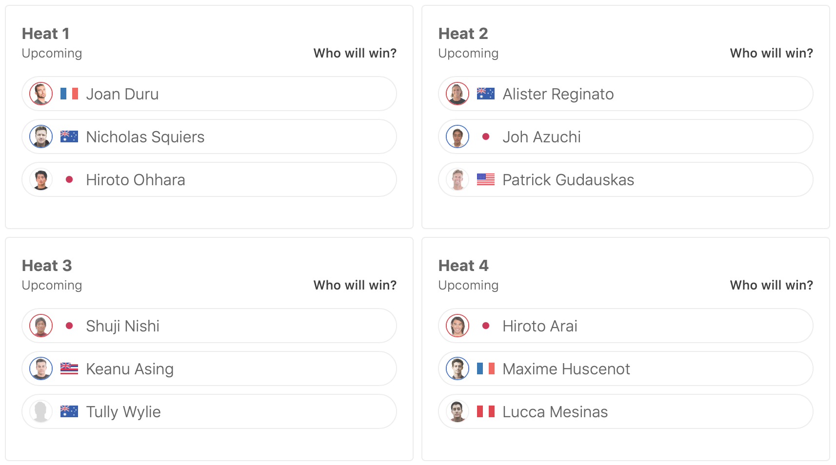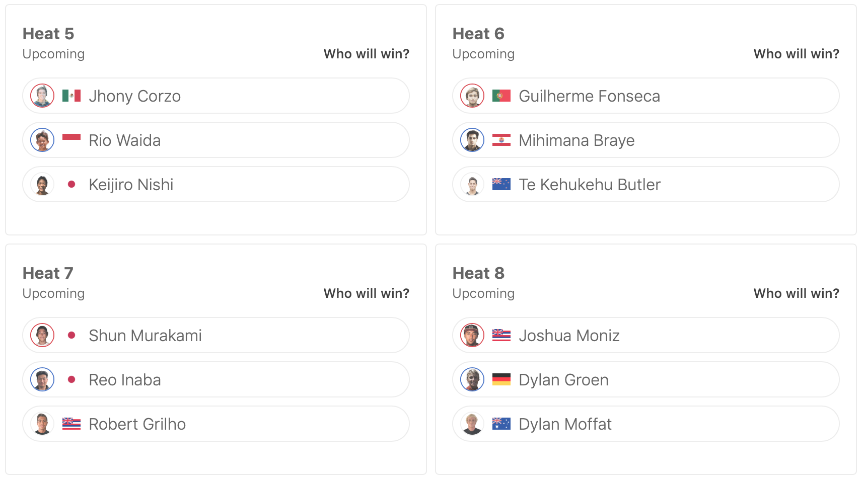 Joan Duru、Patrick Gudauskas、Keanu Asingといった元CTサーファーたちも勝ち残っていることからハイレベルの戦いが予想される中、果たして日本人選手たちはさらなる快進撃を見せてくれるのか!?