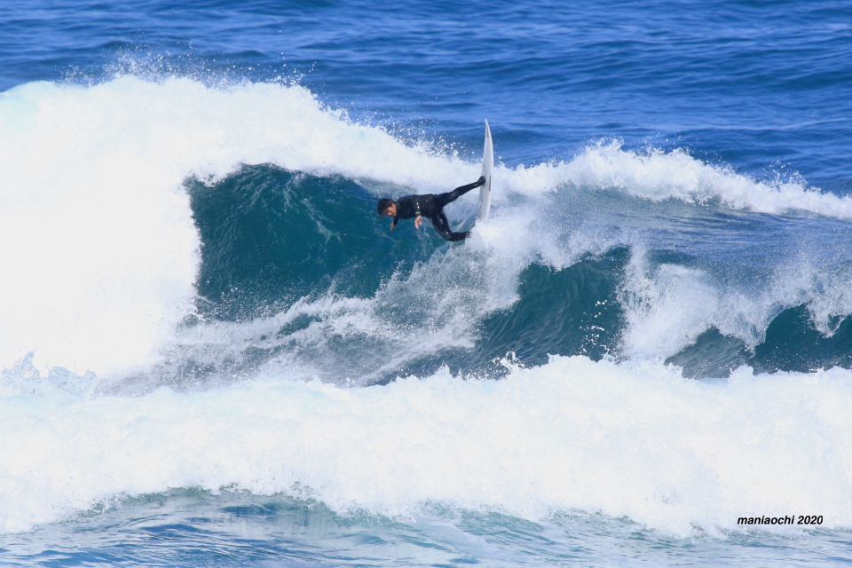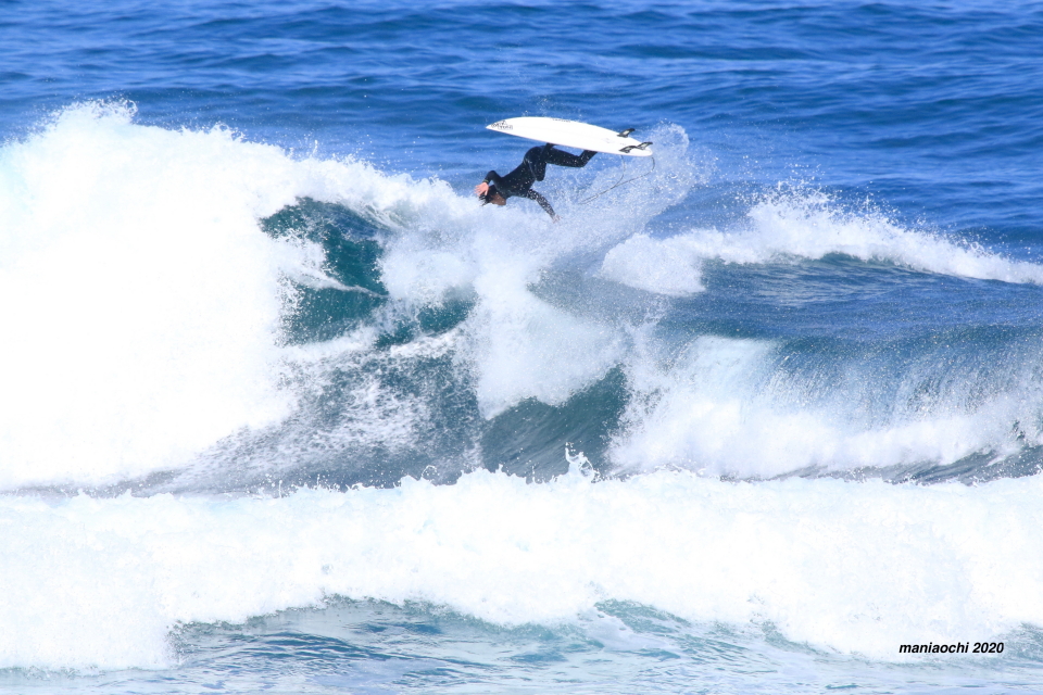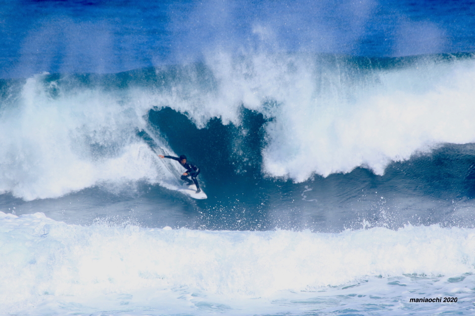 その合間のベストチャンスを狙い毎年このポイントの日本でもここにしかない波に惚れこみ訪れている松岡慧斗プロ。間違いなくこのポイントに一番多く通い続けているプロサーファーといっていいだろう。予報では良くても訪れてみないとわからない日本海の波。波はあっても刻々と変化する風の向きやうねりの向きでハズれることもあるこのポイントだが通ったものだけが出会うことのできるブレイクでもある。