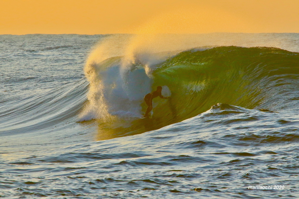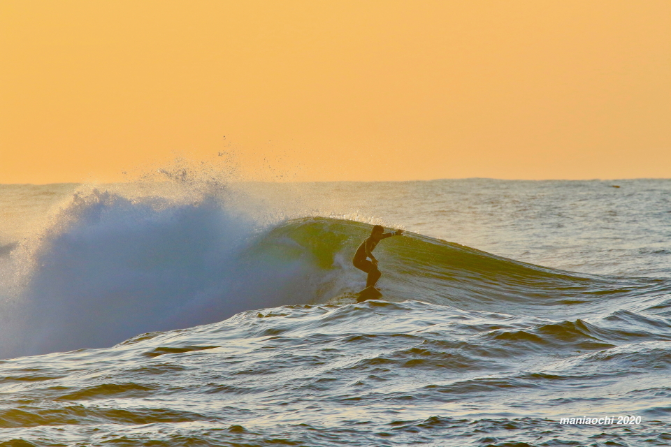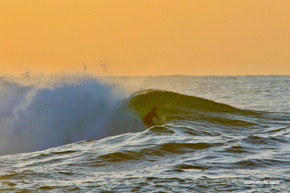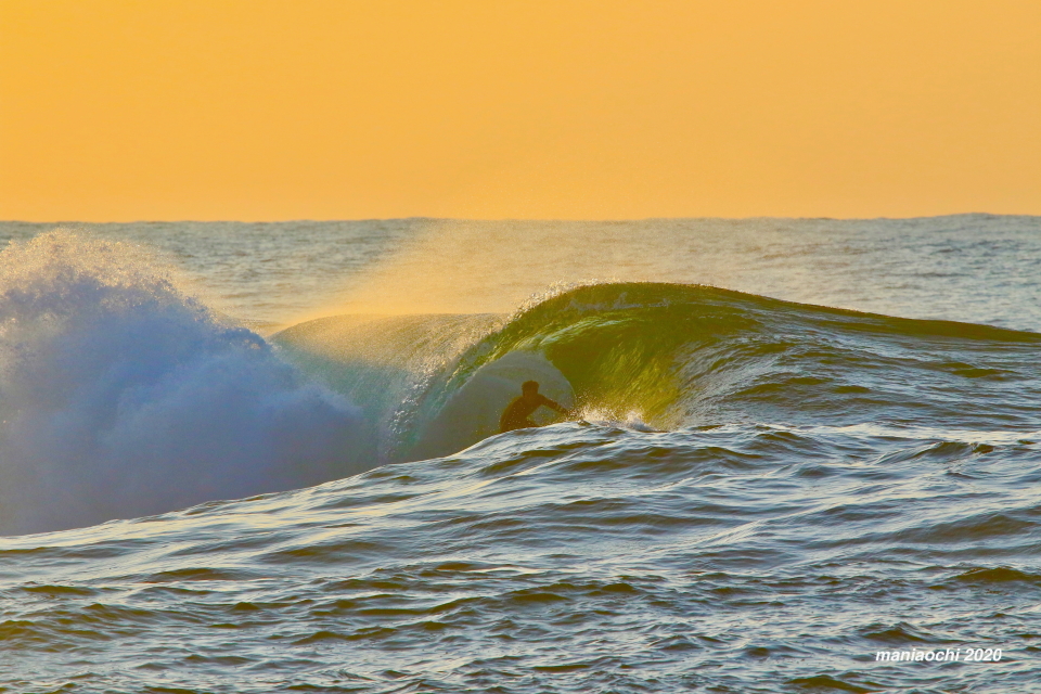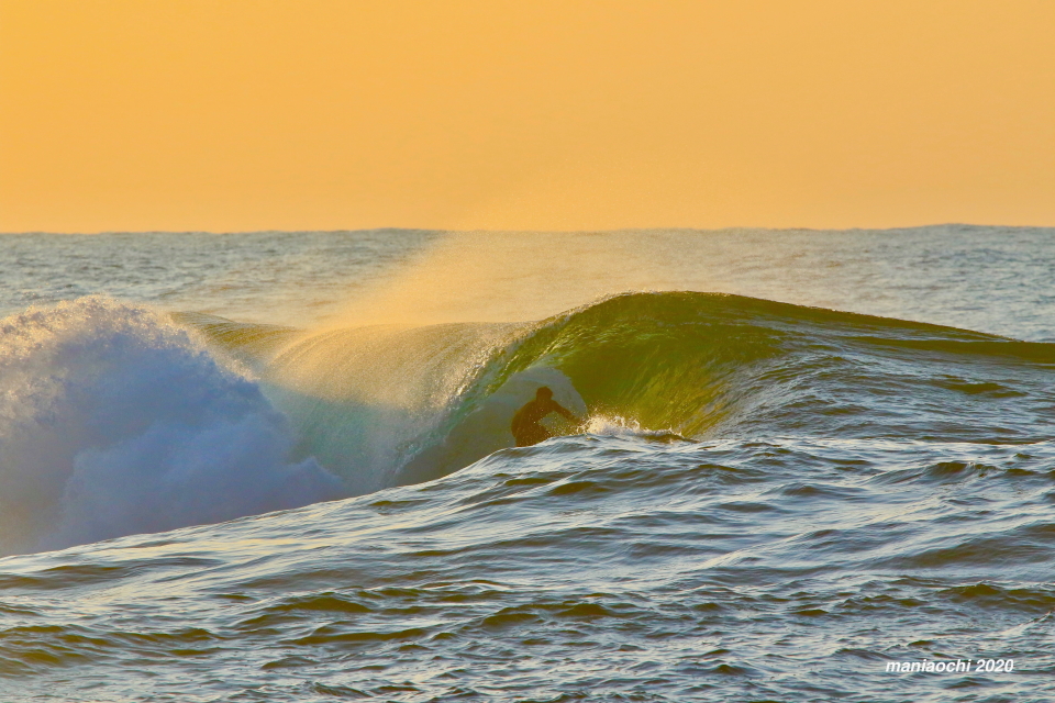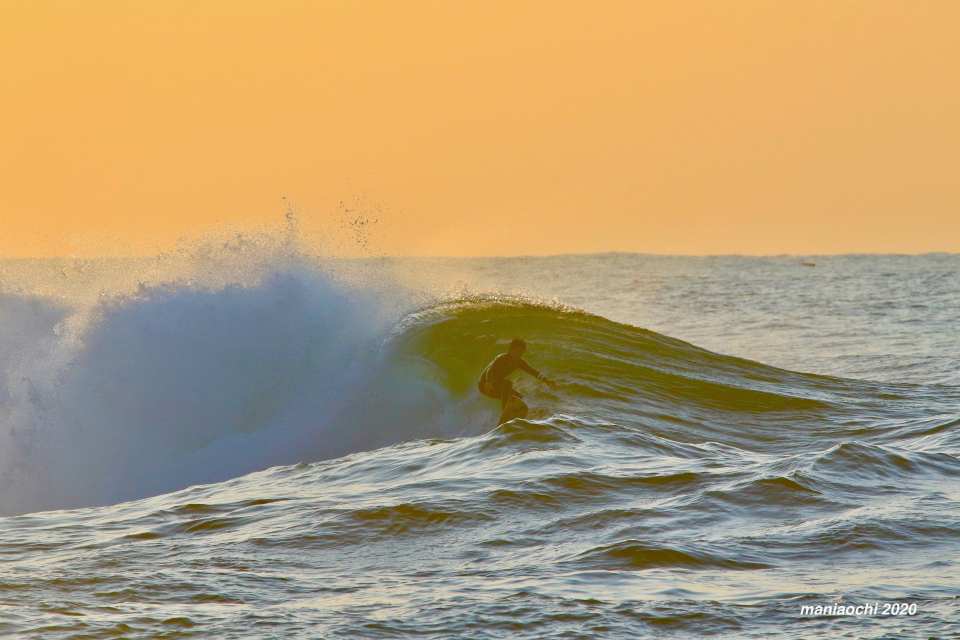 そして最後には辺りが夕焼けに染まる頃、大橋海人プロがこのセッションを締めくくるかのような夕焼けバレルをメイクしていった。