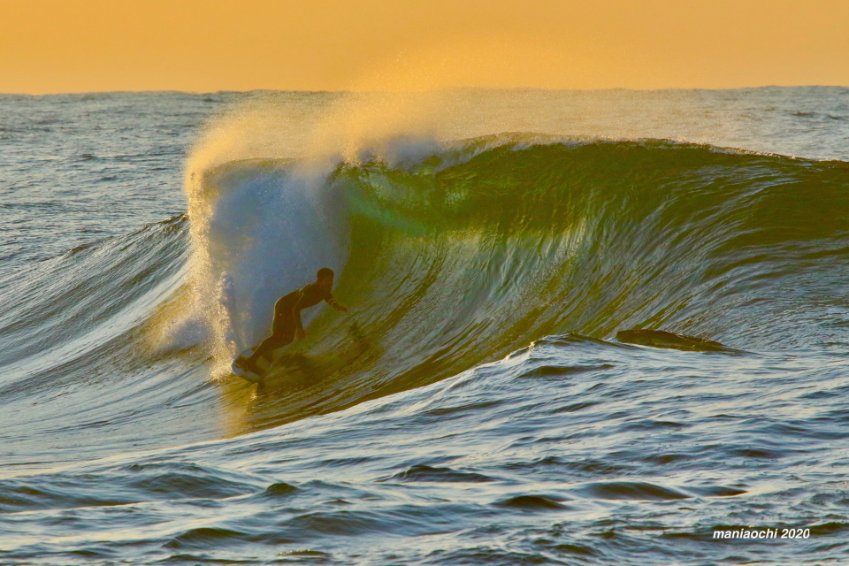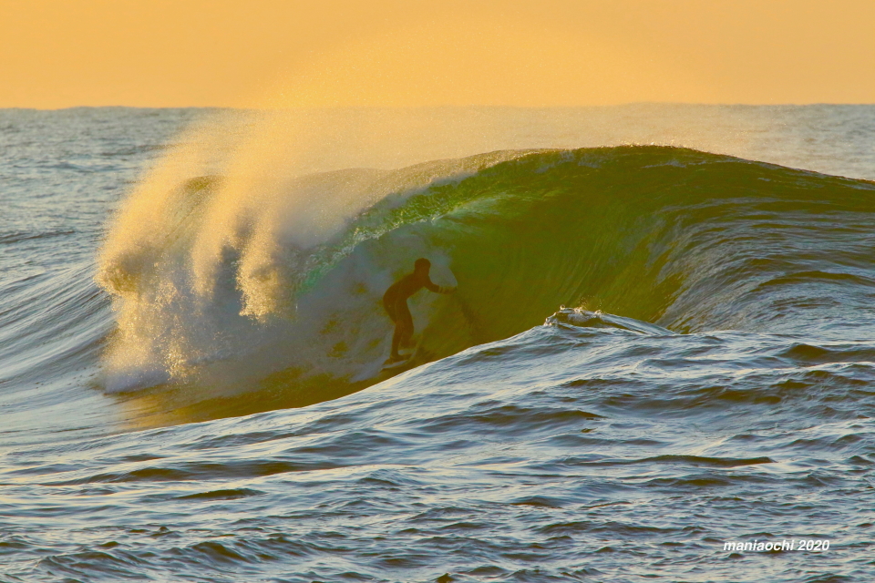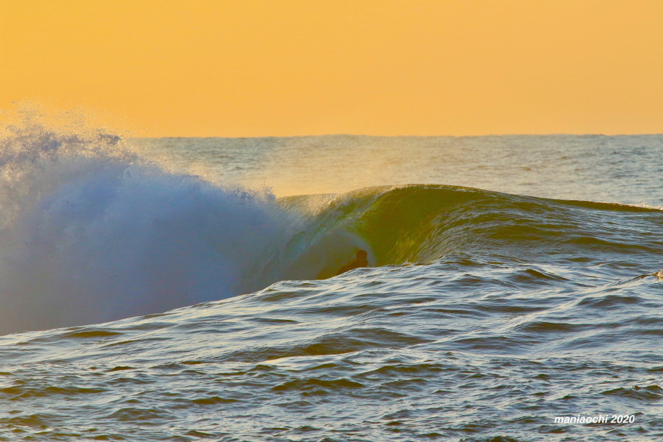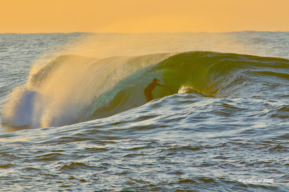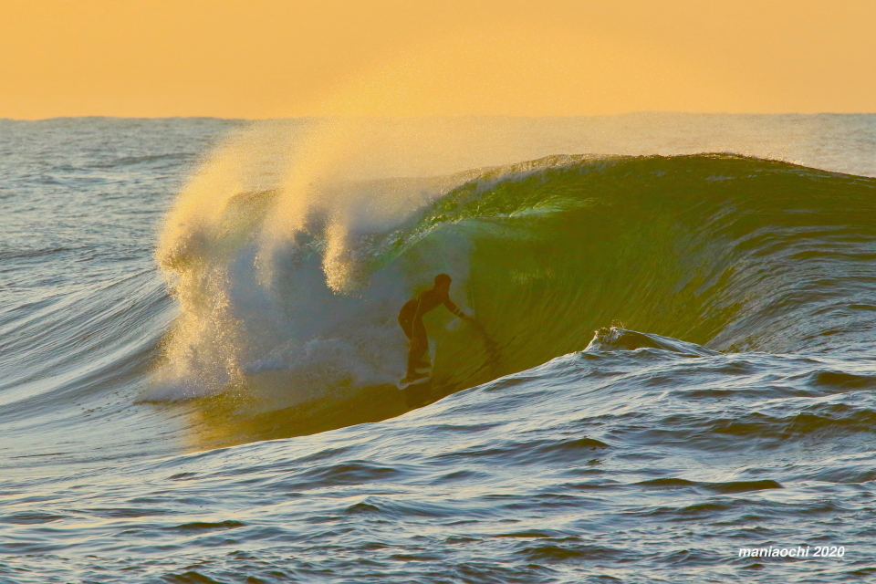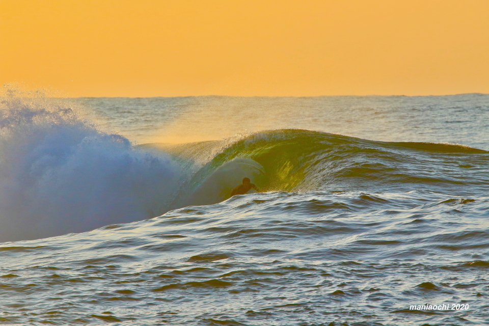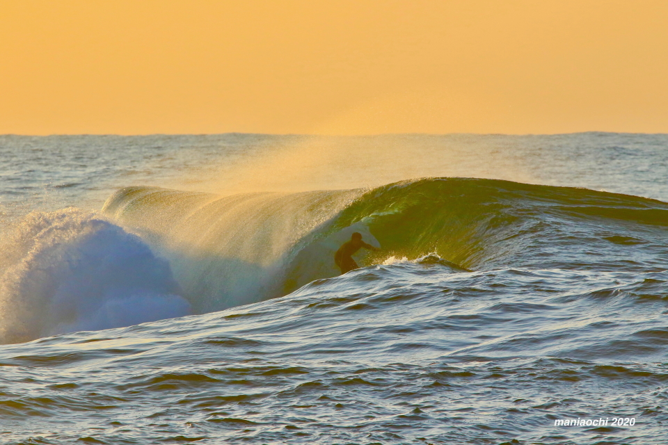 そして最後には辺りが夕焼けに染まる頃、大橋海人プロがこのセッションを締めくくるかのような夕焼けバレルをメイクしていった。