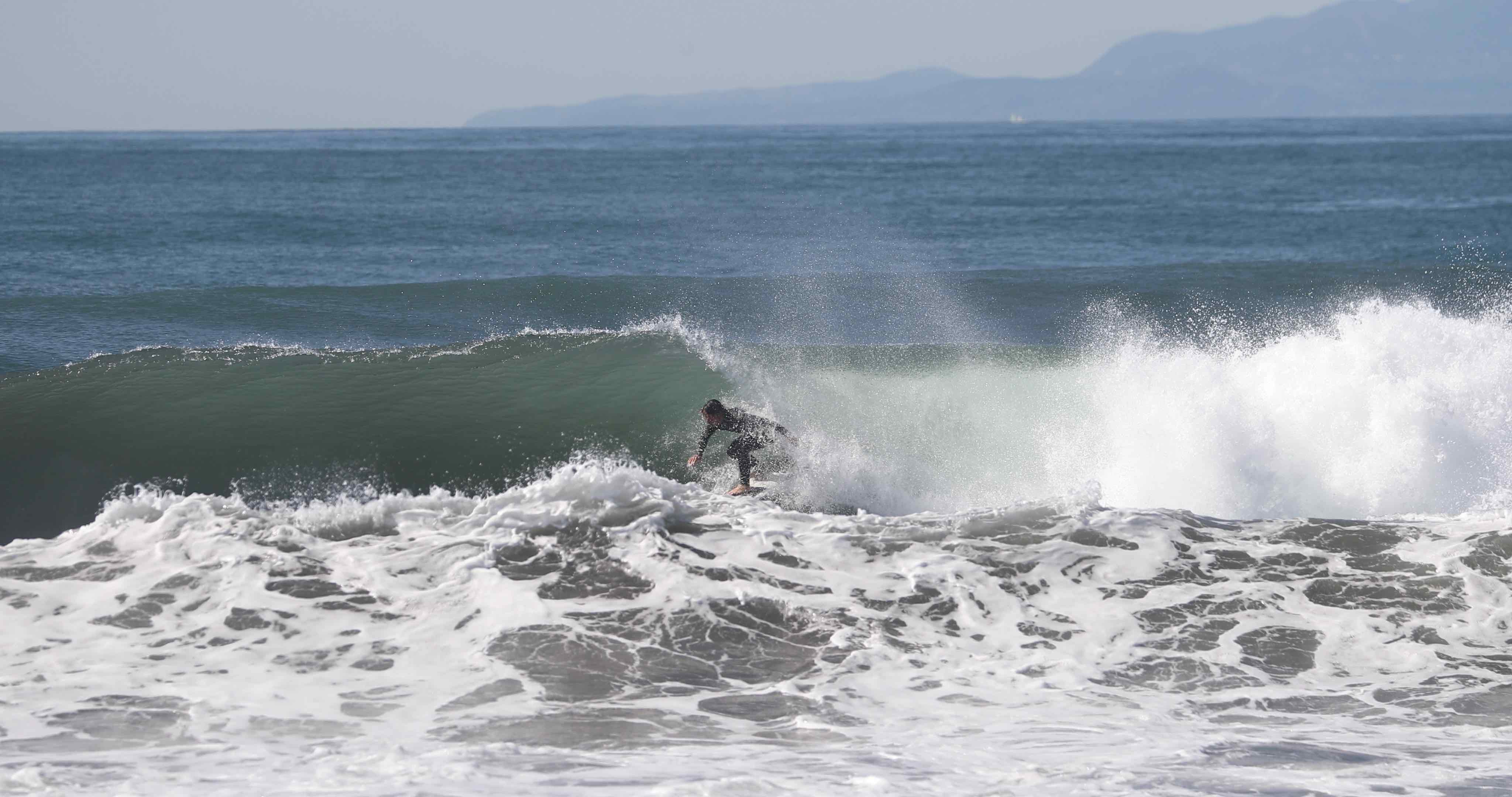 そんなチューブをテーマに、今回はプロサーファーYoutuberとして大活躍中のkumebrosの兄、粂悠平が湘南の某ビーチでのセッションで魅せてくれた、ボトムに降りず立ち上がった瞬間から綺麗にチューブに雪崩れ込むフロントサイド・レイトテイクオフ・チューブのシークエンスをお届け!!