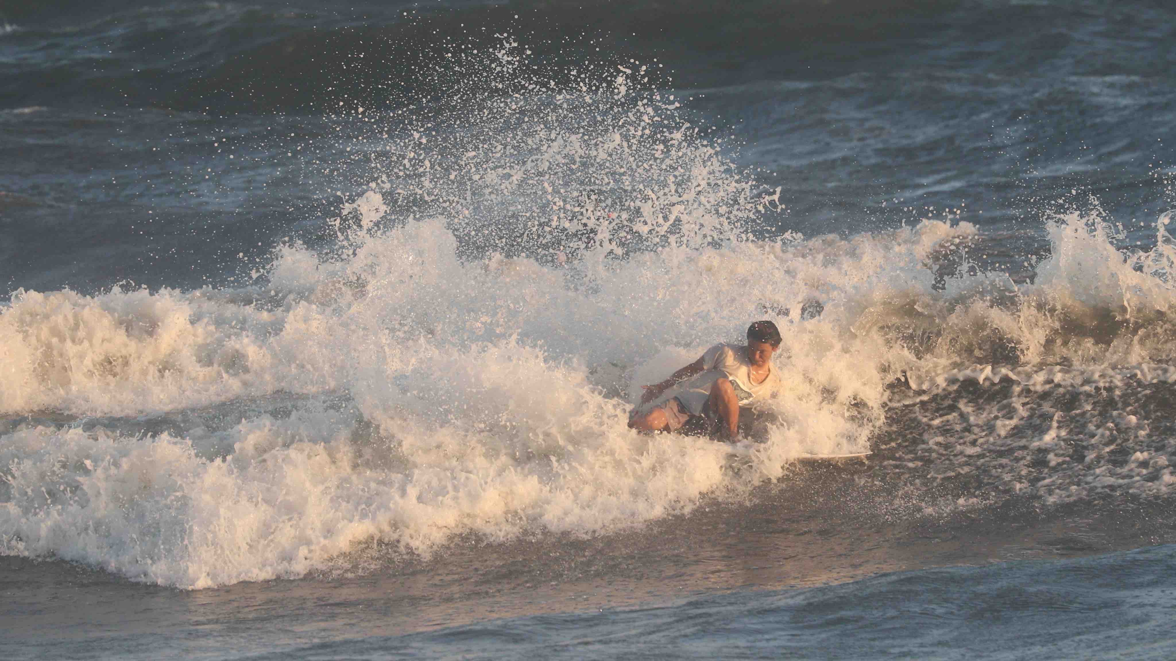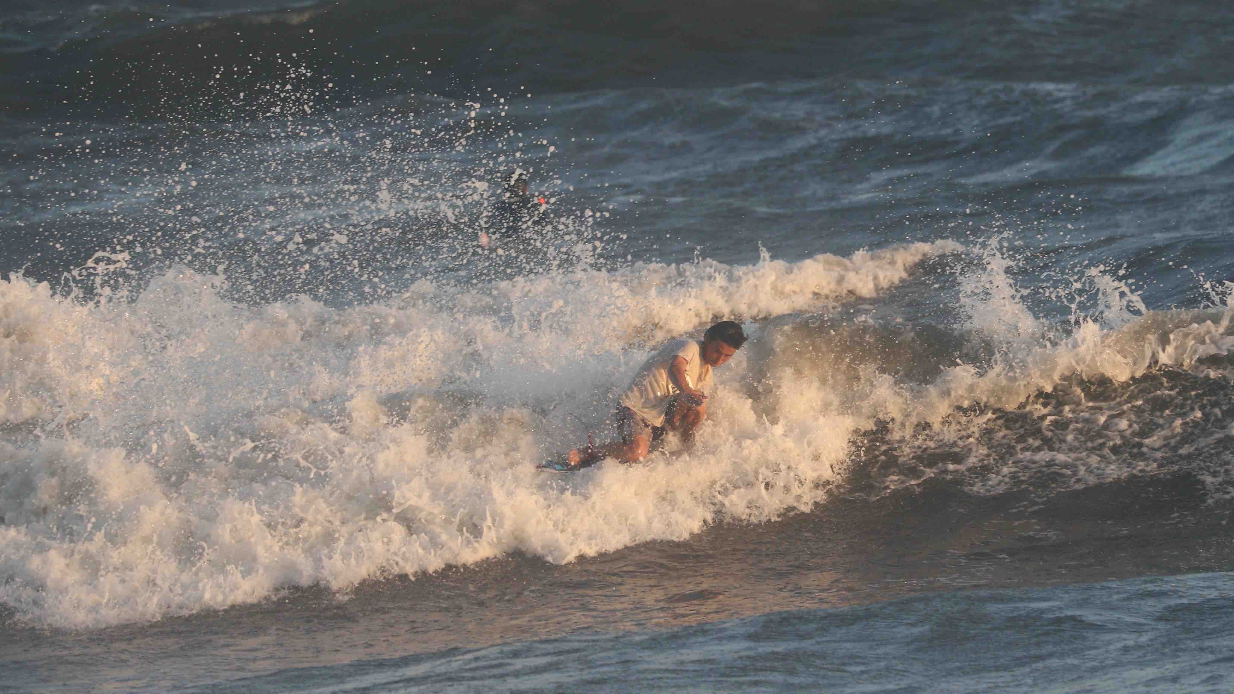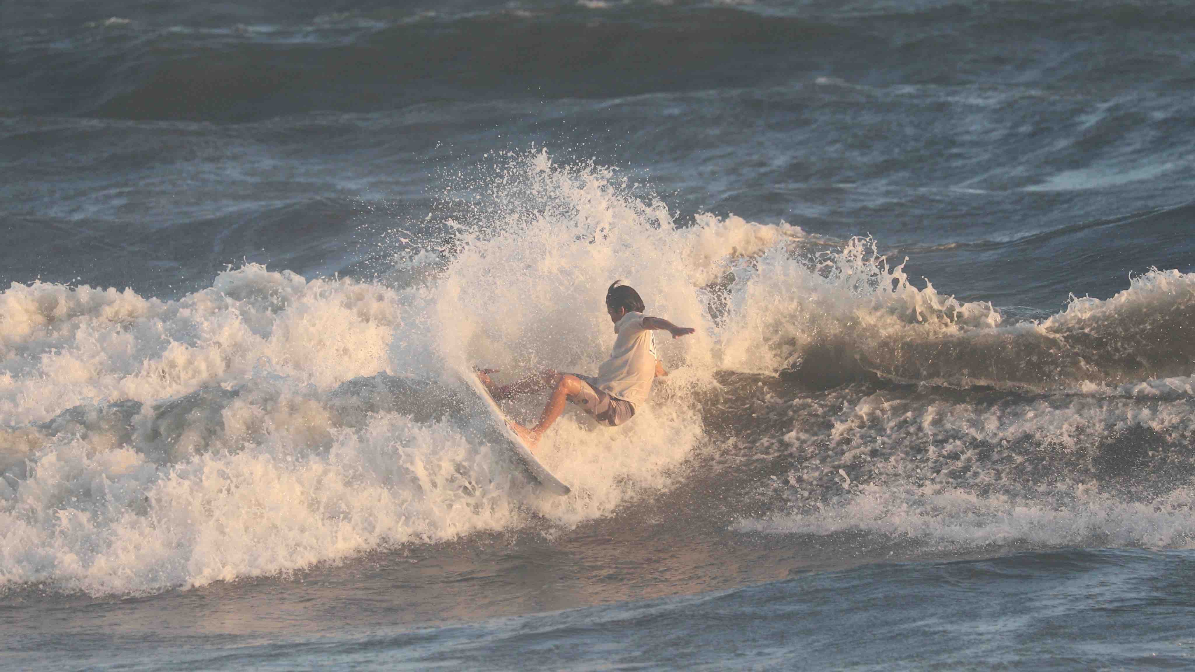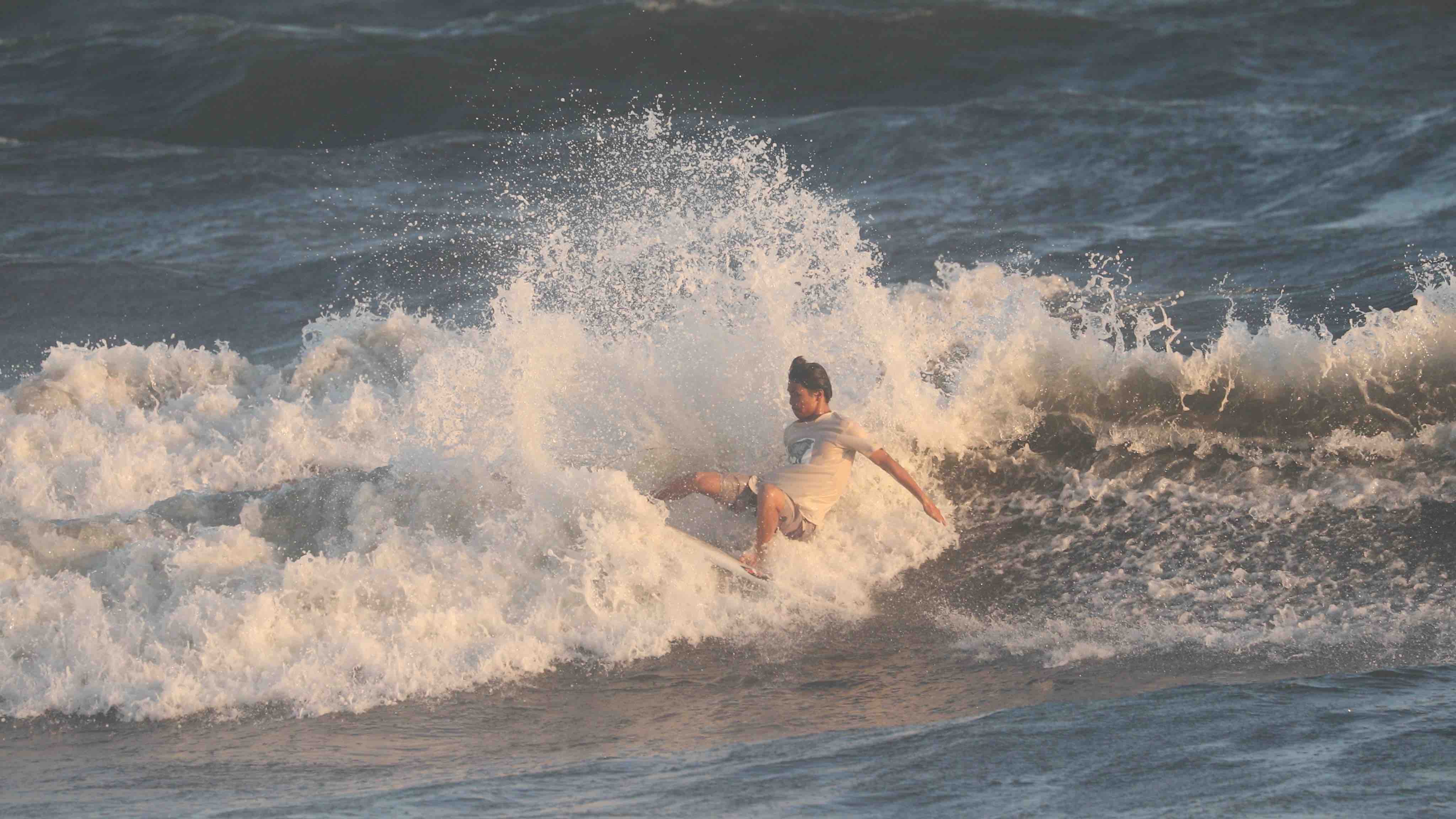 オンショアのコシハラ前後という最悪に近い波となった7/2(木)夕方に、妹たちとショートに乗ったりSUPに乗ったりして繰り広げた井上兄妹ファンセッションの中、井上鷹が魅せてくれたフロントサイド・レイバックテールスライド270°フェイキーアウトのシークエンスをお届け!!