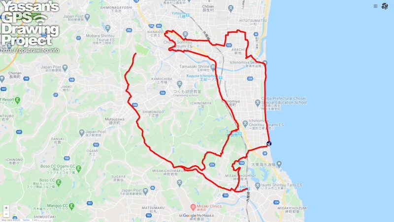 7163.67kmのGPSアート作品で個人で制作した世界最大のGPSアートとしてギネス世界記録に認定されている日本人GPSアーティストyassanが、Googleマップ上の東京オリンピック・サーフィン会場である千葉県長生郡一宮町にサーファーの形をした43kmのGPSアートを描いた!