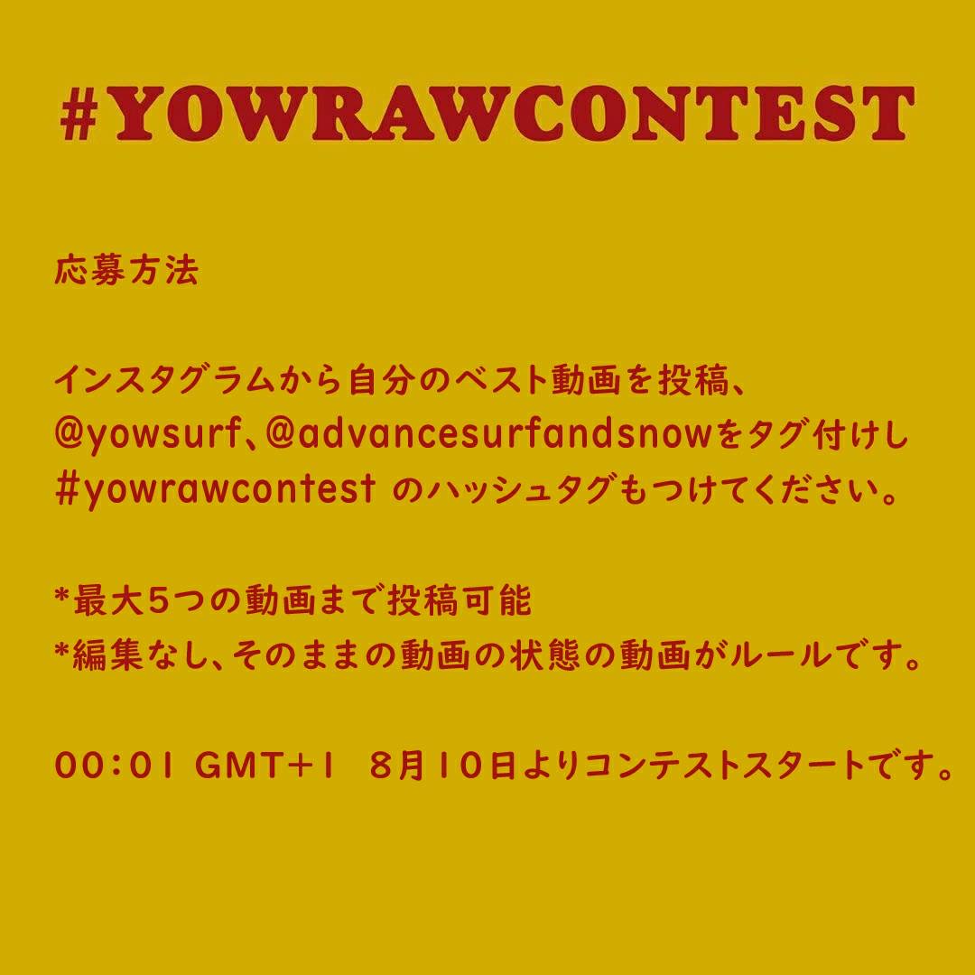 2020年8月10日~2020年8月24日のイベント期間内にインスタグラムから自分のベスト動画を投稿、@yowsurf、@advancesurfandsnowをタグ付けし#yowrawcontest のハッシュタグもつけてください。