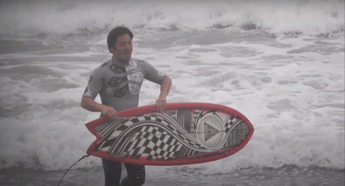 サーフィンとスケートボードを高次元で融合させたオリジナルスタイルを持つオンリー1なプロサーファーとして人気の高いそんな彼が、超お気に入りのツインフィン、DEADKOOKS surfboardsの