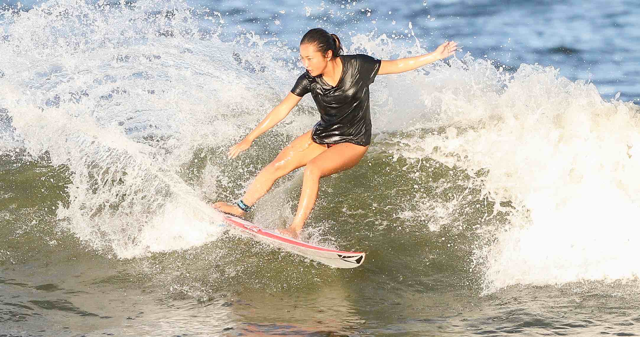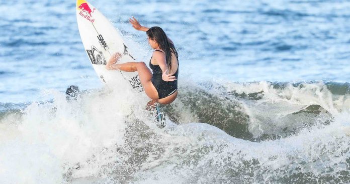 形のいい波に恵まれた某サンドバーには川合美乃里、脇田紗良、古川海夕、森下風太、河野真ノ彩といった若いトップサーファーたちが集結!