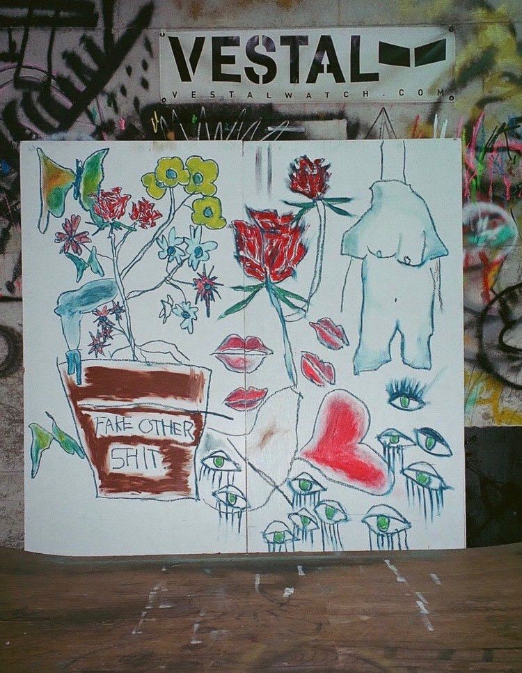 コアなサーフィンカルチャーが脈々と引き継がれ、アンダーグラウンドなフリーサーフシーンが更に盛り上がりを見せている静岡 榛南牧之原エリアで、幼少期からサーフ・スケートに没頭し、自然とクリエイティブな感性を持つサーファー、スケーターとして育つ。その持ち前のスタイルが本場カリフォルニアでも認められ、13歳で現地スポンサーのサポートの元 単身渡米するが、フォトシューティング中にスケートでスラブし両掌を骨折してしまう。その怪我によってサーフィン・スケートも出来ない、言葉もよく分からない、、そんな中、サポートしてくれていたホストファーザーが与えてくれたキャンバスとアクリル絵の具、、描くことが自分のもう一つの自己表現で有り言語でもあることに改めて気づかされる事となる。幼少の頃、母親の黒のワーゲンのボディに石ころで落書きしたのを見つかったが全く怒られず、むしろキャンバスとして認められ以降もボディへの落書きは続き母親のワーゲンは傷だらけになっていった。その頃から、彼の描くことへのスタンスは全く変わらず続いている。