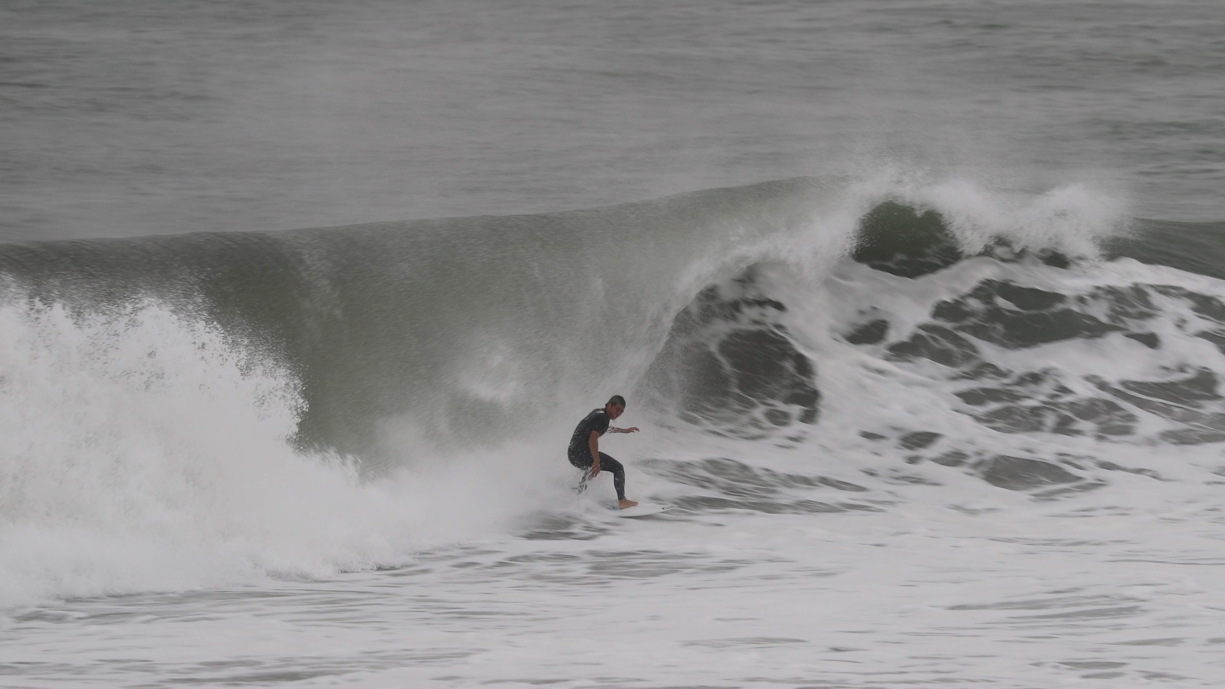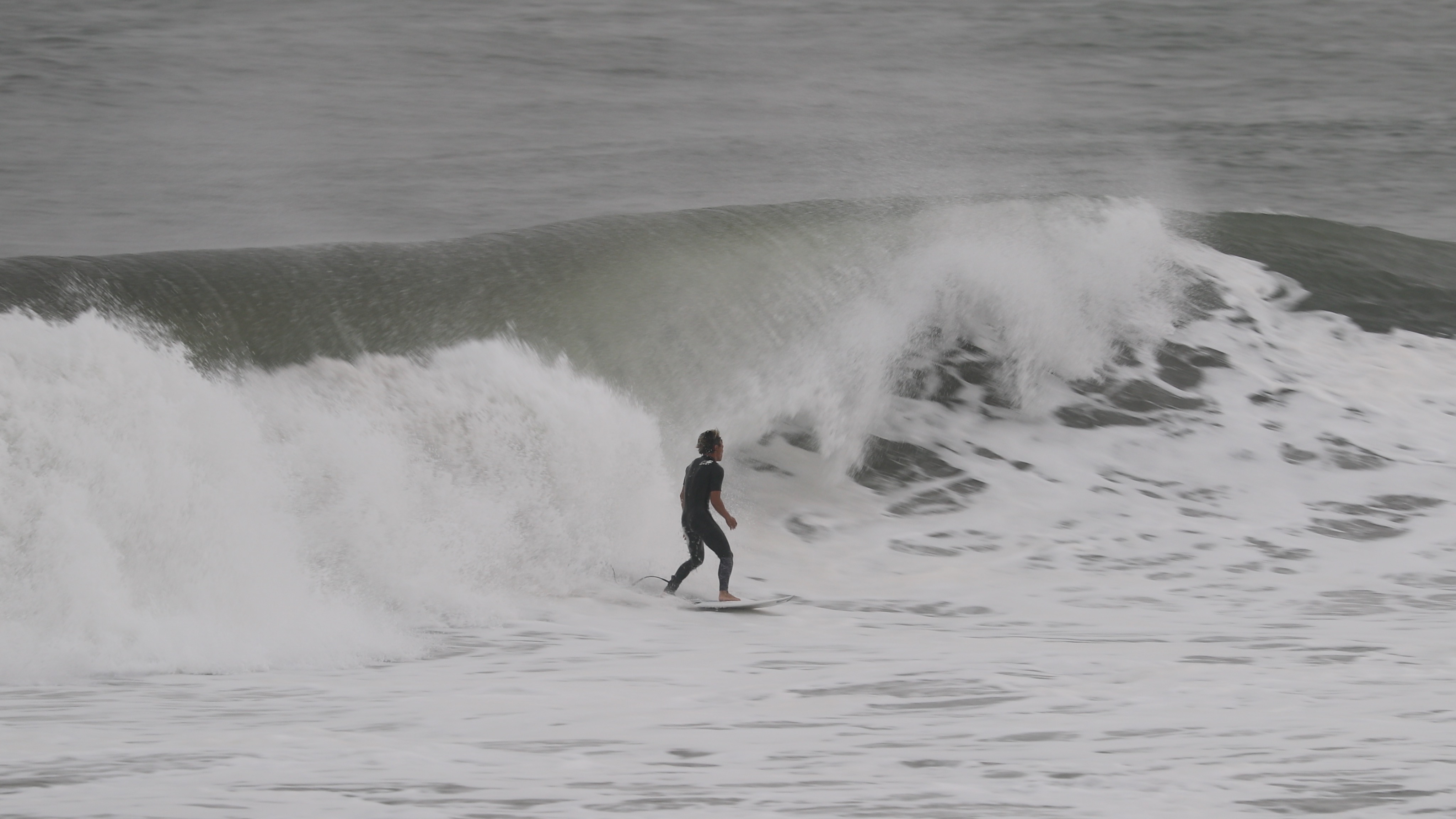数名のプロサーファーたちも集結した中、この日一番の特大セットを掴み、村上舜が魅せたまさにレベち杉るフロントサイド・高速ディープバレルのシークエンスを一足先にここにお届け!!