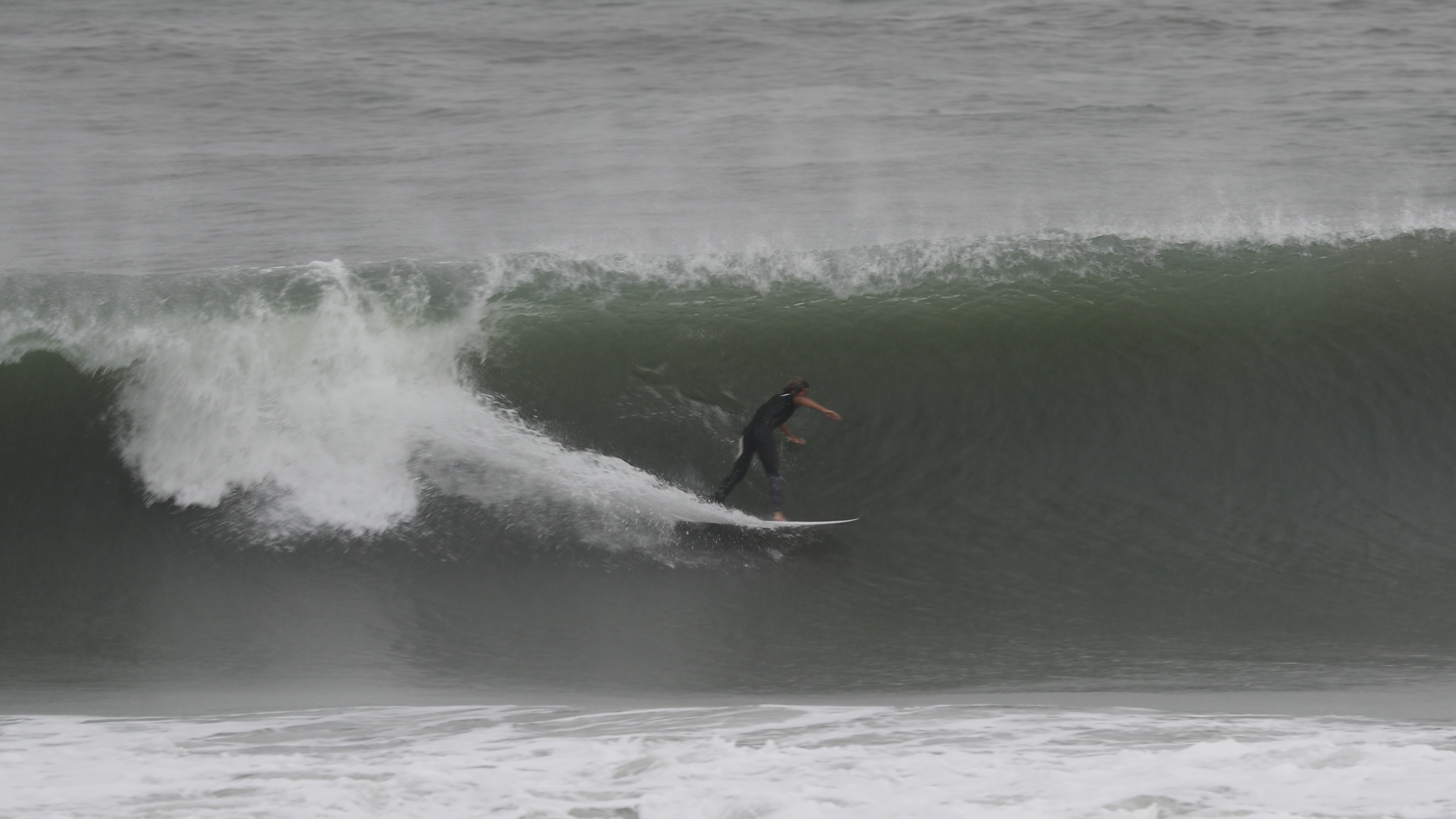 午前中は頭くらいのファンなパーフェクト・ロングレフトとなったが、午後は徐々にサイズアップし、夕方にはダブル近いセットが押し寄せるハードコアなコンディションに!