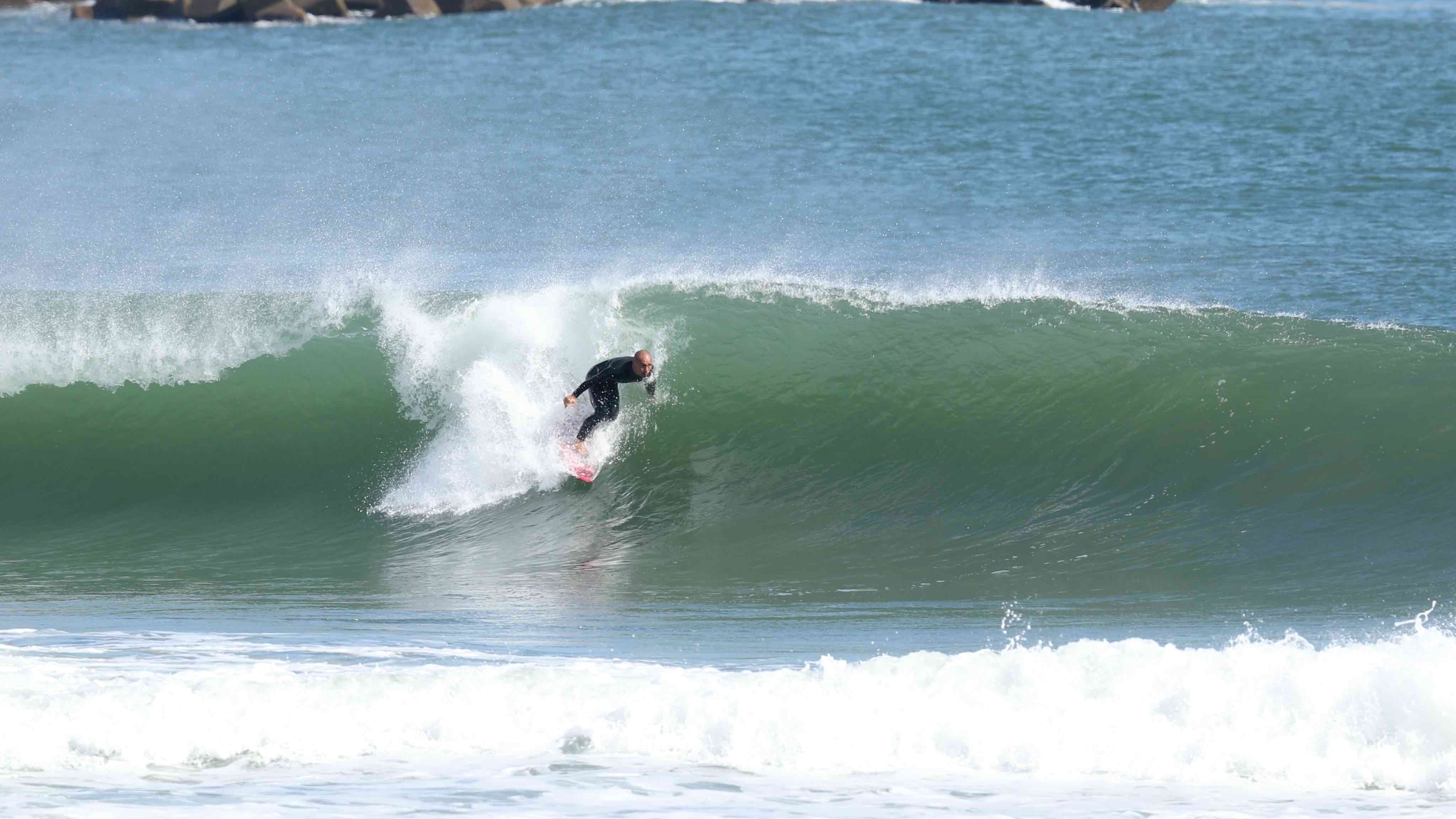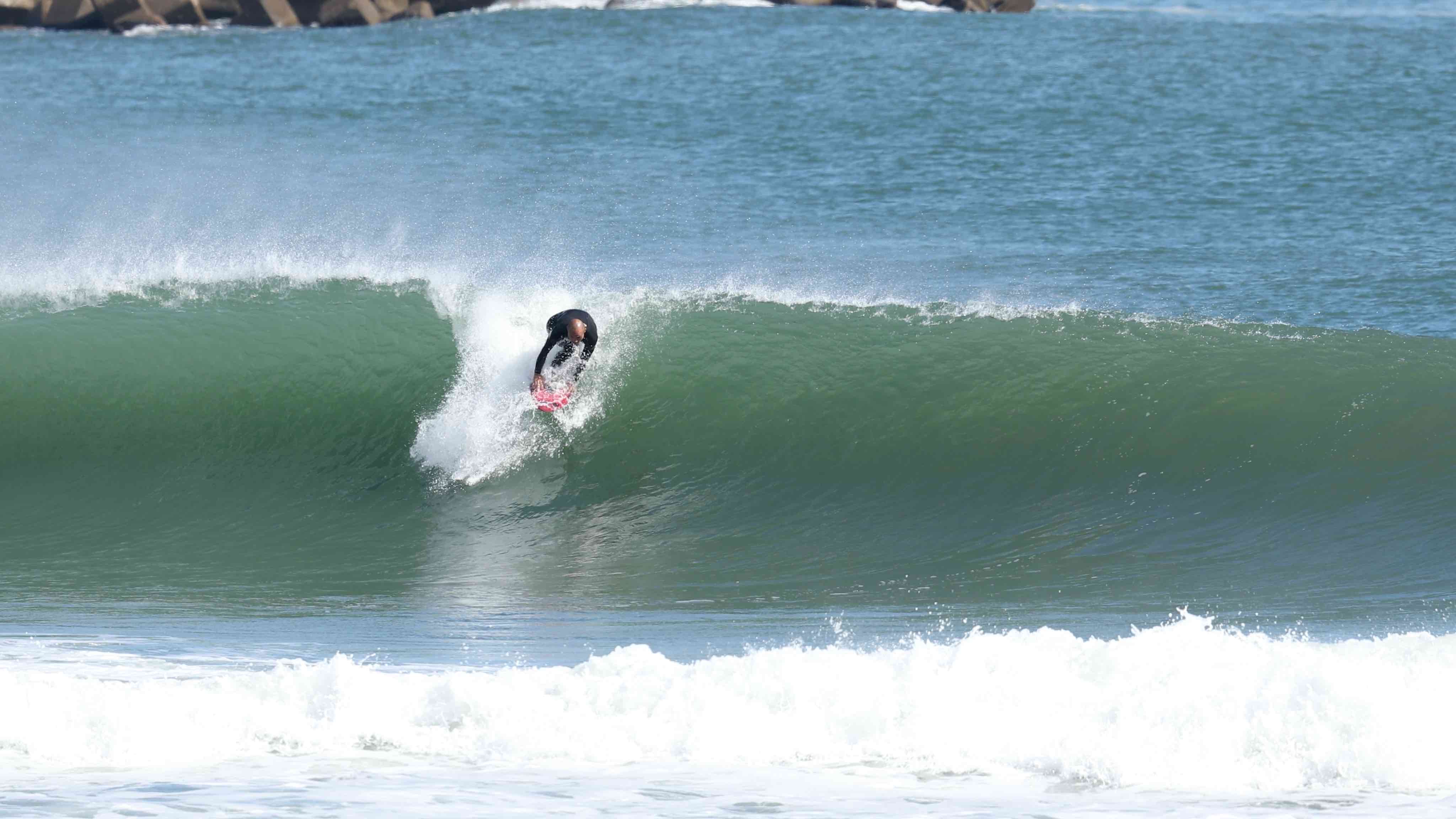低気圧から届けられたスウェルによってサイズアップを果たした日本一のビーチブレイク仙台新港。