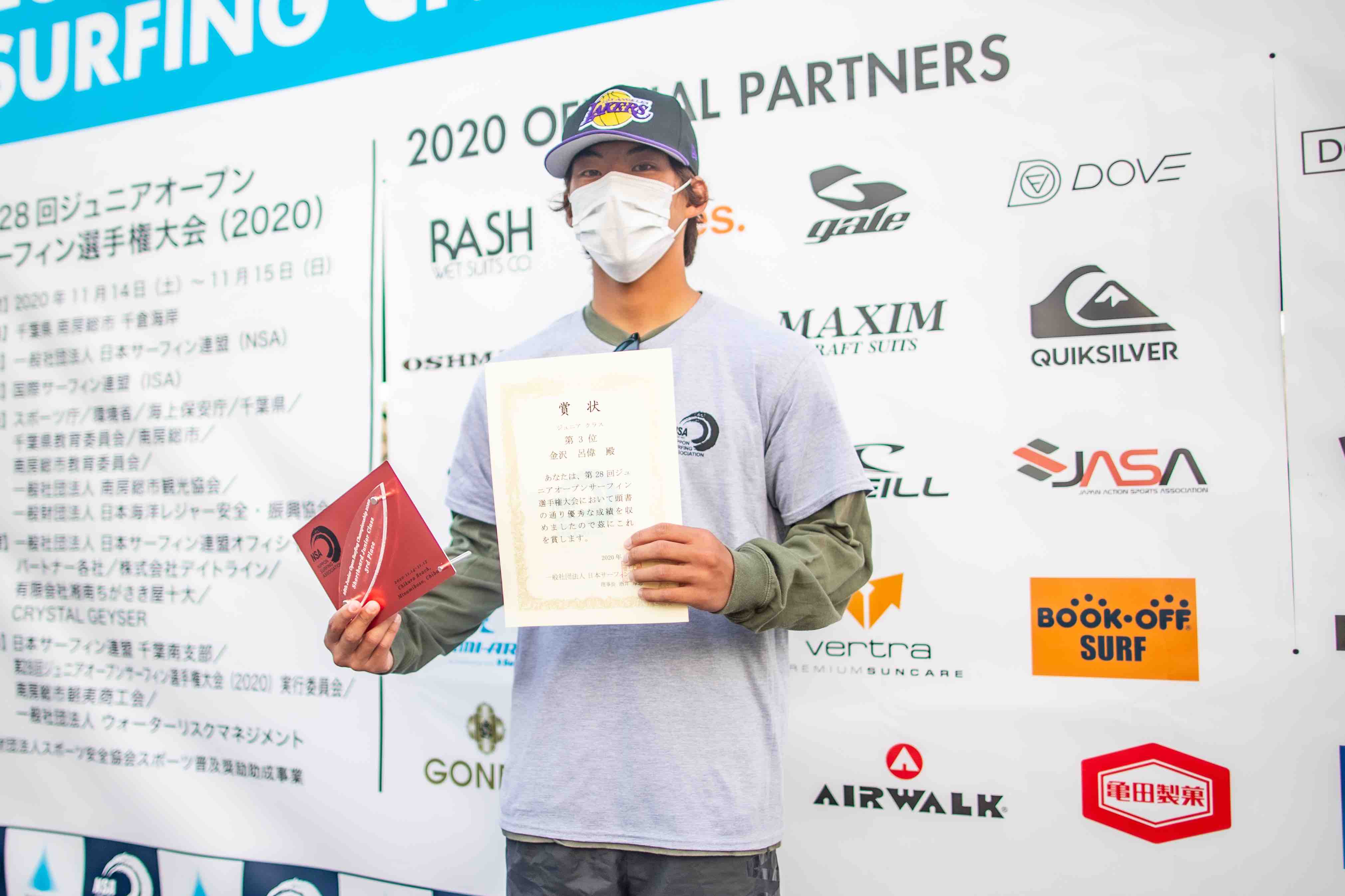 ファイナルではヒート終了間際にレギュラーのセットを掴み、リエントリーからインサイドまで繋いでフィンズフリーでフィニッシュするライディングを披露したが逆転にはあと一歩及ばず、惜しくも3位となった金沢呂偉。ハワイのサンセットで行われたサンセット・プロジュニアでは優勝経験を持つだけにその底力を出し切れないまま今大会を終える形となった。次回の活躍に期待したい!!Roy Kanazawa.