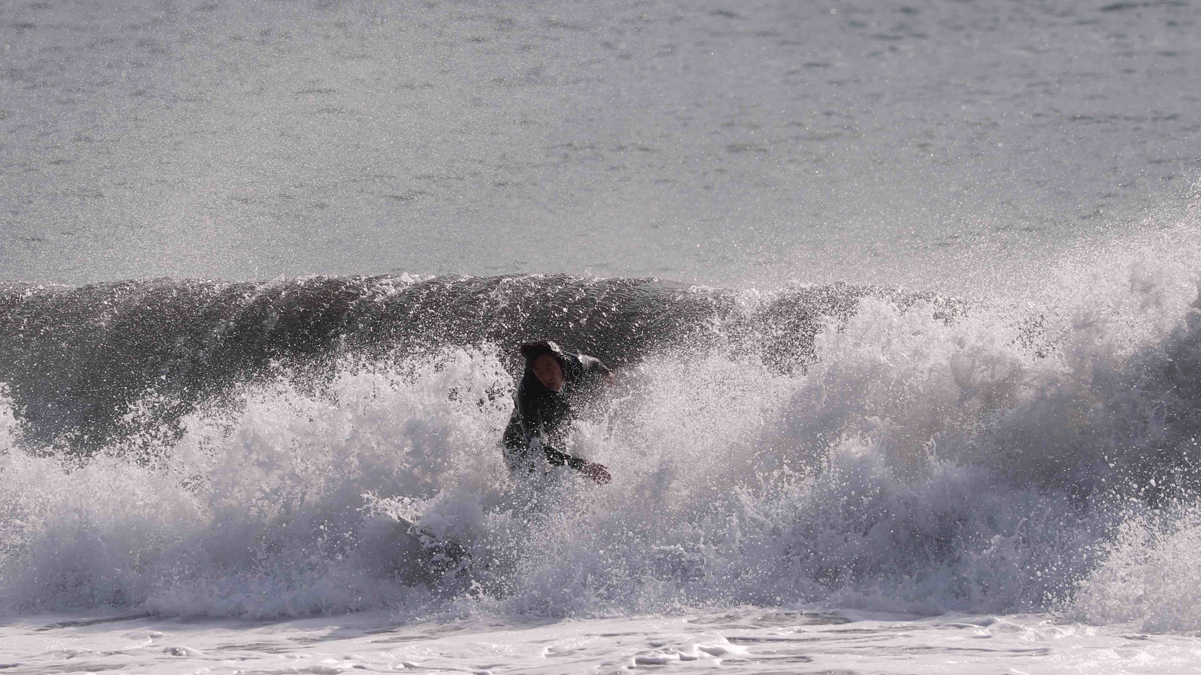 そんなここ数日の中でも綺麗なオフショアとなった12/14(月)の午前中、ダンパー気味ながら掘れた波となった某サンドバーには大橋海人、金尾玲生、松下諒大、石原壮、飯田航太、村上蓮といったプロサーファーたちに加えてローカルトップアマたちが集結!