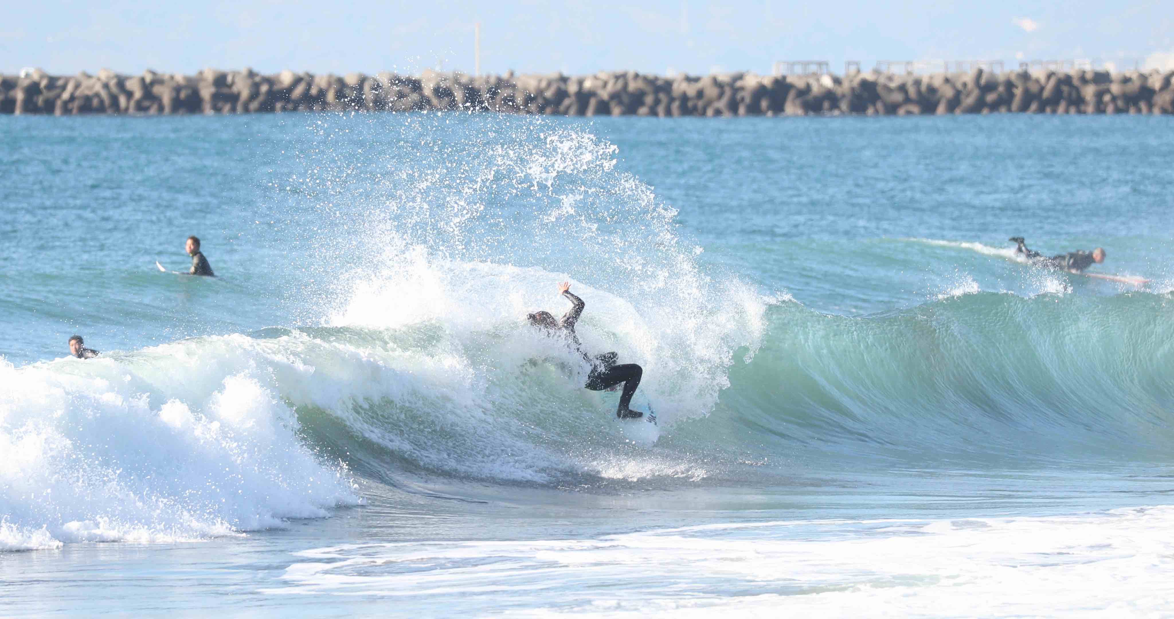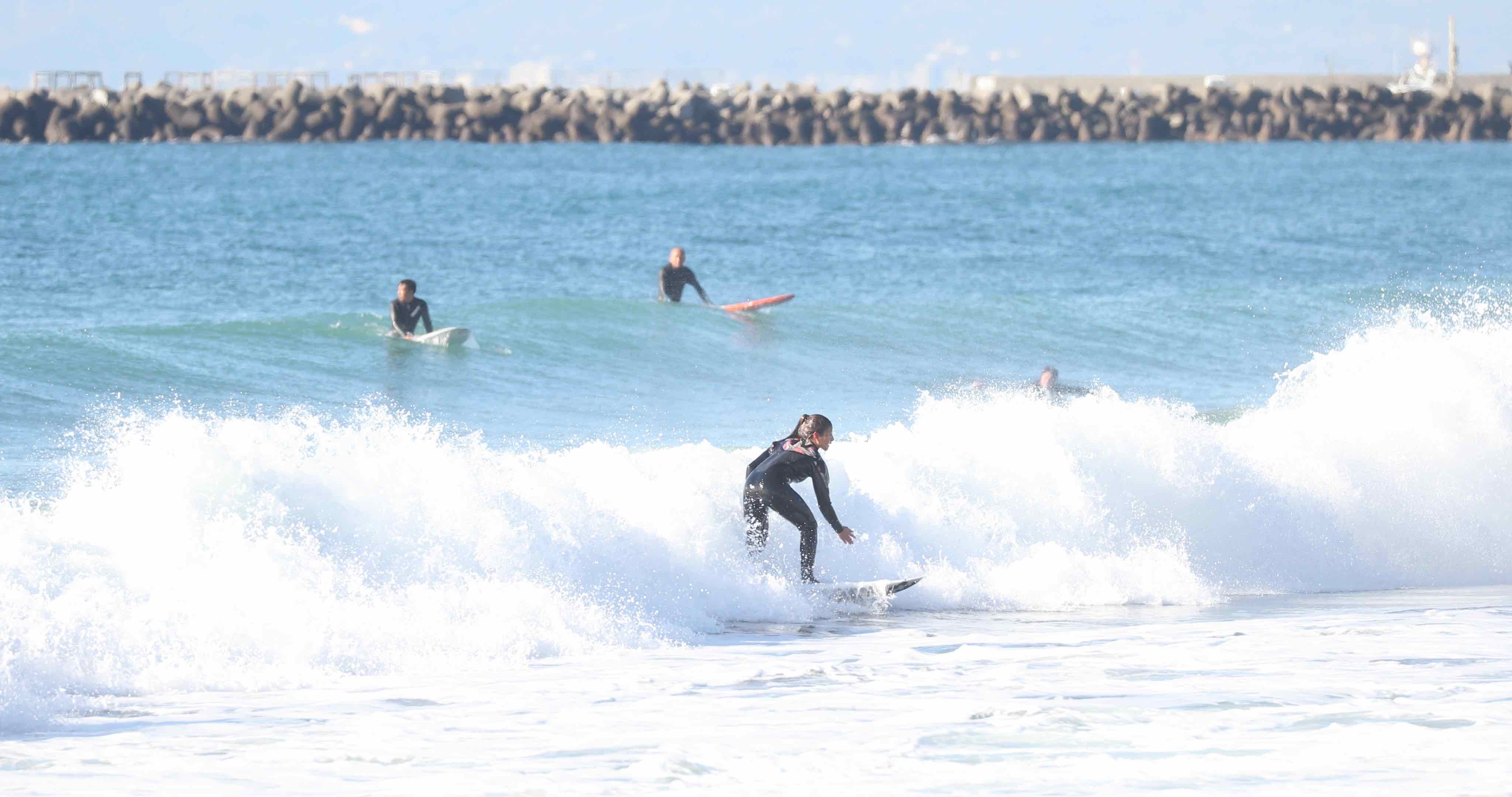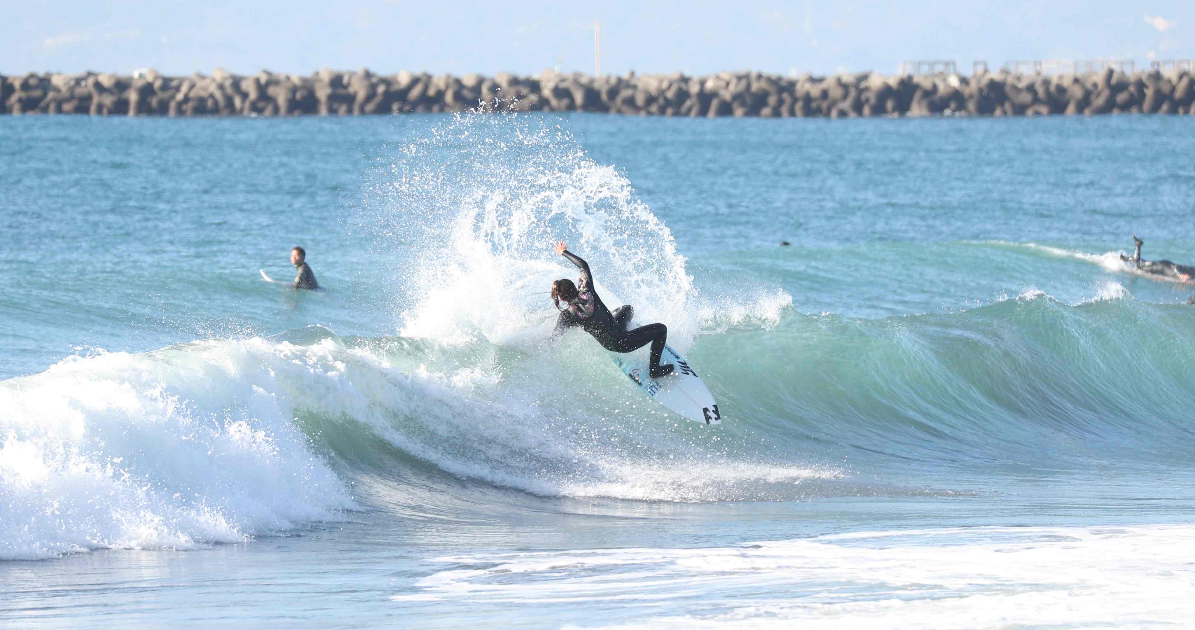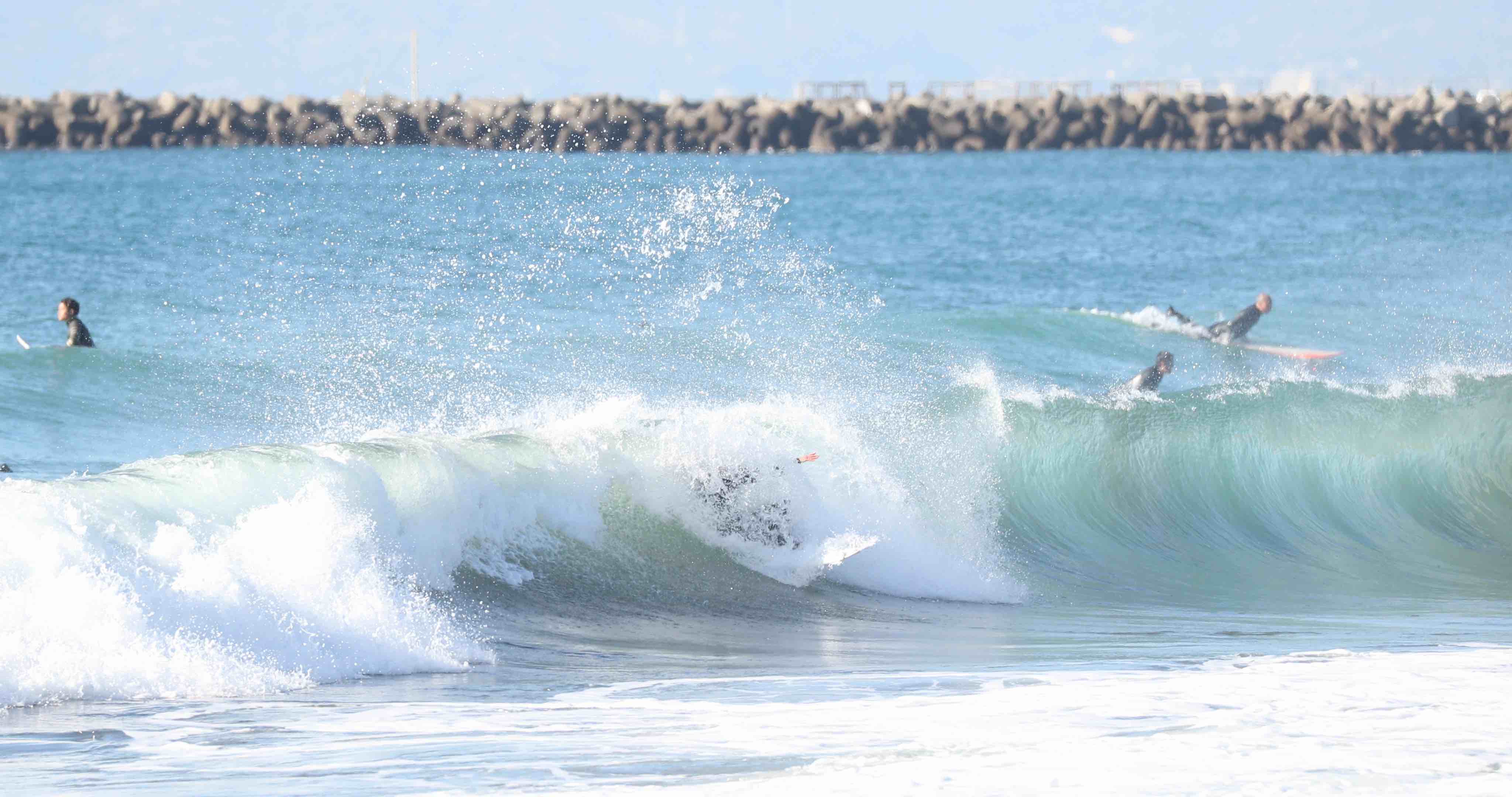 西高東低の気圧配置により、南西のオンショアによって連日サイズのある波をキープし、風が変わるタイミングを狙えばグッドコンディションにも恵まれた湘南エリア。