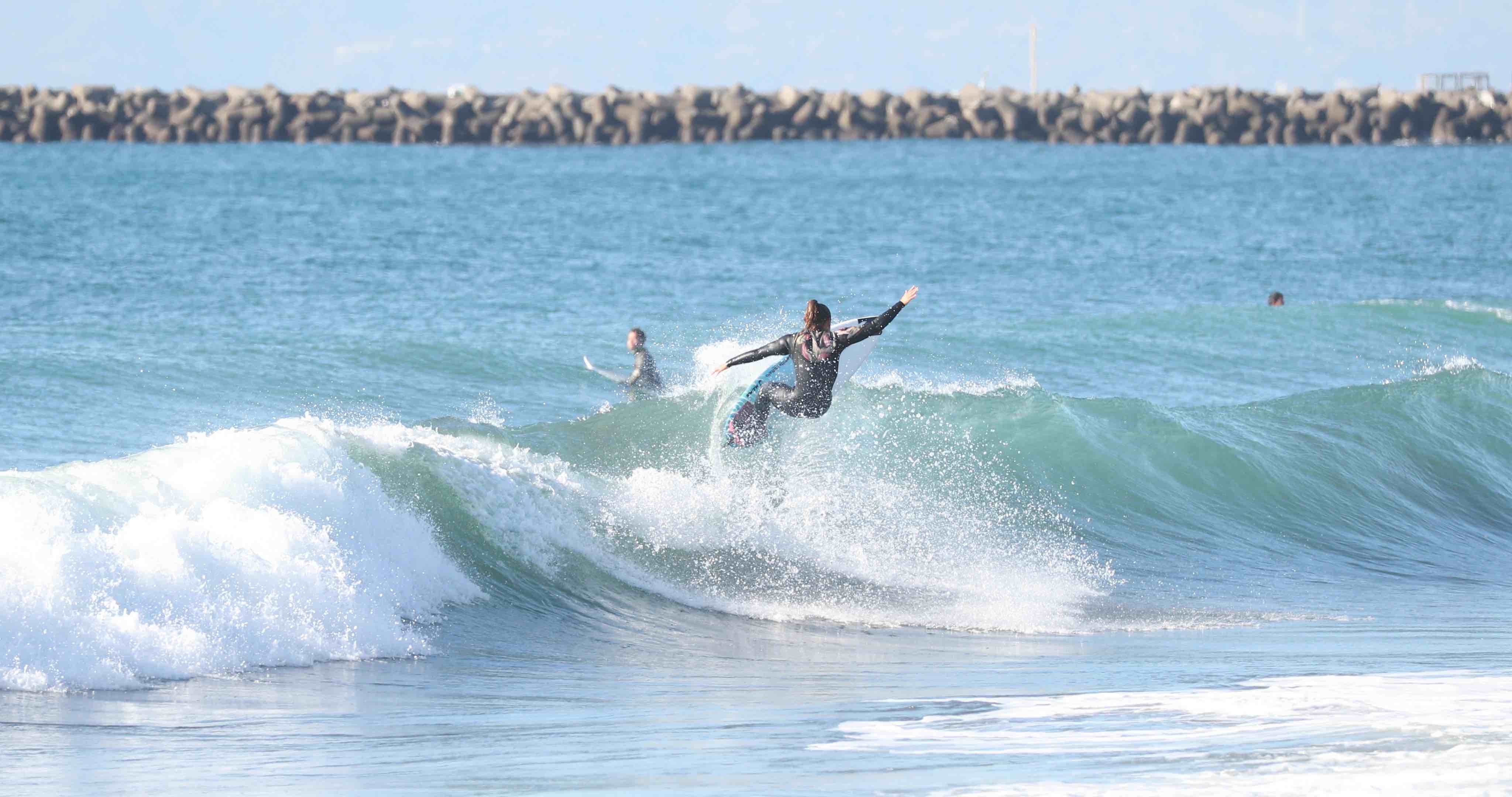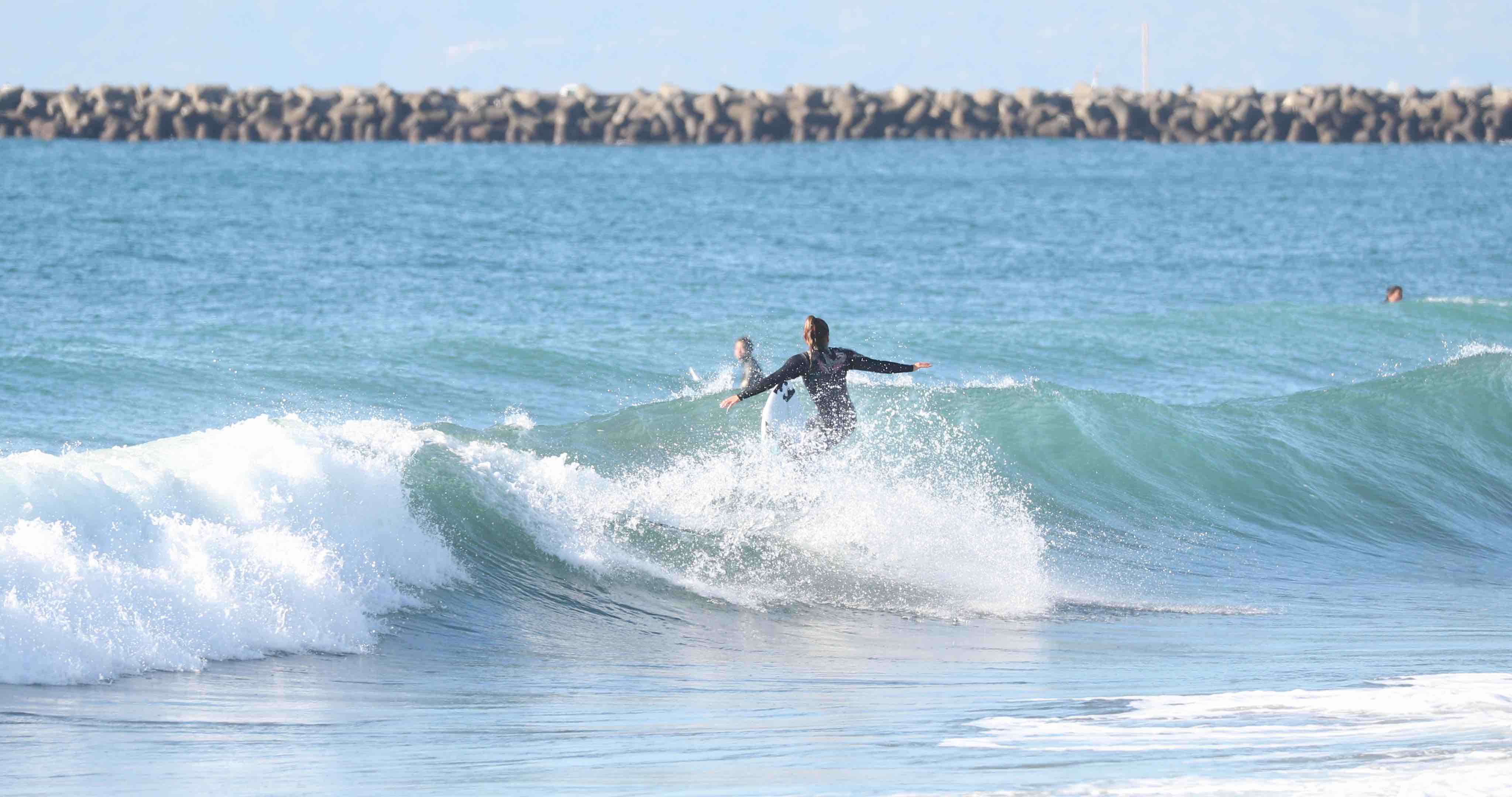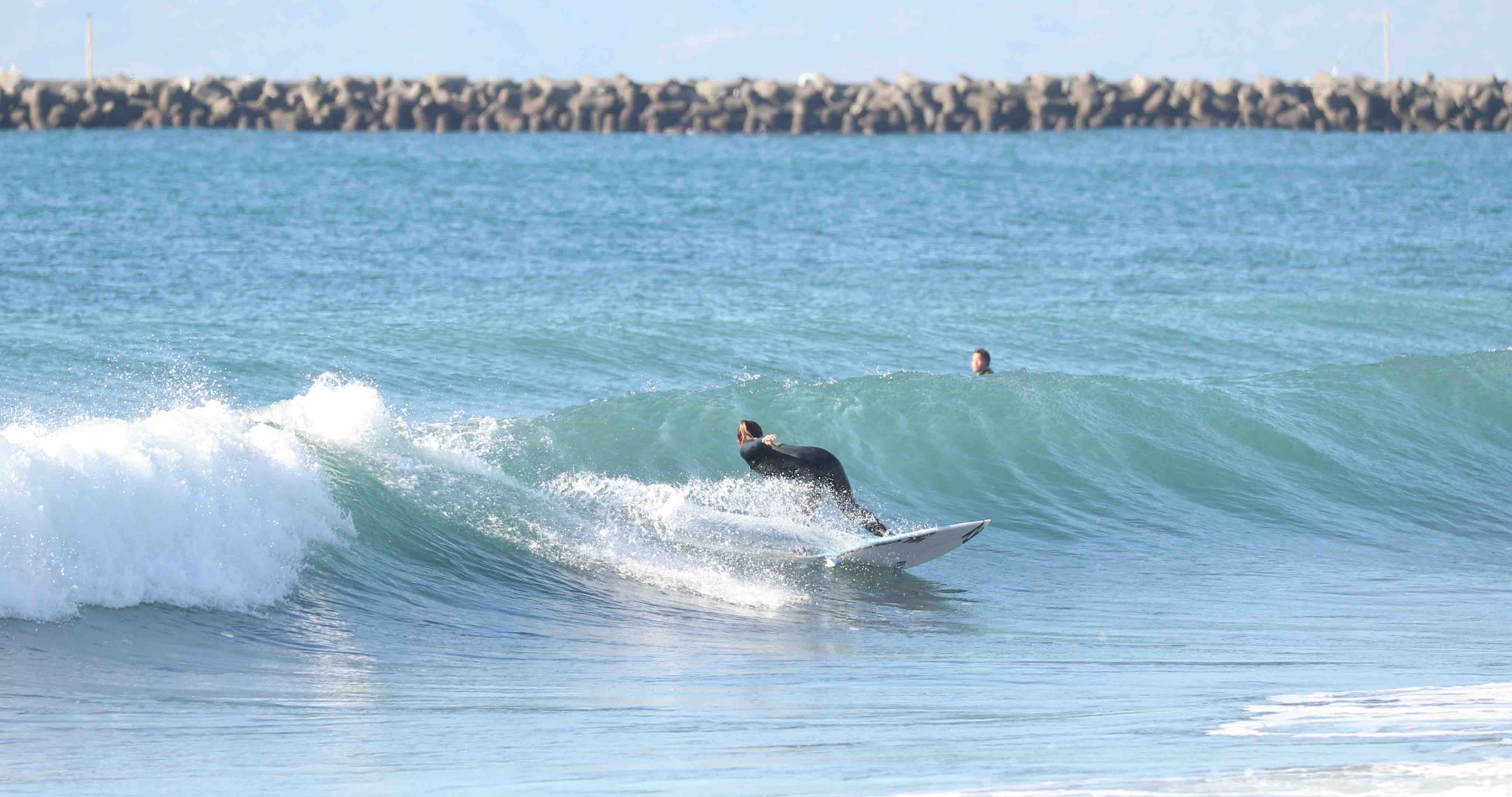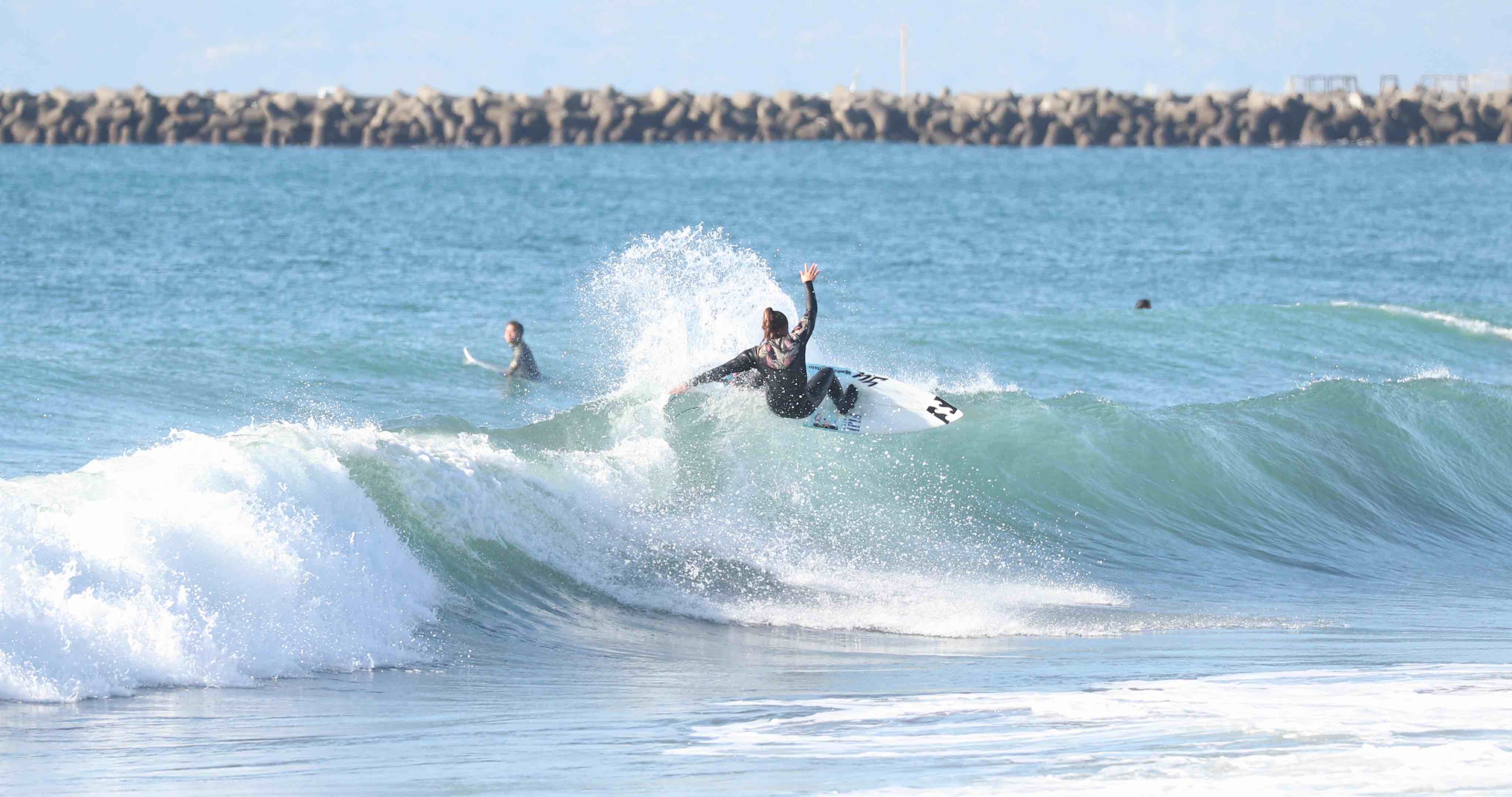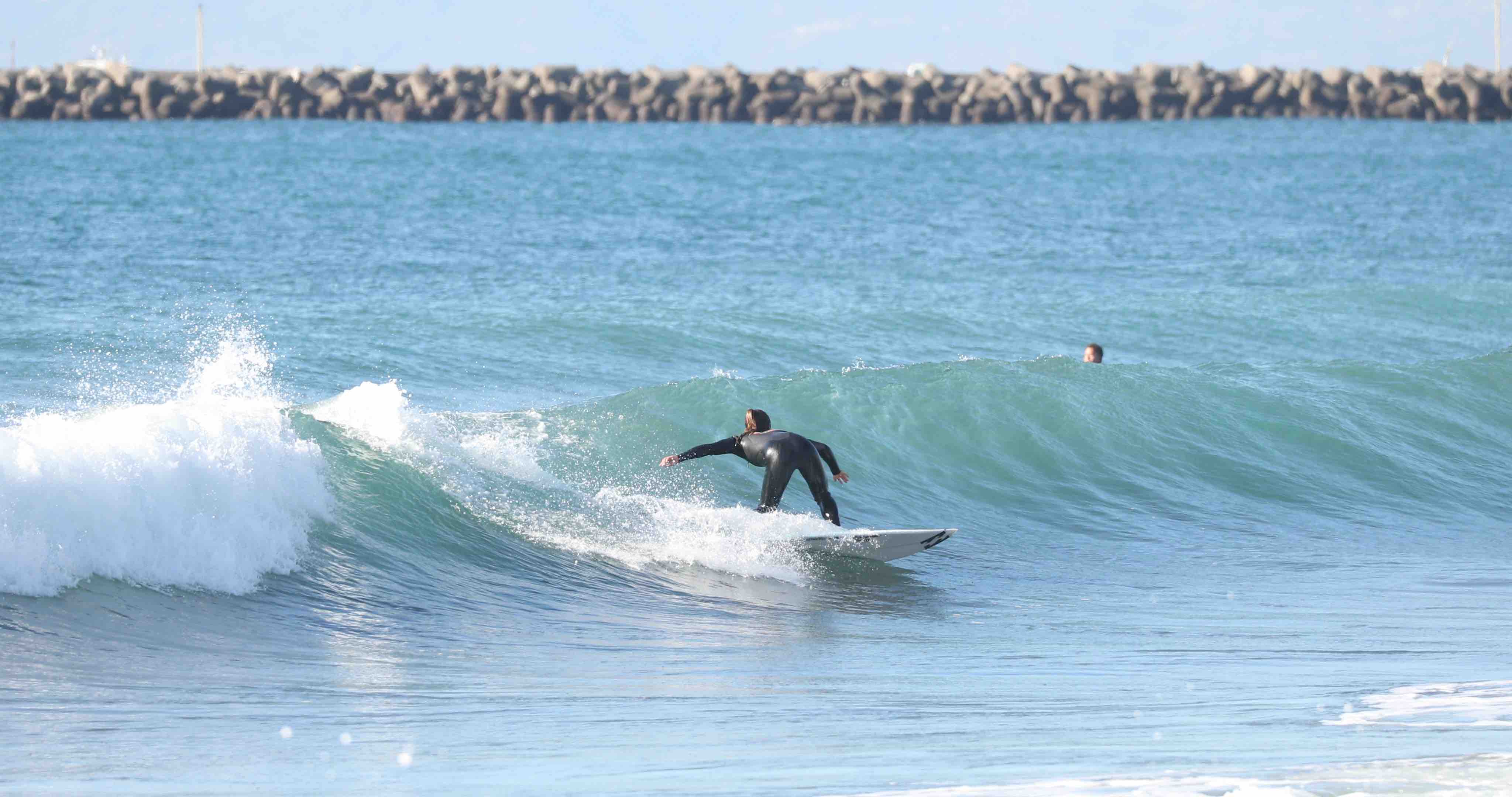 意外にもサイズが残り、オフショアスタートとなった1/10(日)の朝から午前中は形のいい波が押し寄せ、全域に渡ってサーフィンを楽しむことができた。