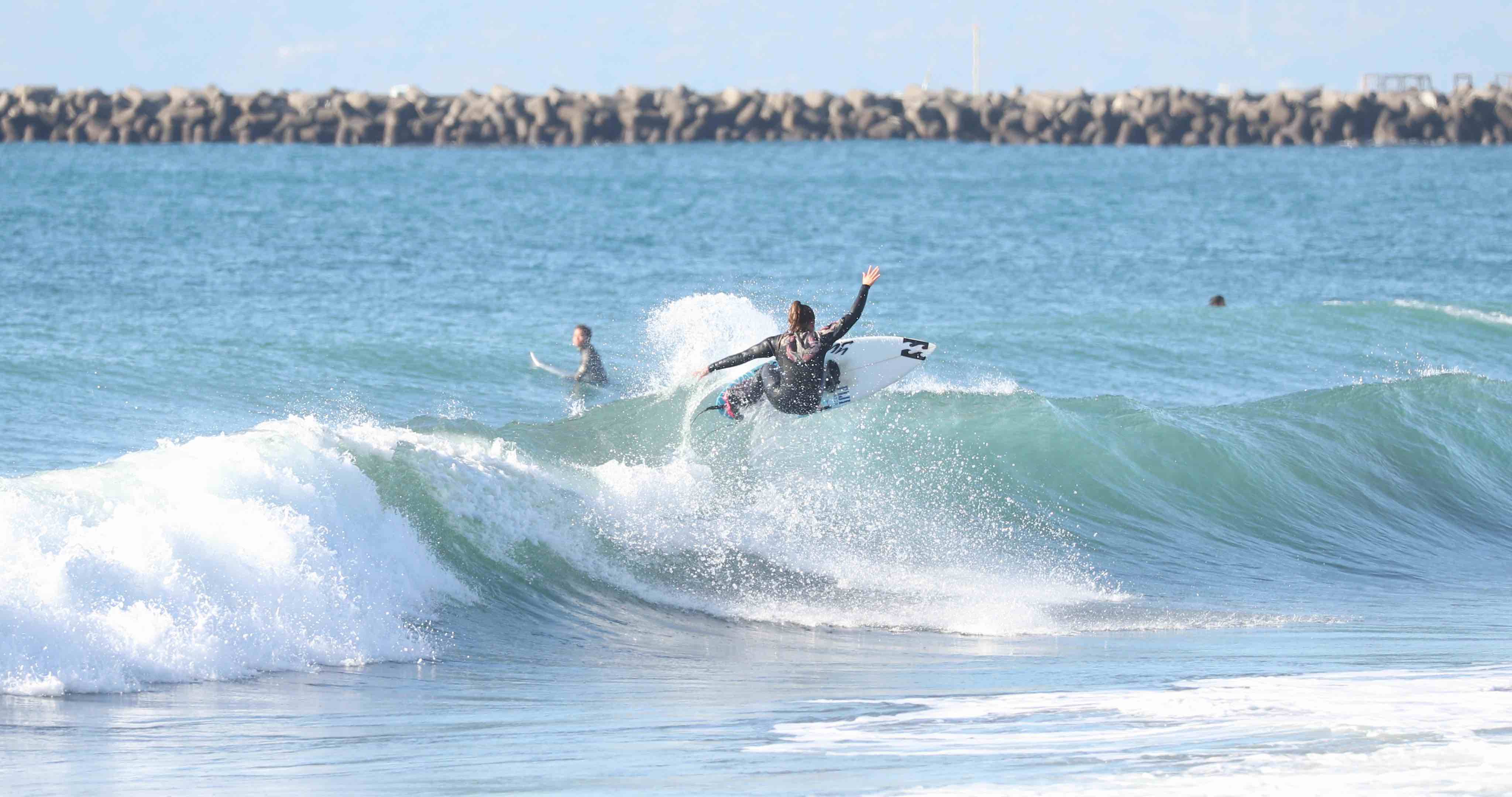 そんな中、数日前の爆風オンショアで砂がついた某サンドバーにはプロサーファーたちが集結!