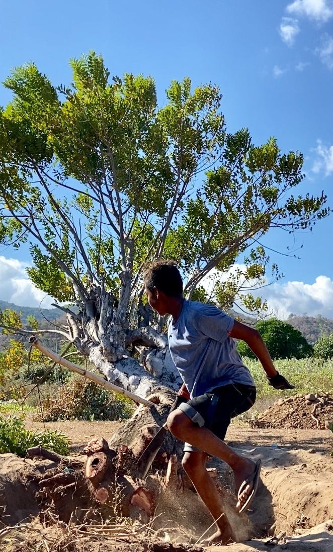 作業をはじめて数日後、ラナちゃんと子供たちは、ようやくその大きな木を倒すができた。