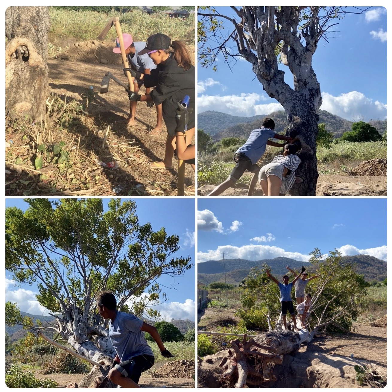 ラナちゃんと子供たちは、その大きな木を倒すために土を掘り続けた。