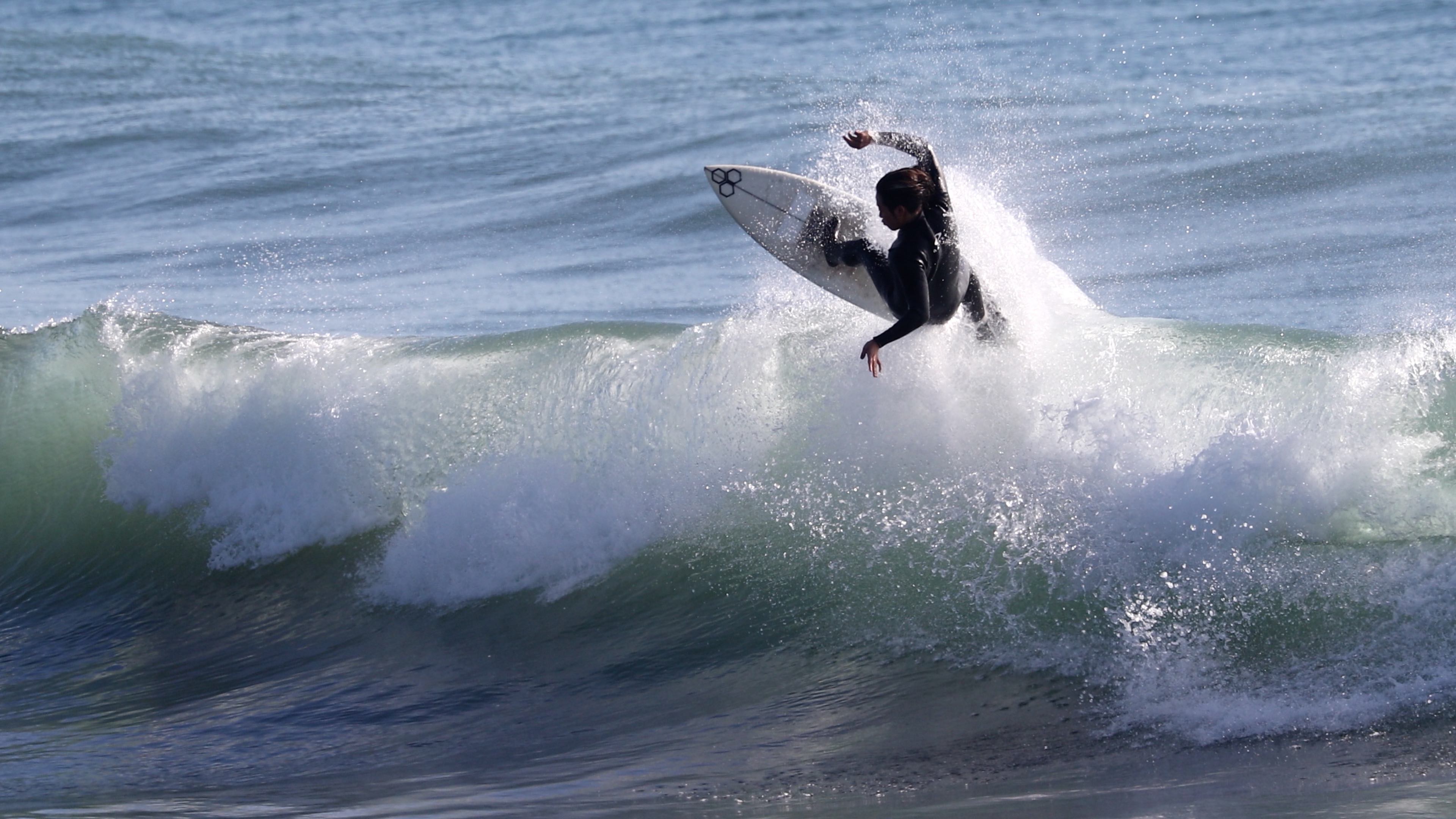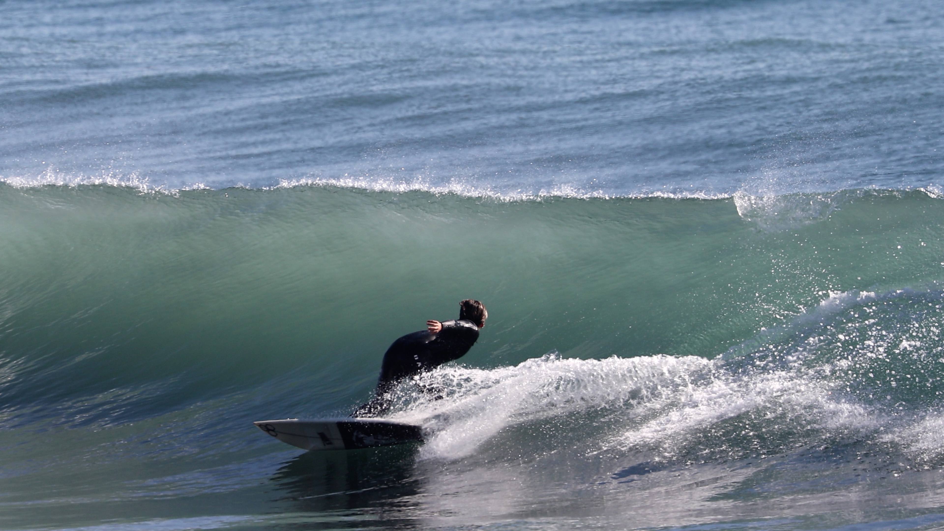 西高東低の気圧配置による南西ウネリによって全域に渡って胸から頭前後までサイズアップを果たし、お昼過ぎまでグッドコンディションとなった1/19(火)の湘南エリア。