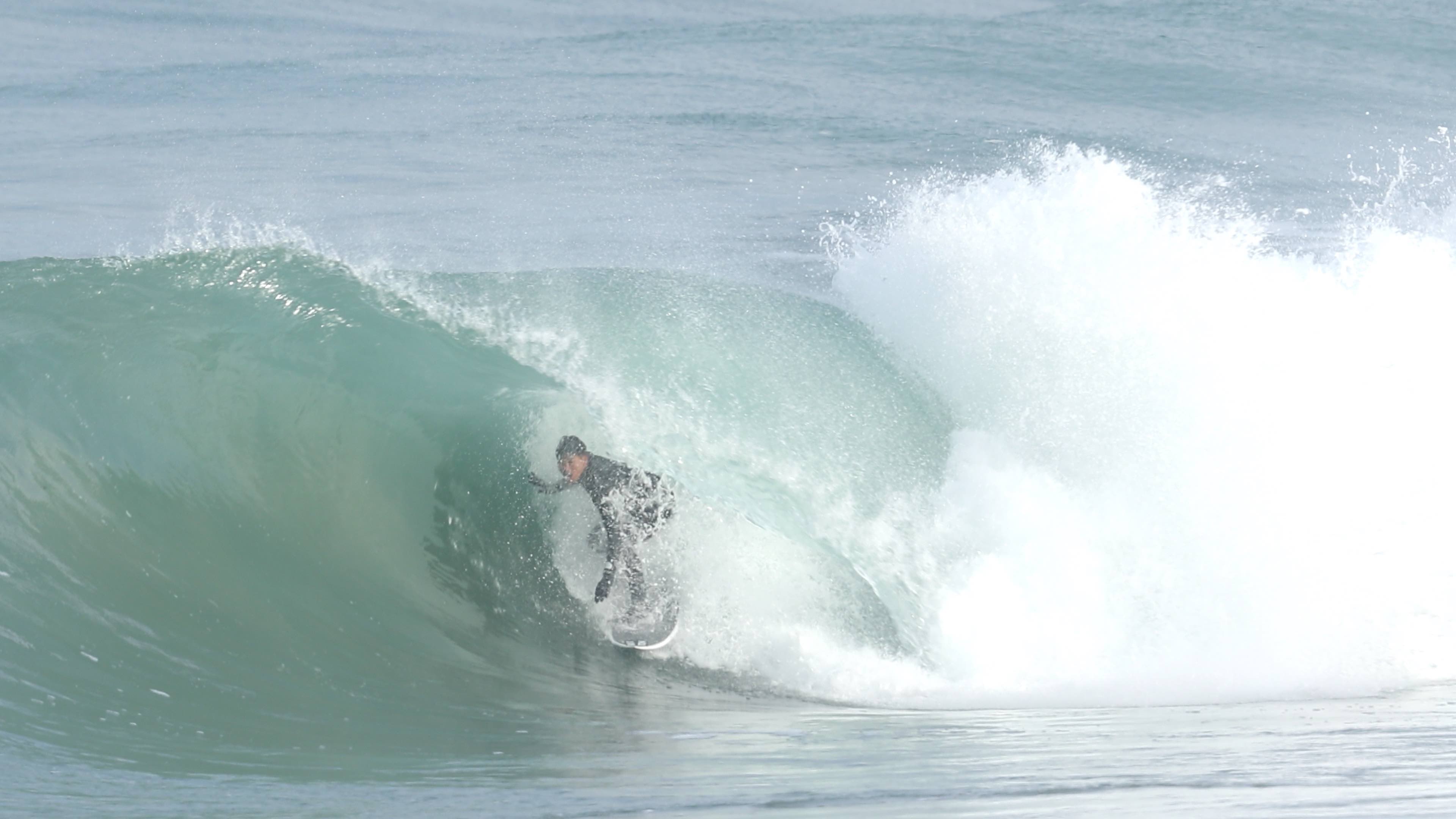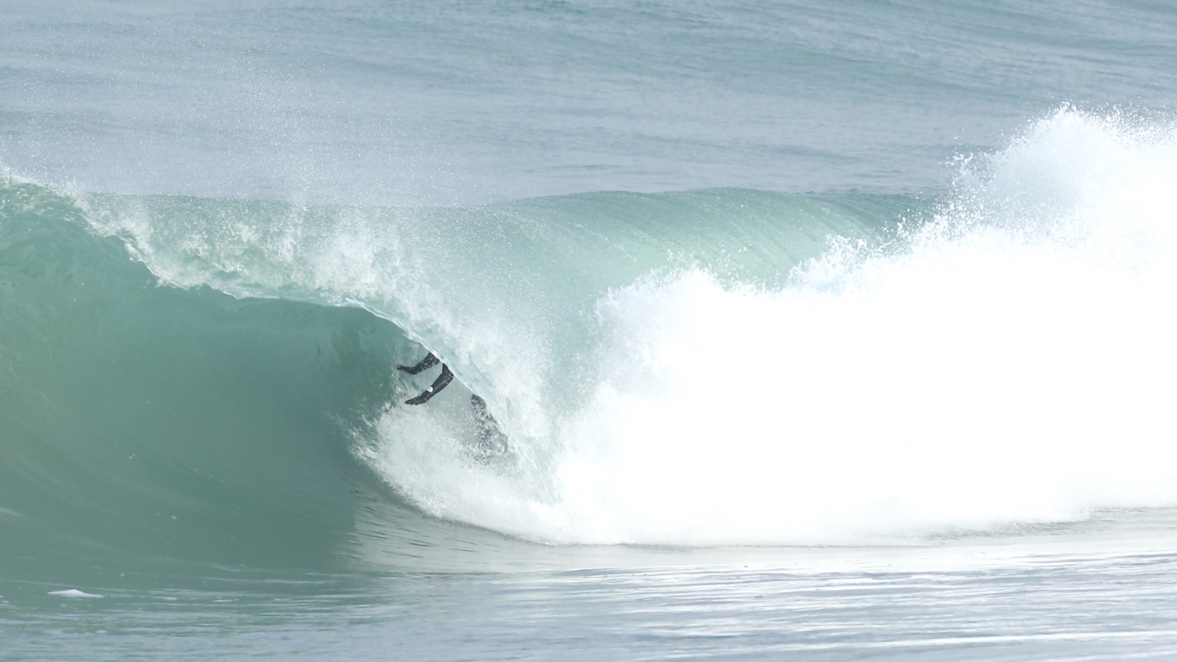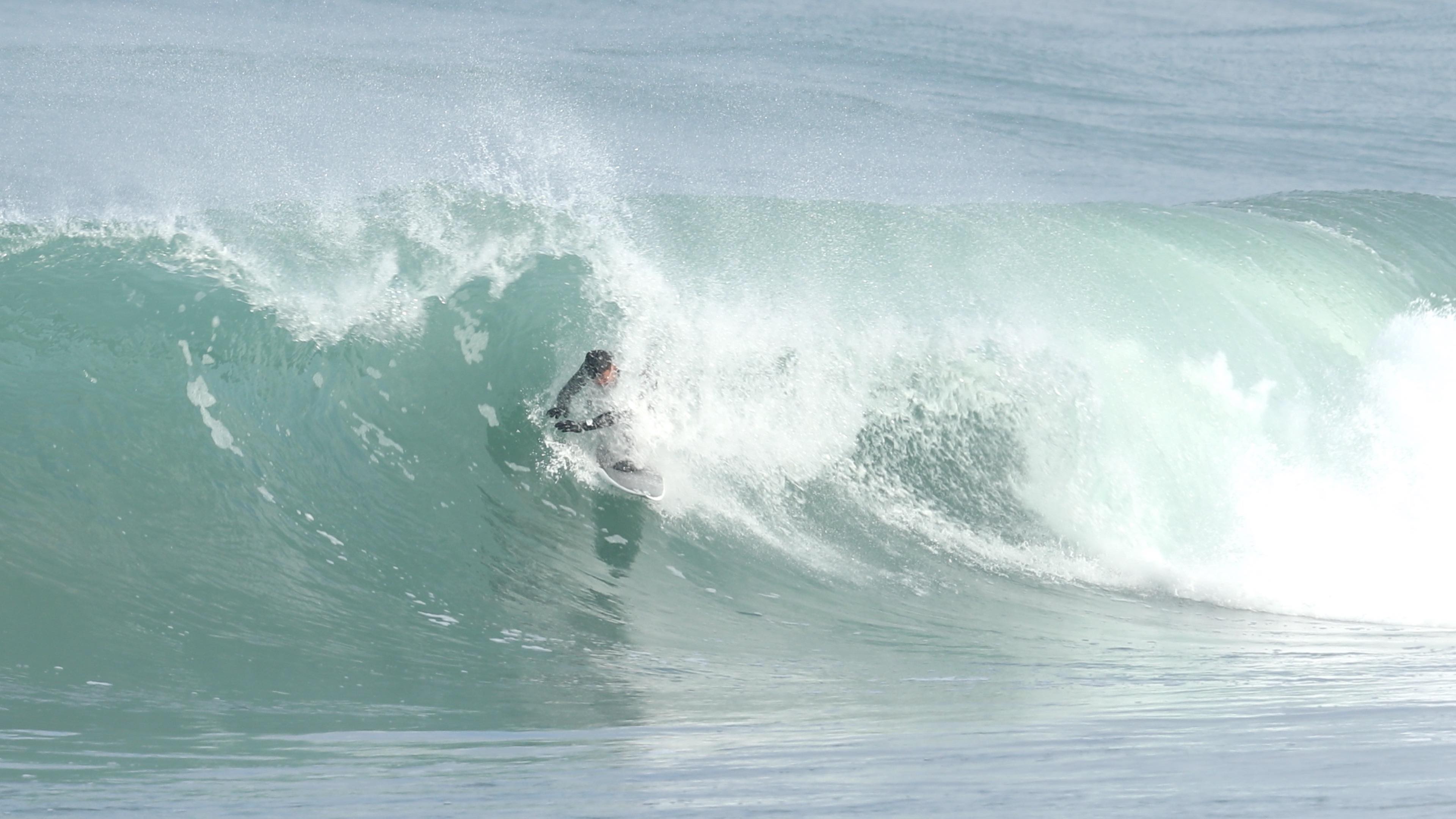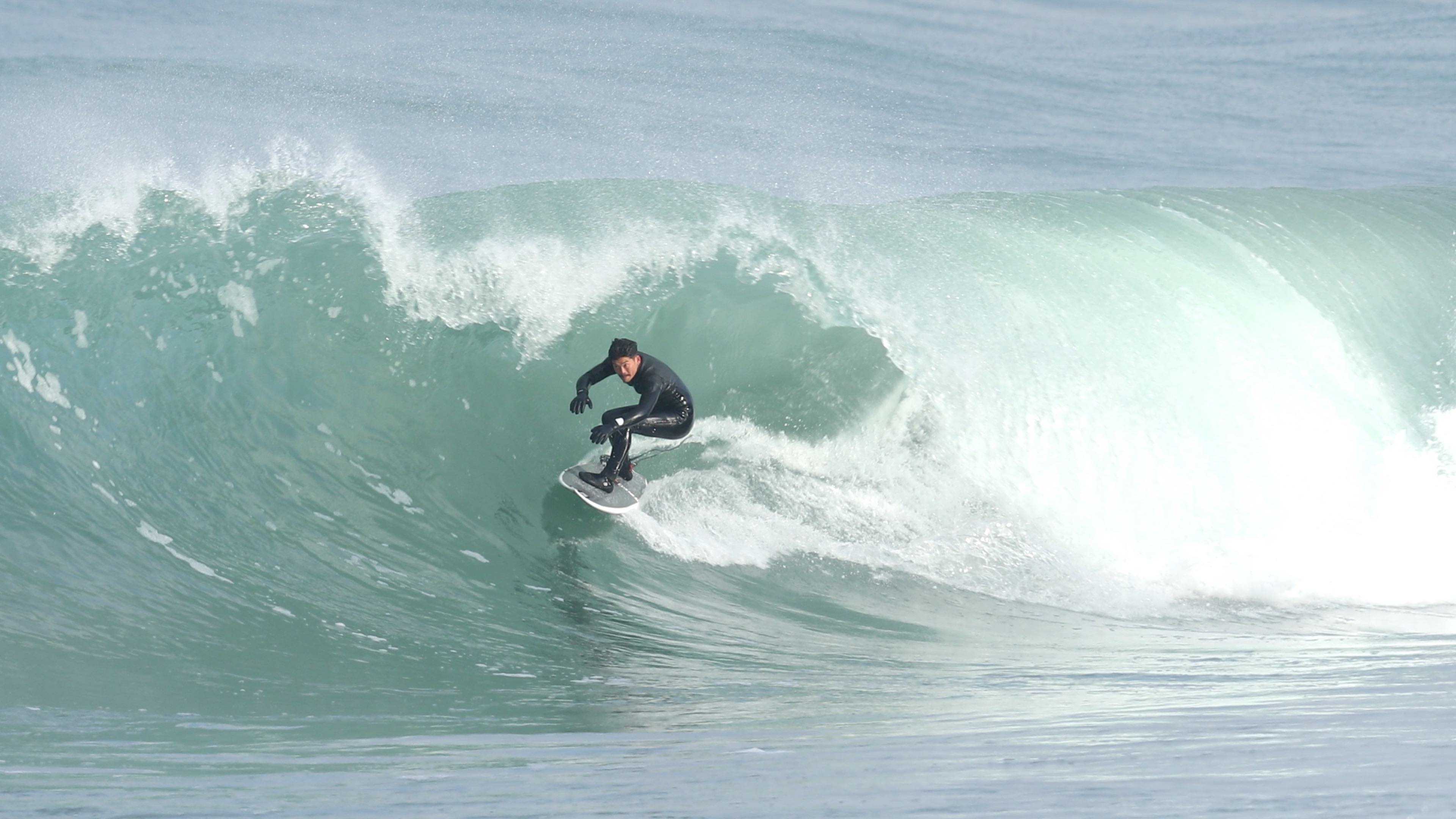 さらにこの1本において付け加えるならば、そのフォームボールをメイクした後に待ち受けていたクローズアウトセクションにおいても、その波の変化を瞬時に見極め、踵側のレールを傾けて一気にボトムを目指し、潰されれば背骨粉砕してもおかしくないほどパワフルかつ分厚いリップを交わしぬけているところ。