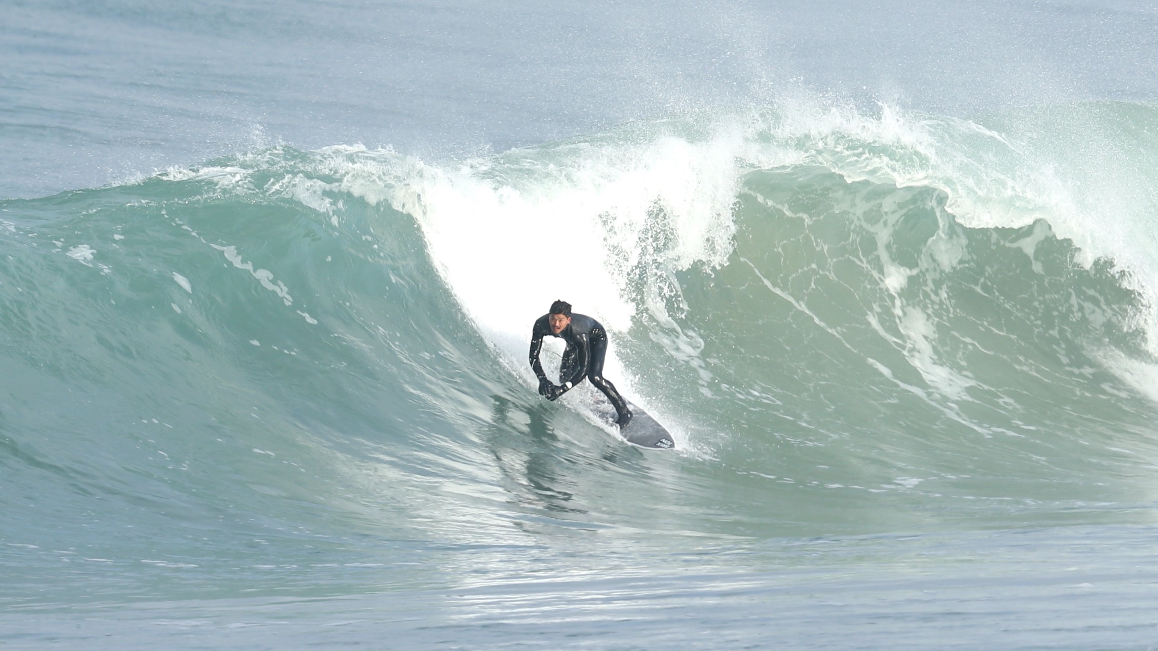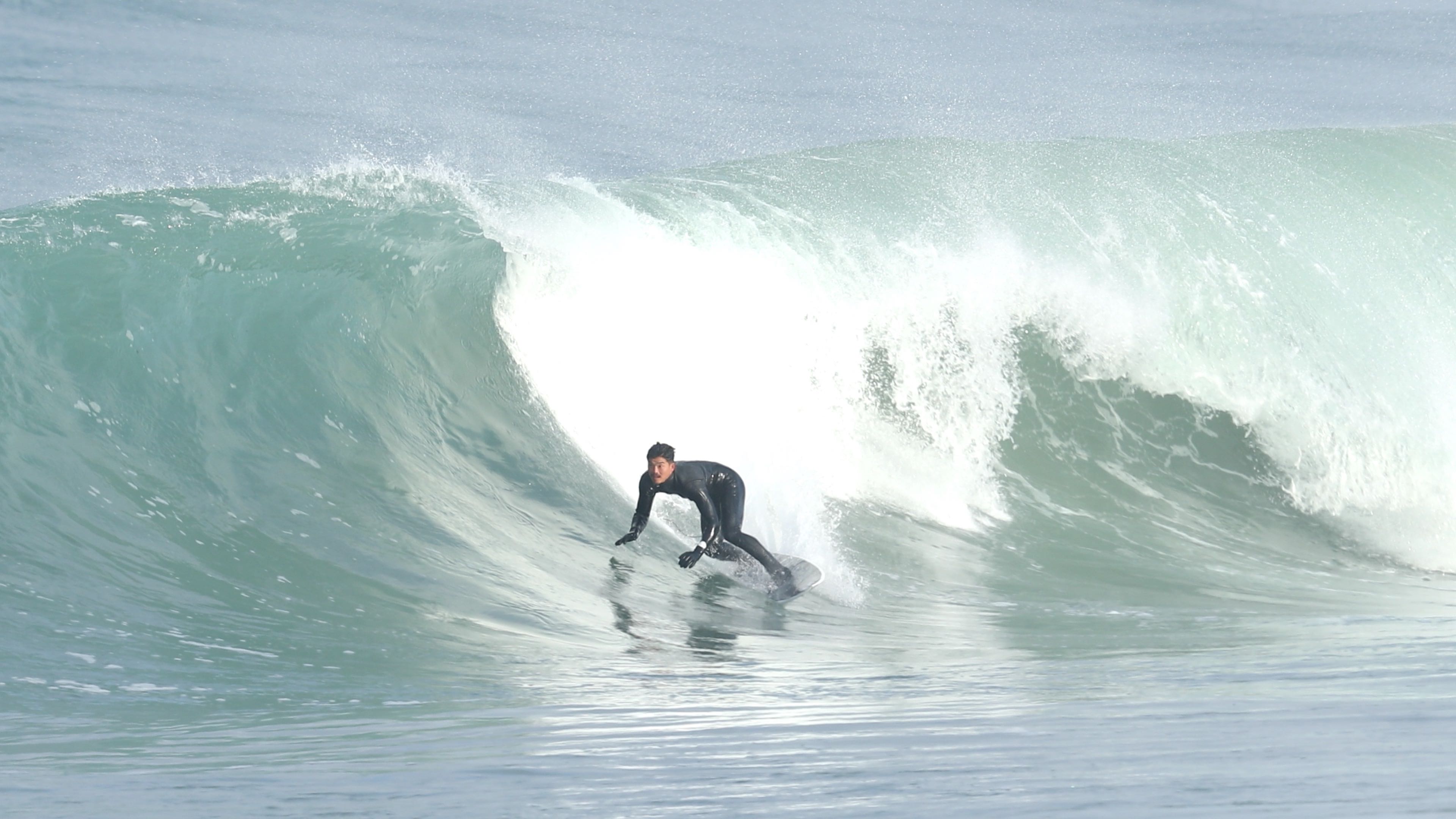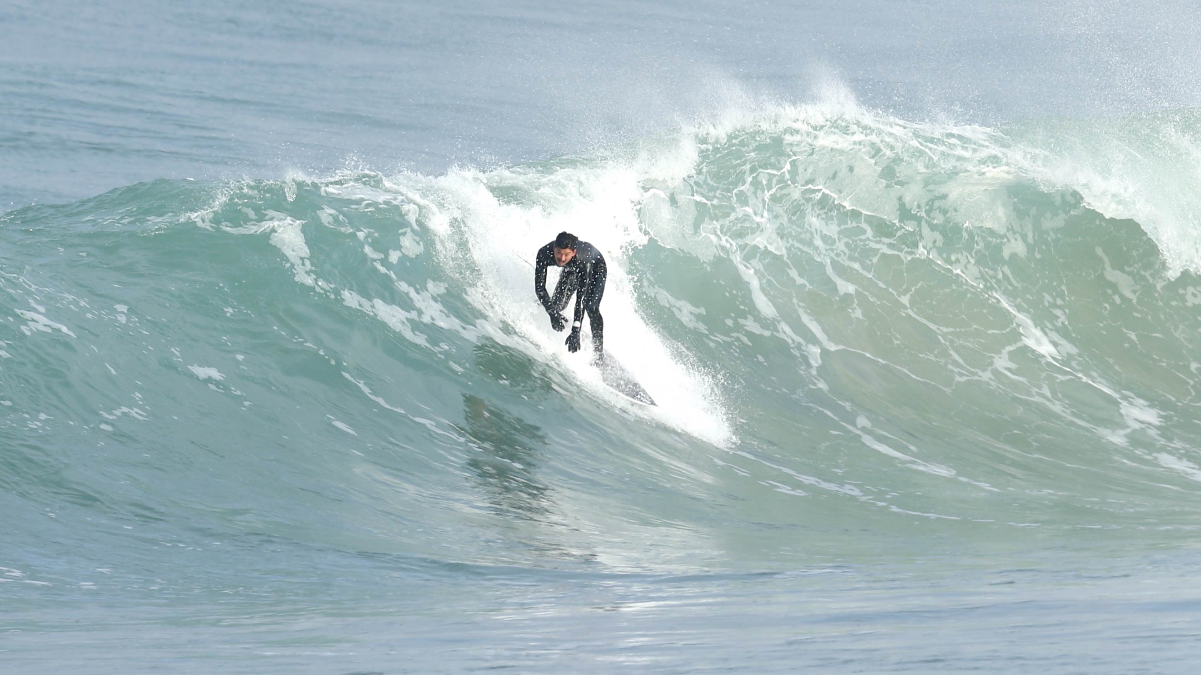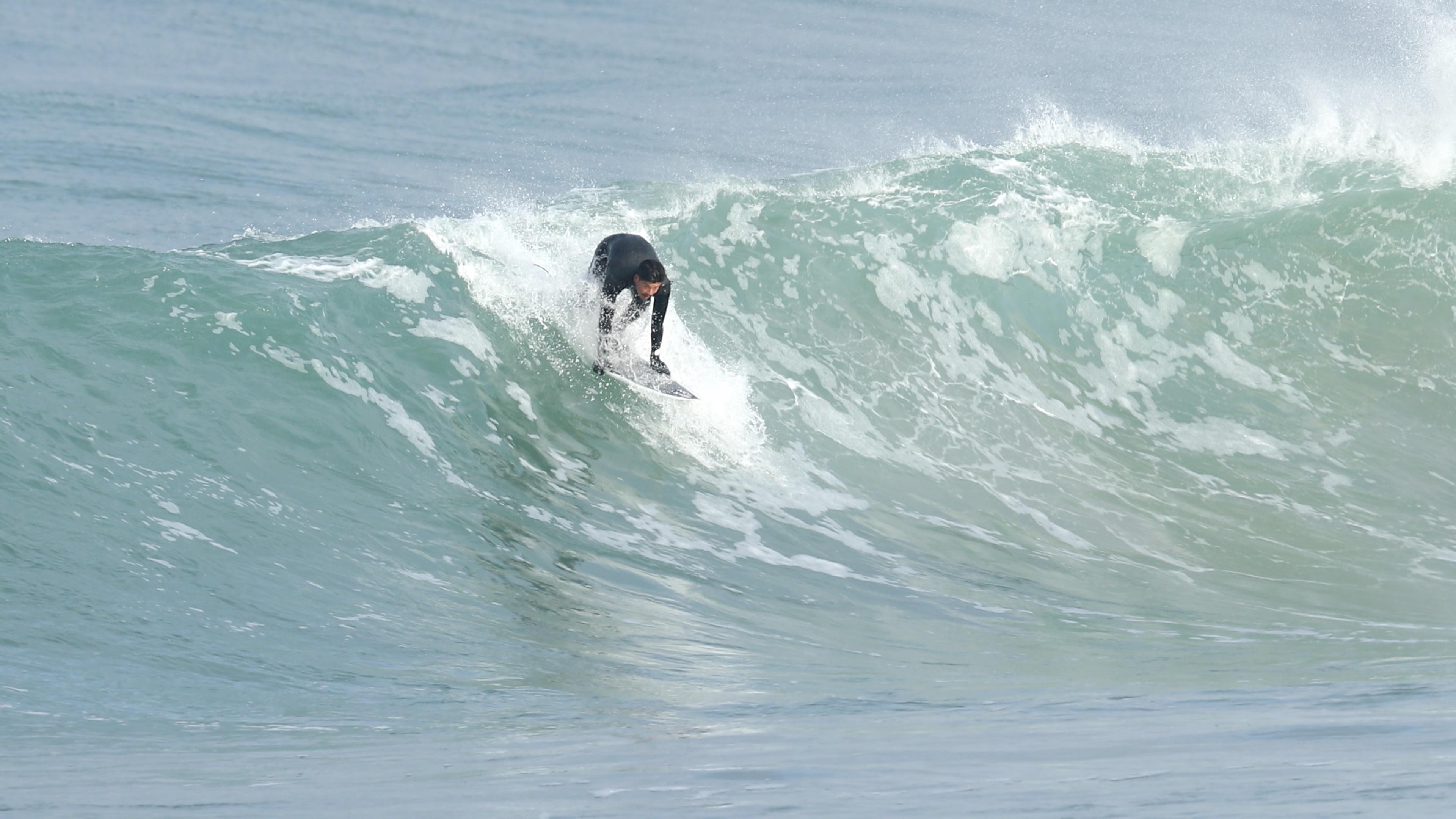 さらにこの1本において付け加えるならば、そのフォームボールをメイクした後に待ち受けていたクローズアウトセクションにおいても、その波の変化を瞬時に見極め、踵側のレールを傾けて一気にボトムを目指し、潰されれば背骨粉砕してもおかしくないほどパワフルかつ分厚いリップを交わしぬけているところ。