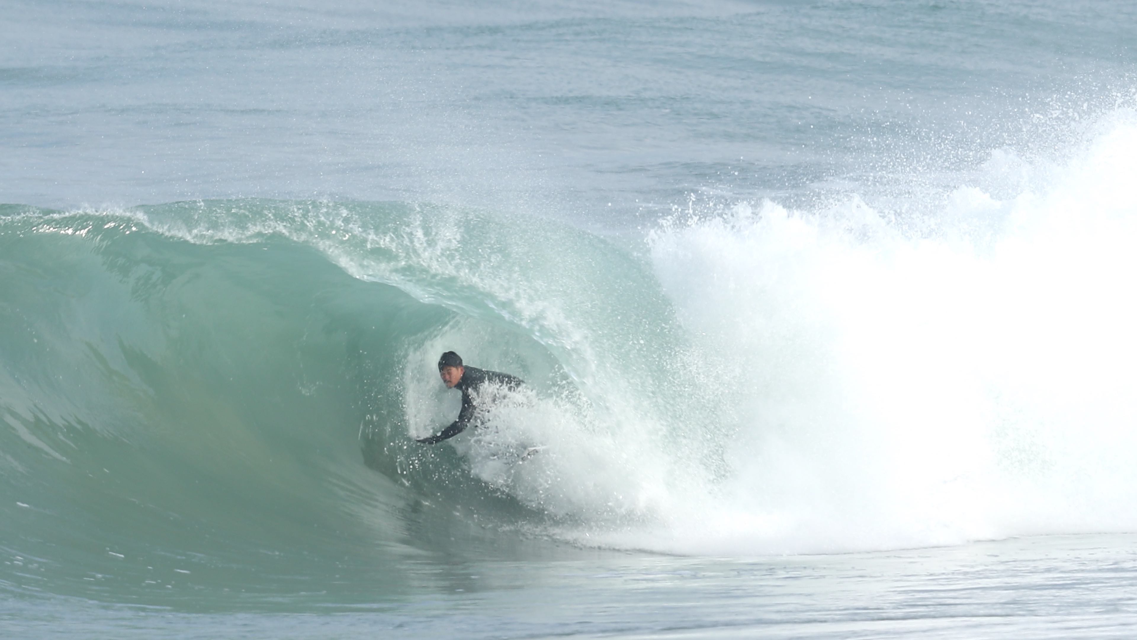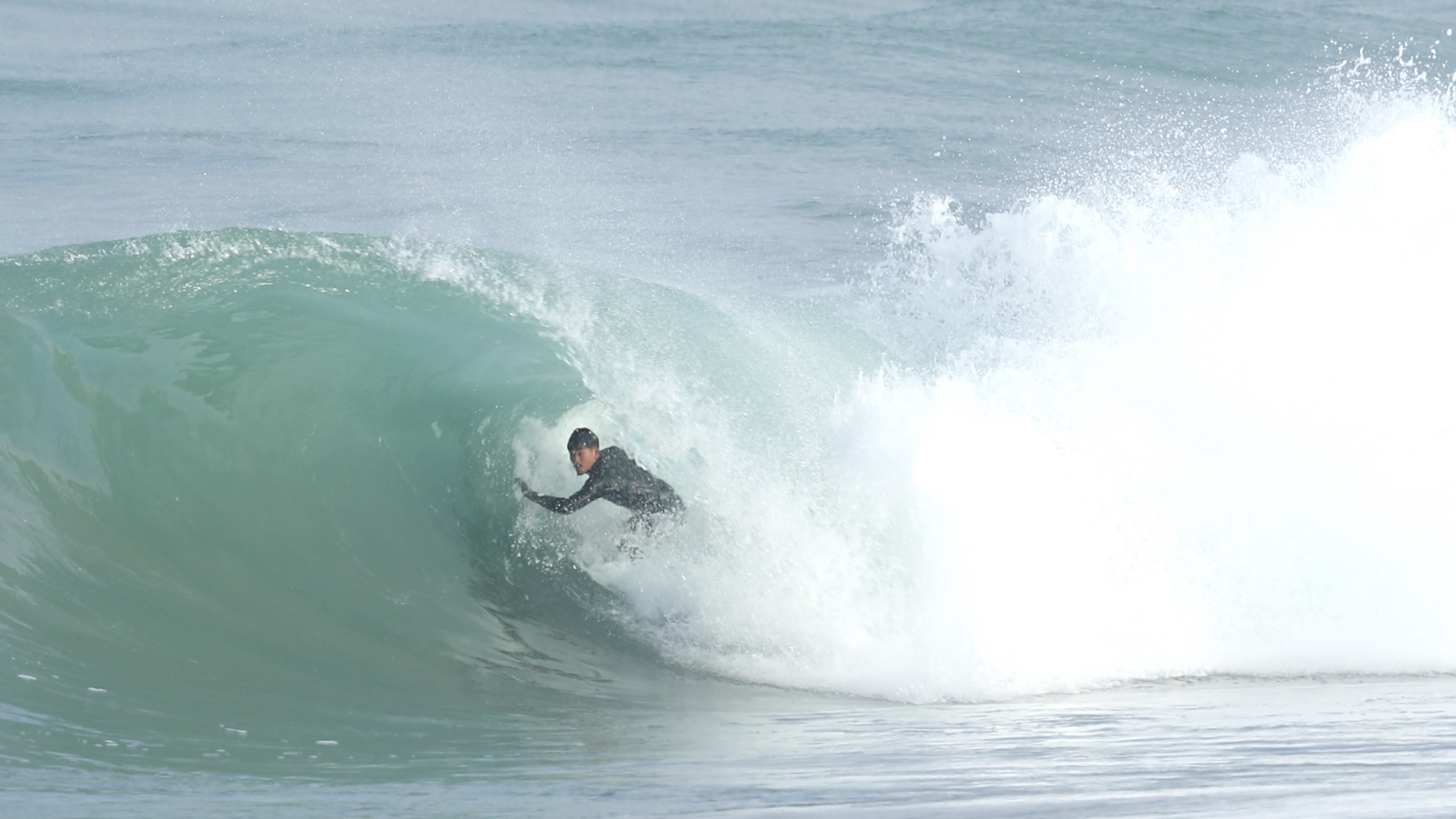 しかし、チューブの深い深い場所でその悪魔に遭遇しても、冷静かつ絶妙なボードコントロールでバランスを失うことなくメイクしてしまうところこそ、さすが世界が認めた天下無双の日本人プロチューブライダー松岡慧斗と言えるだろう。