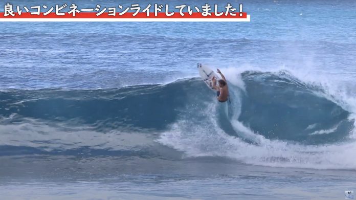 そのパーフェクトな波の海底に潜む激浅リーフで河村海沙は足を負傷し、この後数日サーフィンお休みを余儀なくされたようであるが、安室丈、都築虹帆が繰り広げる若さ溢れるアグレッシブなライディングの数々は見応え十分!!