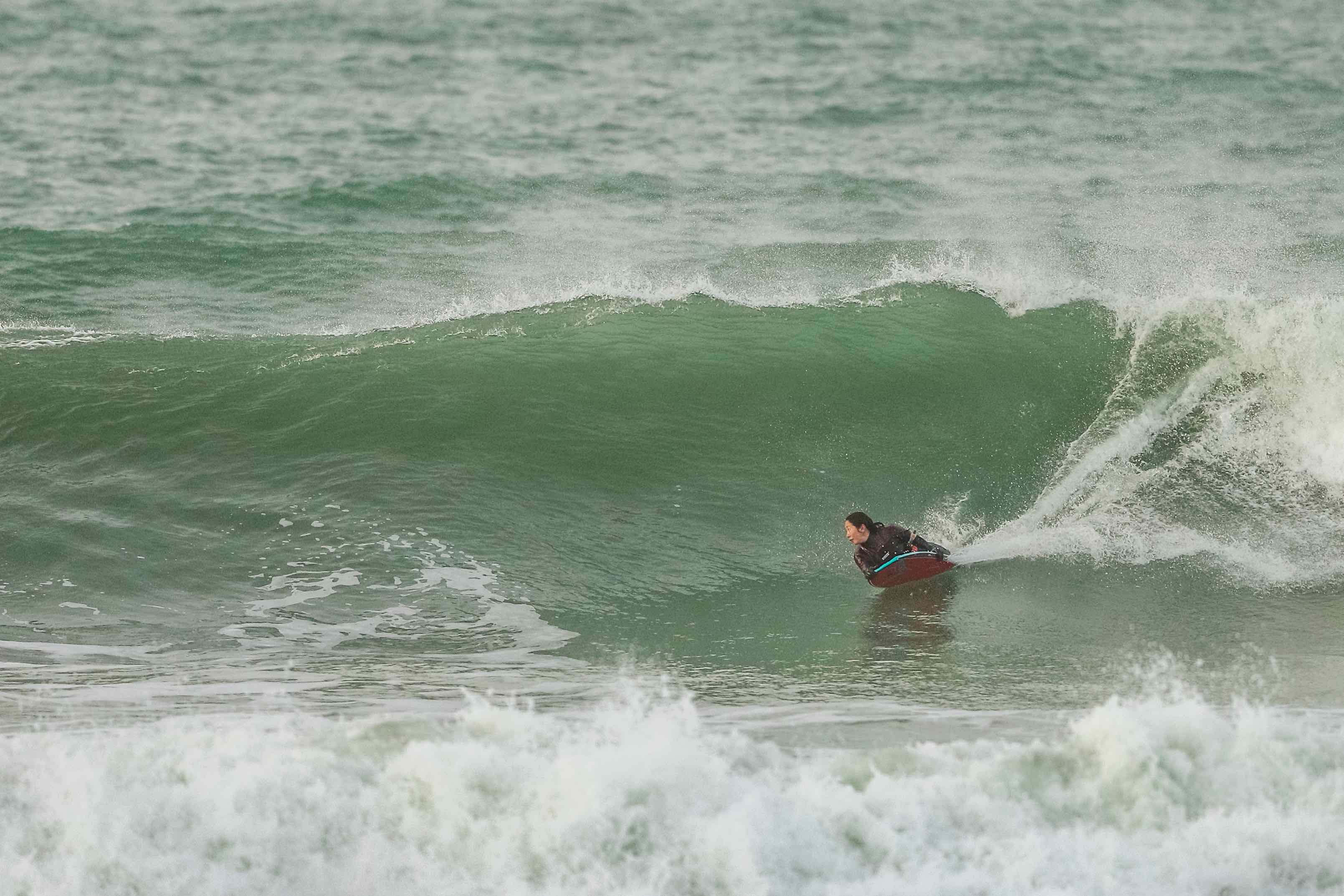 午前中まではオンショアの荒波のハードコンディションとなったが、夕方になるとオフショアとなり、まさかの頭前後のグッドコンディションをスコア!!