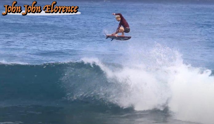 海に到着すると、偶然か必然か、オーストラリアのCT戦のために練習中のJohn John Florenceに遭遇!