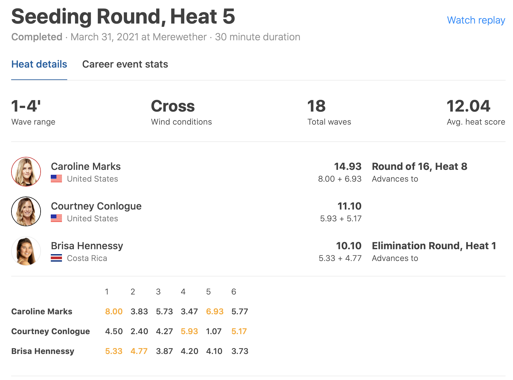 迎えるコンテストDAY2は、日本時間の4/2(金)午前5:15にネクストコールが発表となり、コンディションが十分であれば午前5:35よりヒートが開始される予定。