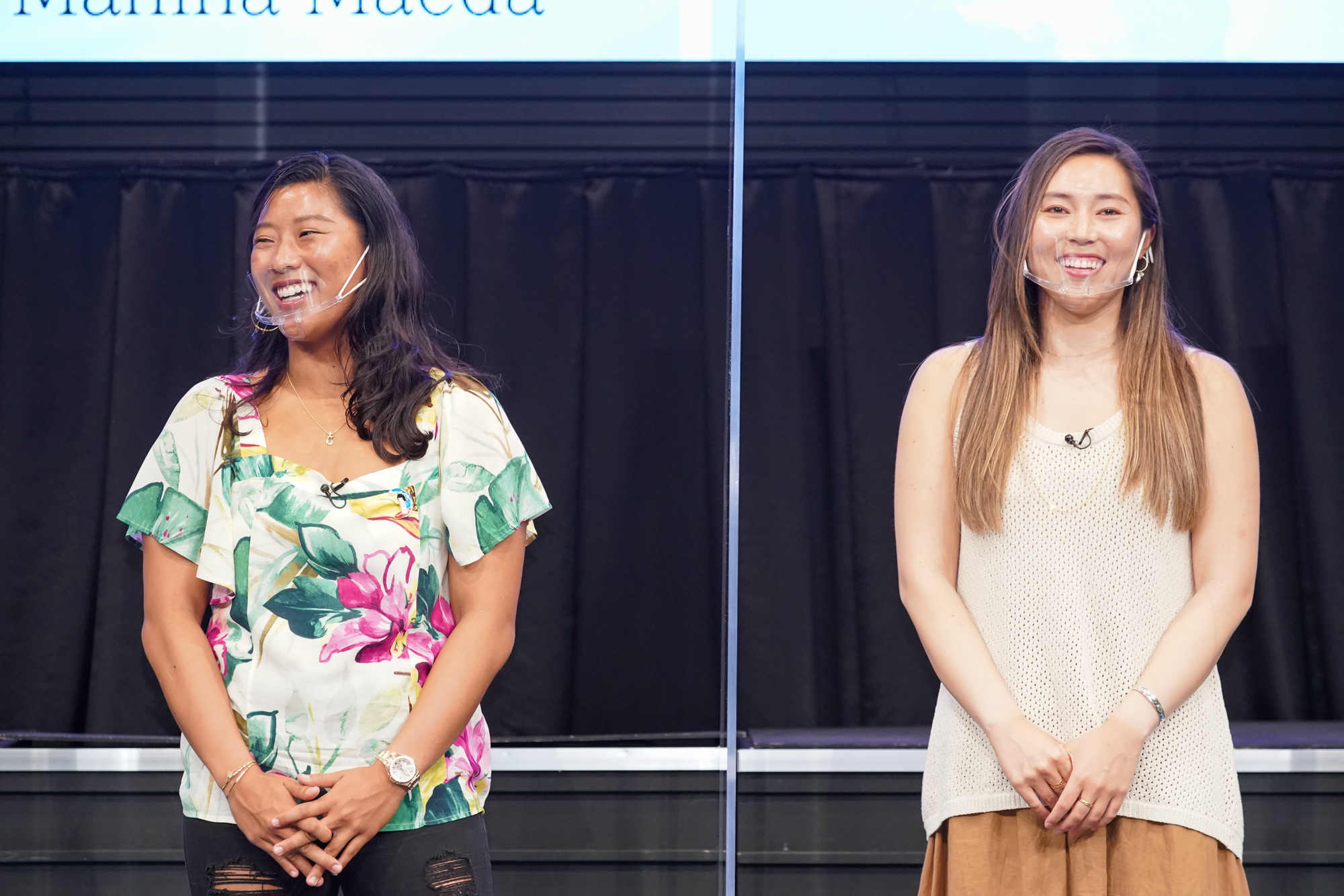 今後は吉本興業所属のプロスポーツ選手として、また大会や競技とは違った側面よりサーフィンを広めるべく幅広く活動していく予定の前田マヒナと野呂玲花。