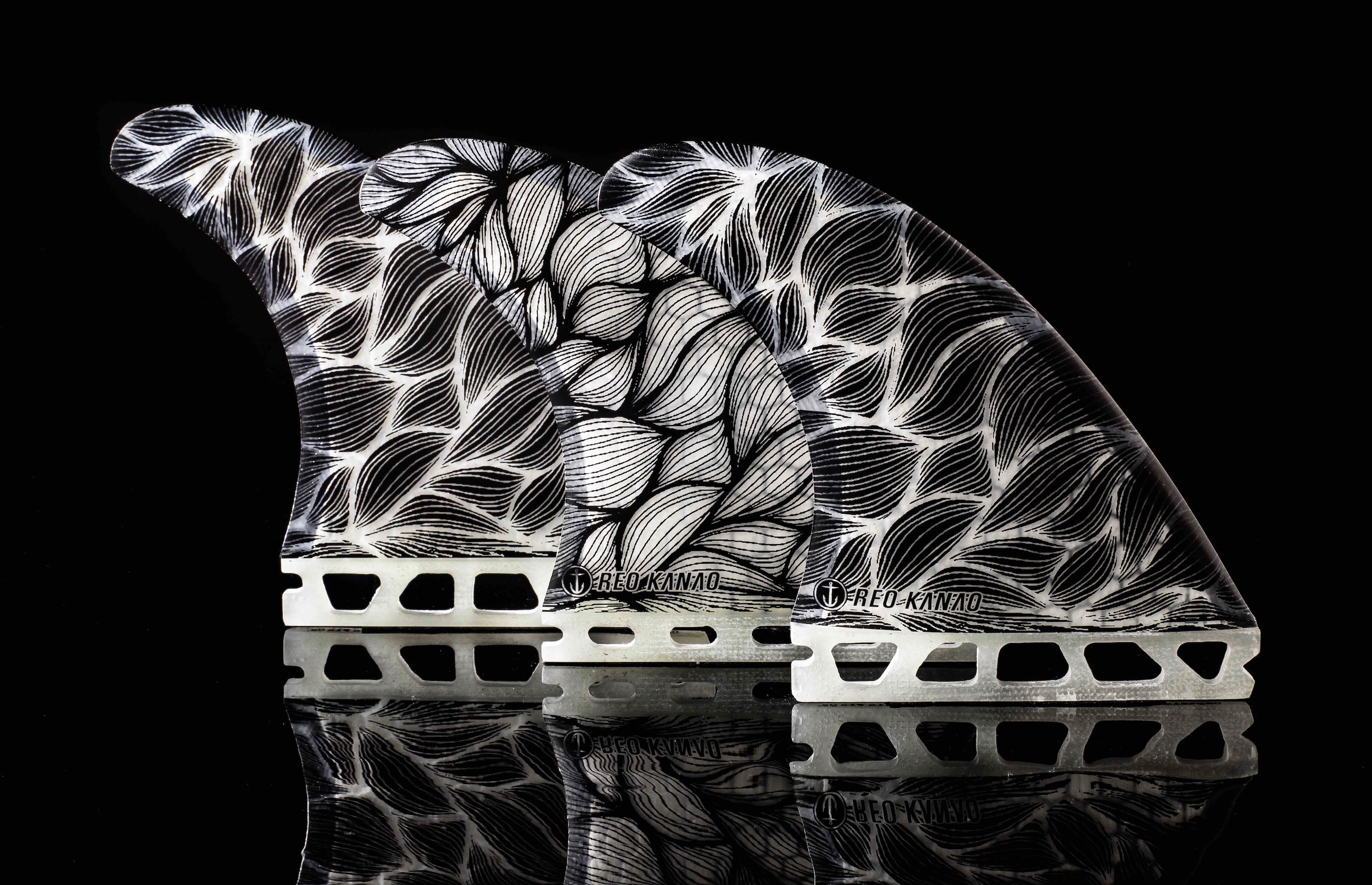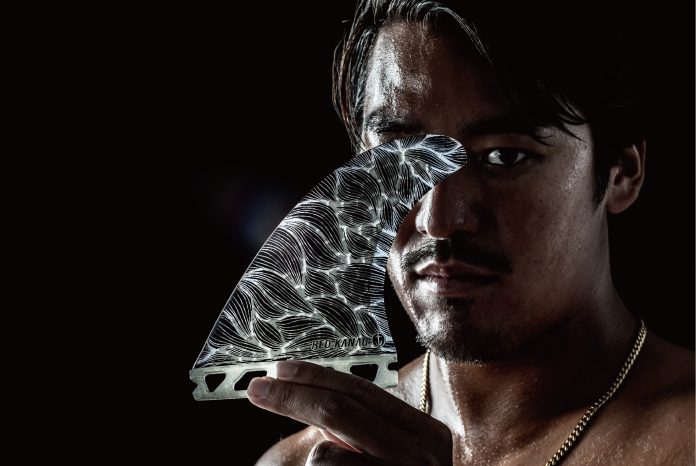 テンプレートは、本人の真骨頂ともいえるエアートリックに最適な超軽量素材にハニカムコアを使用、それが透けて見えるようにクリアでコーティング、デザイン面でファッション業界のトレンド”クリア”を大きく意識しているのも、アパレルブランドを運営する玲生らしいセレクト。表現者 金尾玲生のこだわりが凝縮したシグネチャーフィンSOLID LINEがついにリリースする。