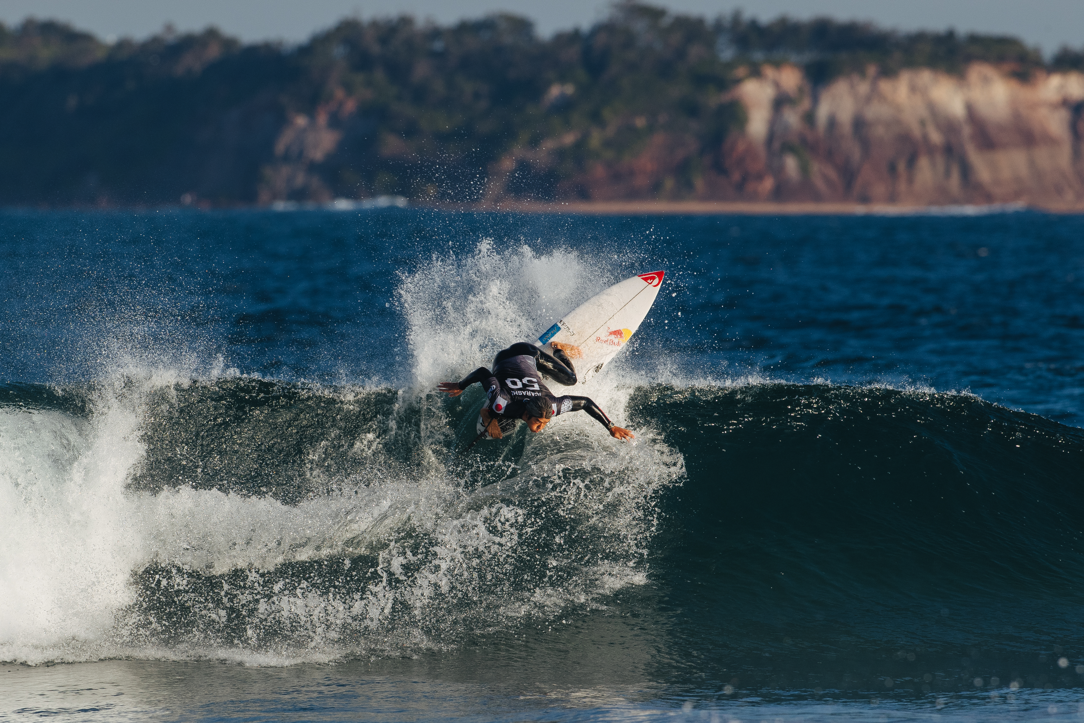 驚異のネクストレベルなバックサイド・フルローテーションエアでフラットなボトムに見事着水したが、弾け飛ぶホワイトウォーターに弾かれてインコンプリート判定となり、ハイスコアにつなげることができず、それが敗因となったItalo Ferreira.