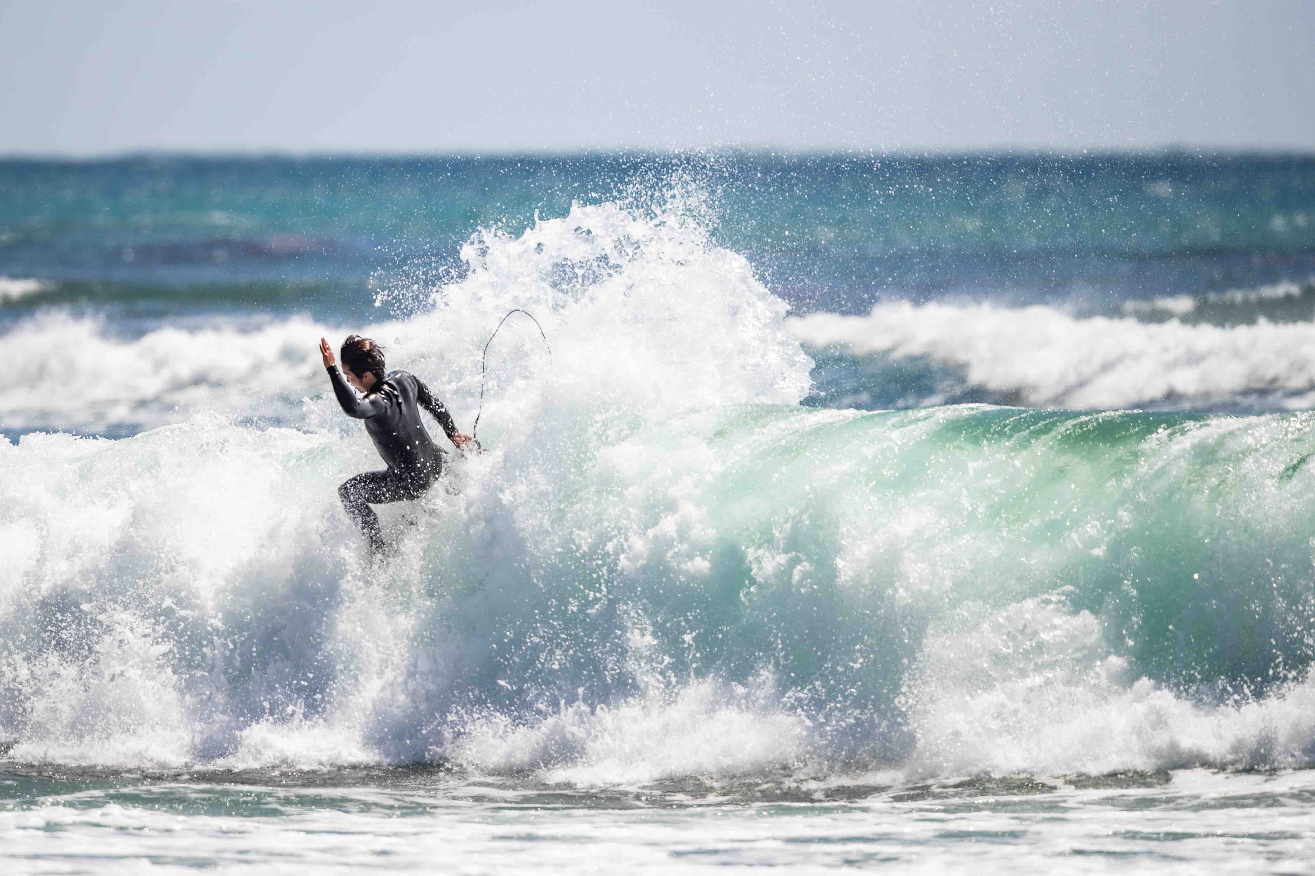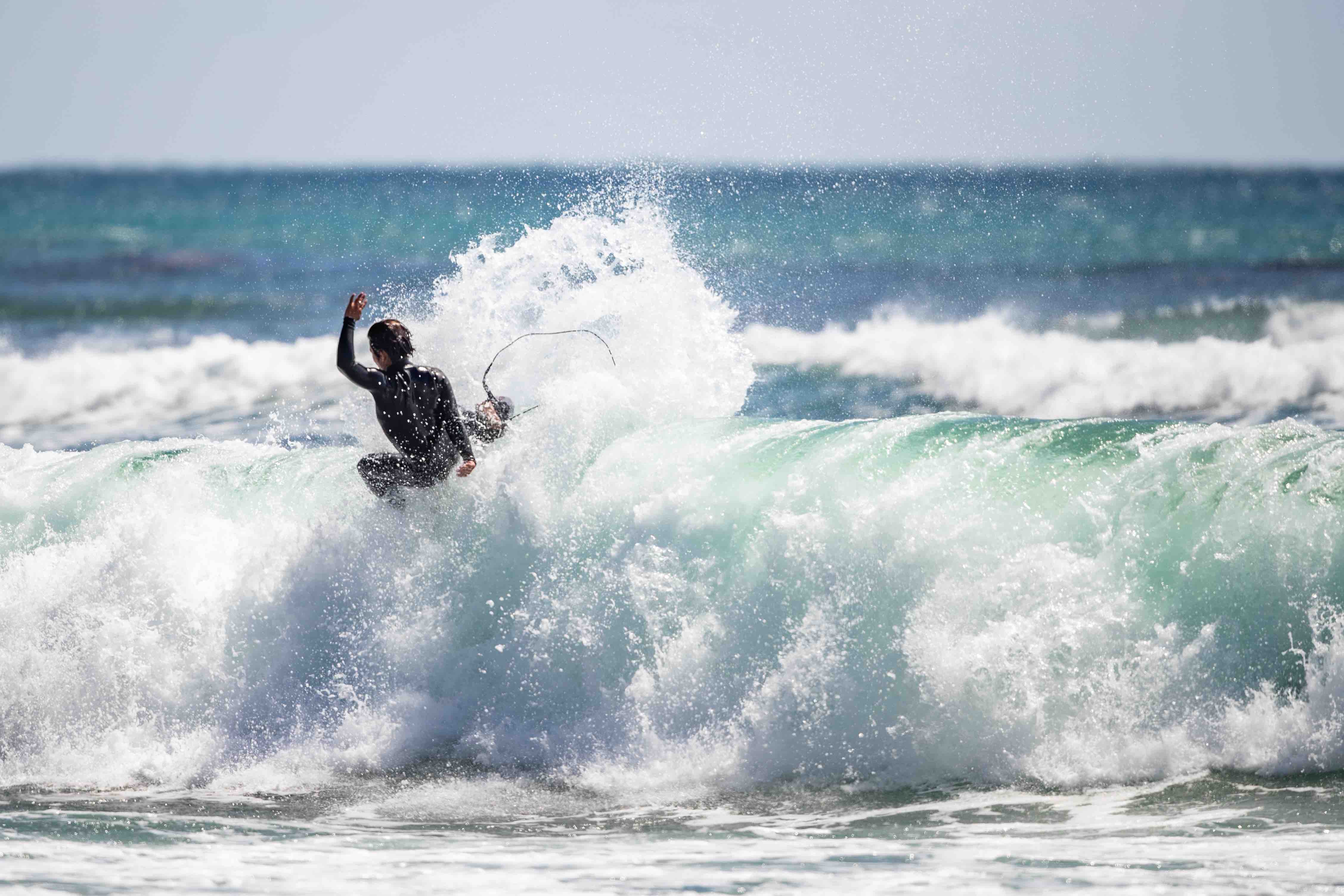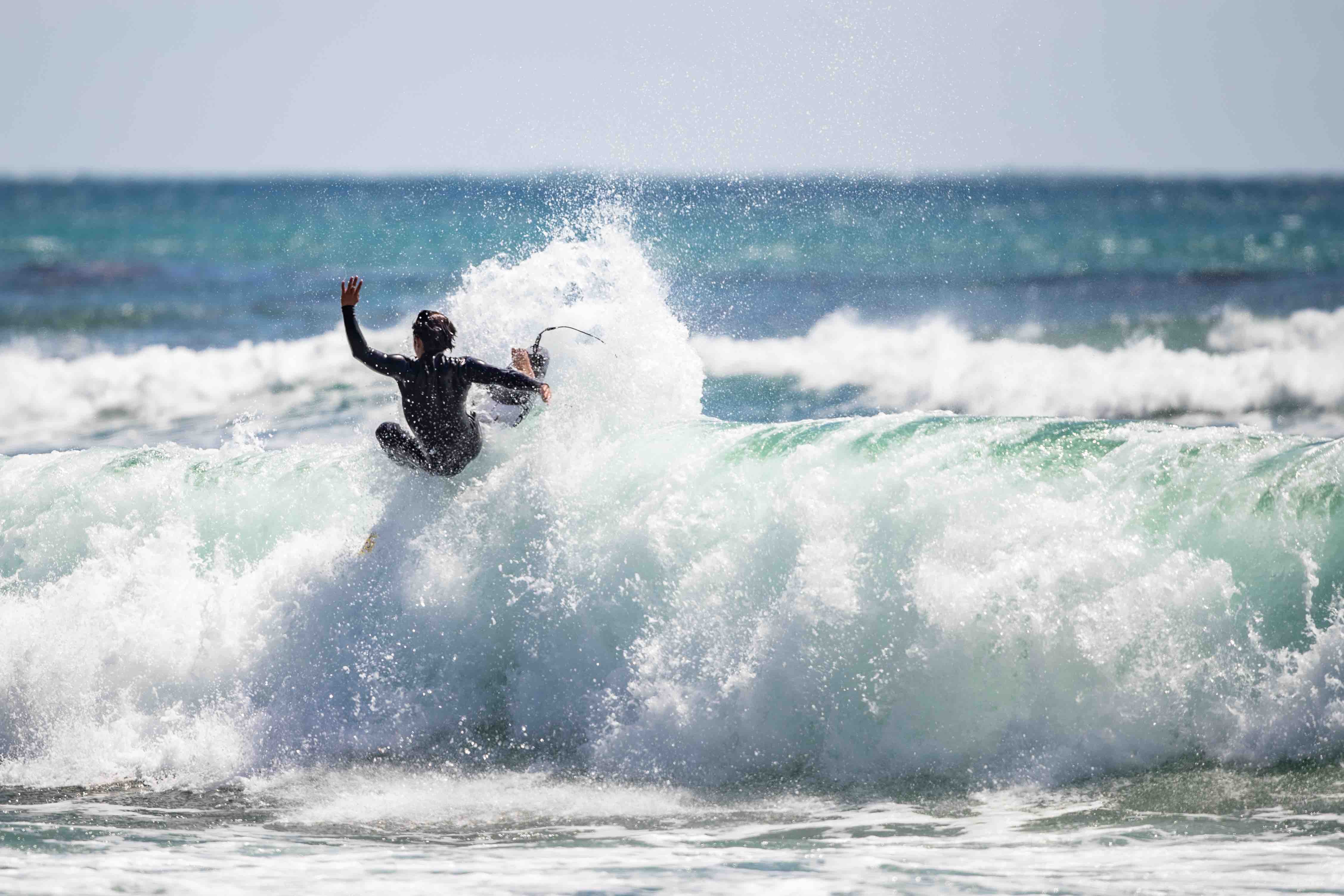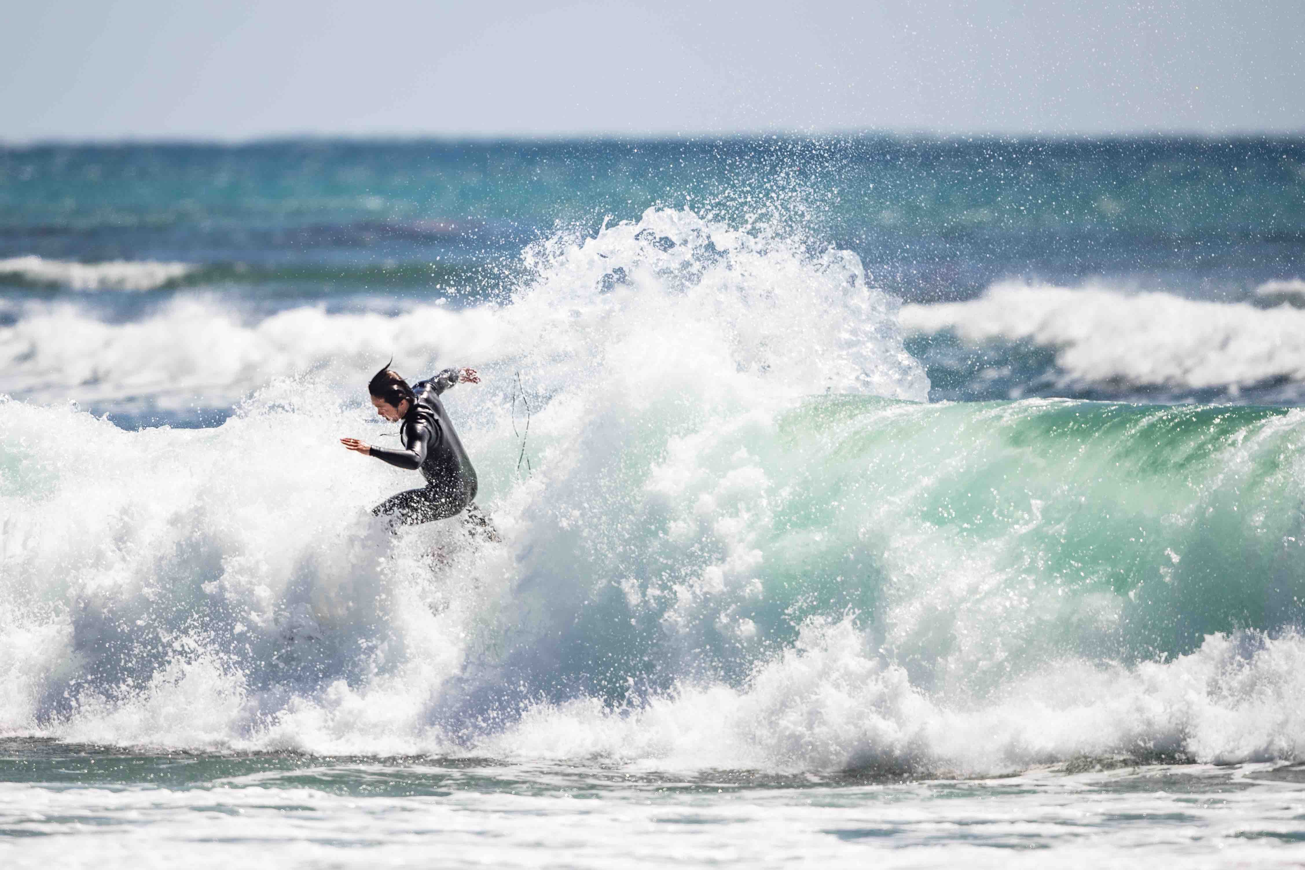 このエリアを拠点とする女子高生プロサーファー松永莉奈。狂気のビッグウェイブ・チャージぶりで日本のビッグウェイブシーンを揺るがす松永大輝プロの妹でもある。トップで大きなスプレーを上げることができるのは、持ち前の深いボトムターンがあってこそ。Rina matsunaga.