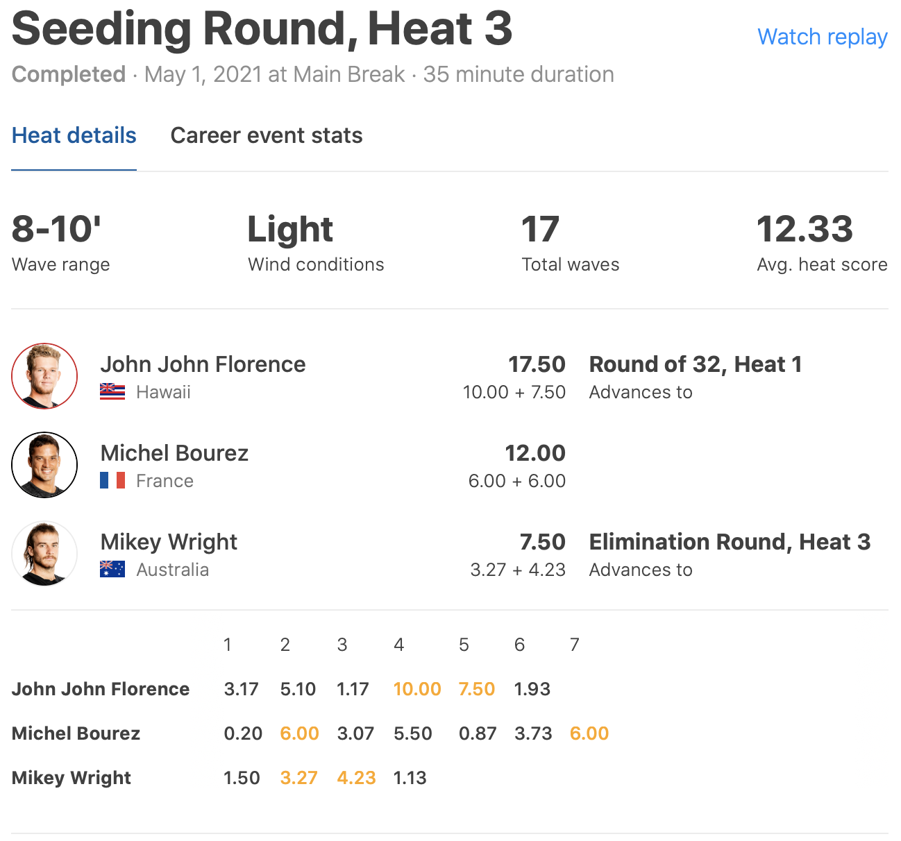 HEAT 3: Mikey Wright (AUS) vs. TBD vs. TBD