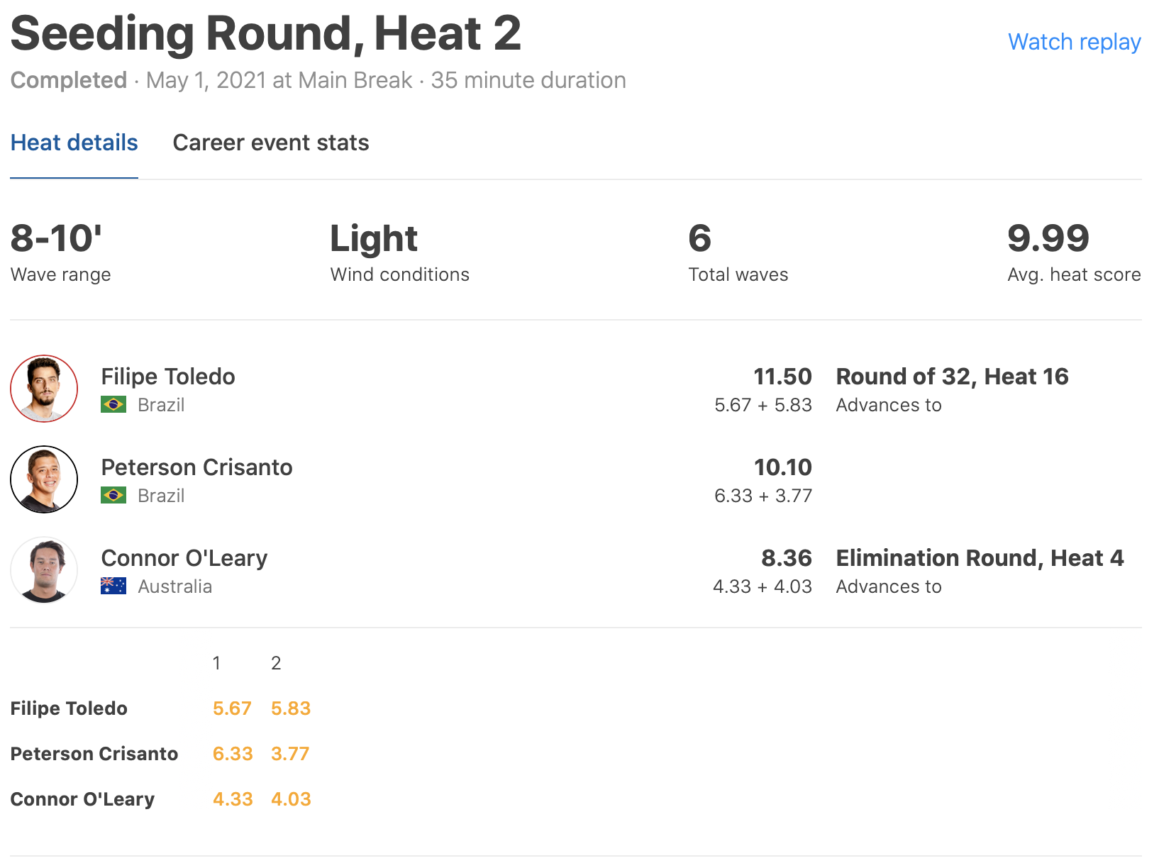 HEAT 4: Connor O’Leary (AUS) vs. TBD vs. TBD