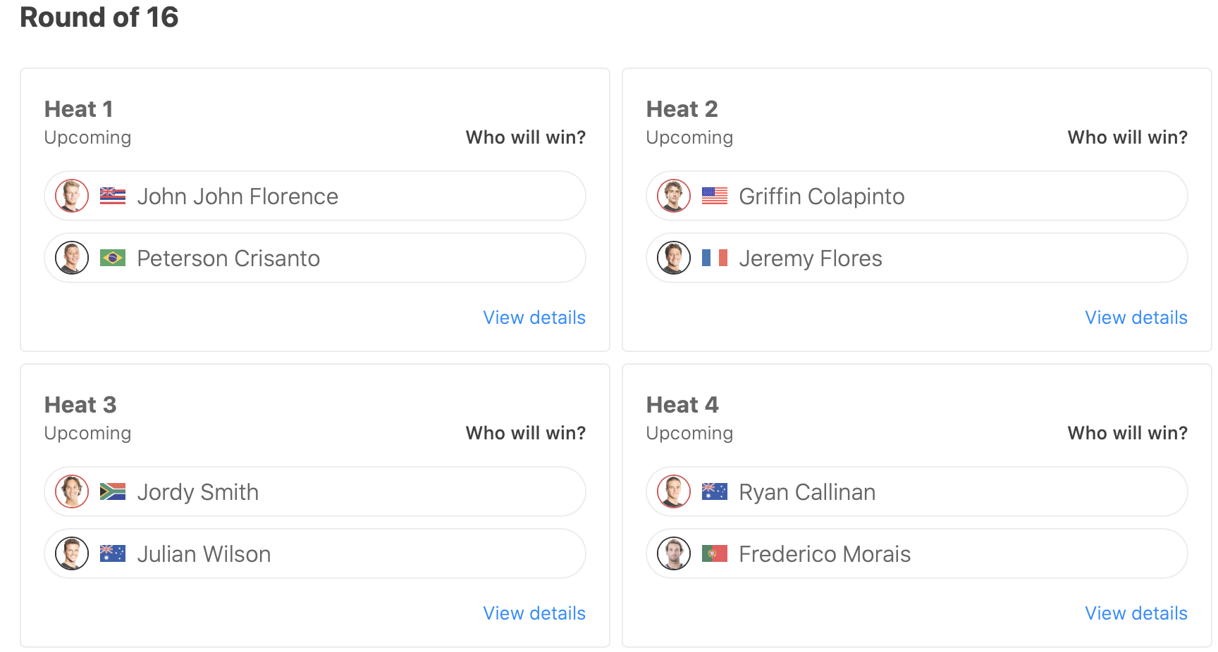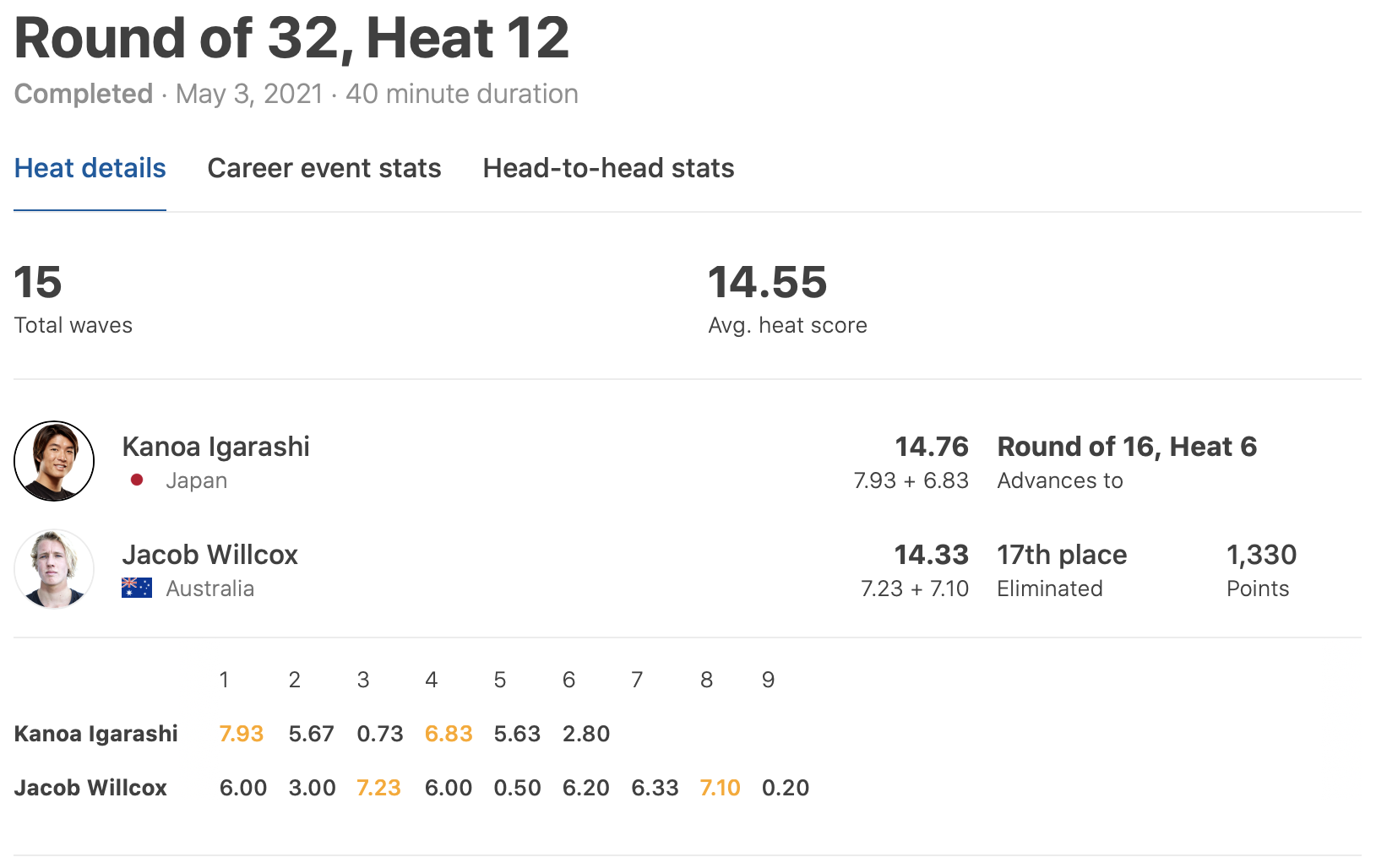 迎えるラウンドオブ16ではヒート6でCTルーキーMatthew McGillivrayと対戦予定。