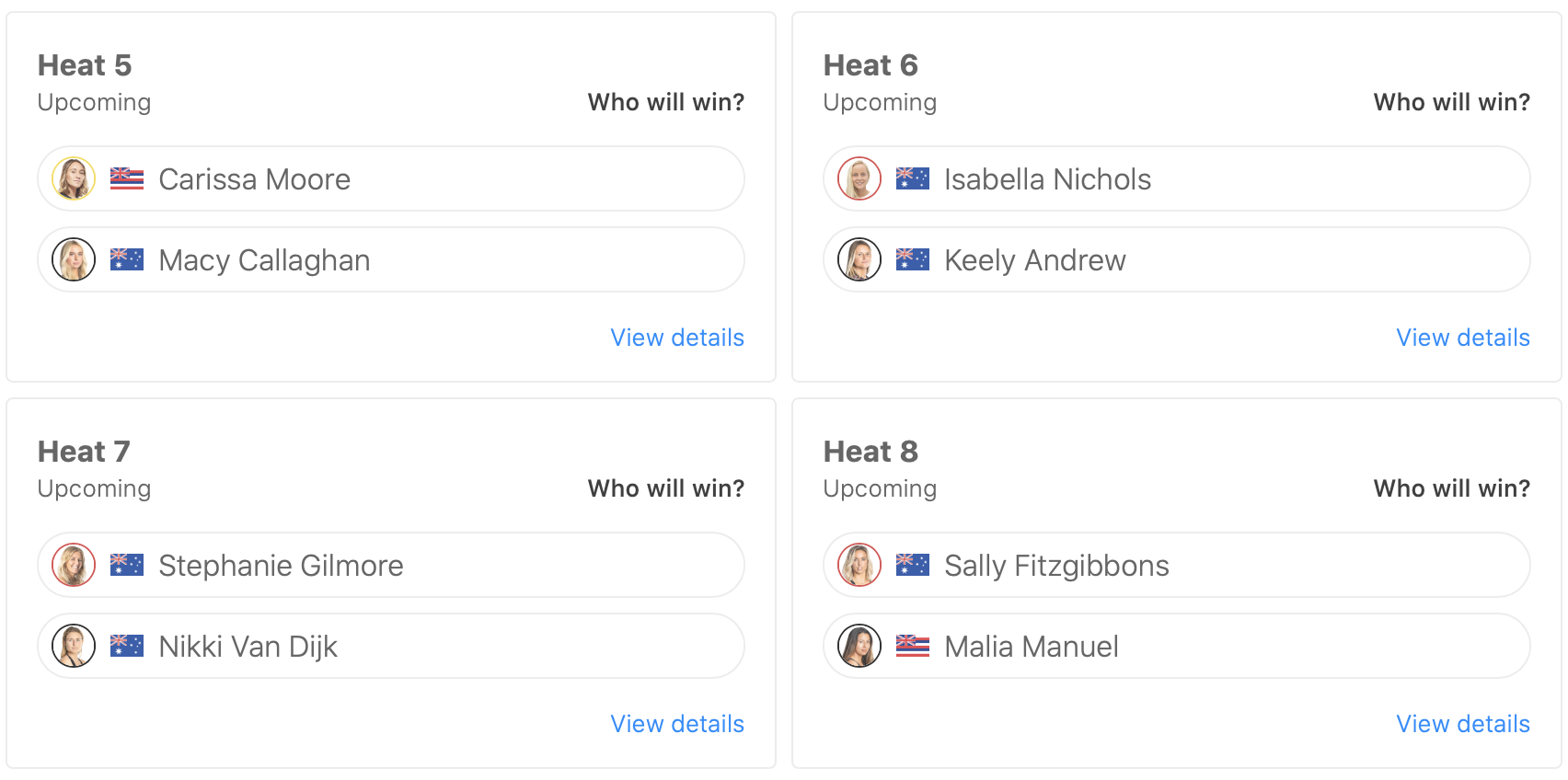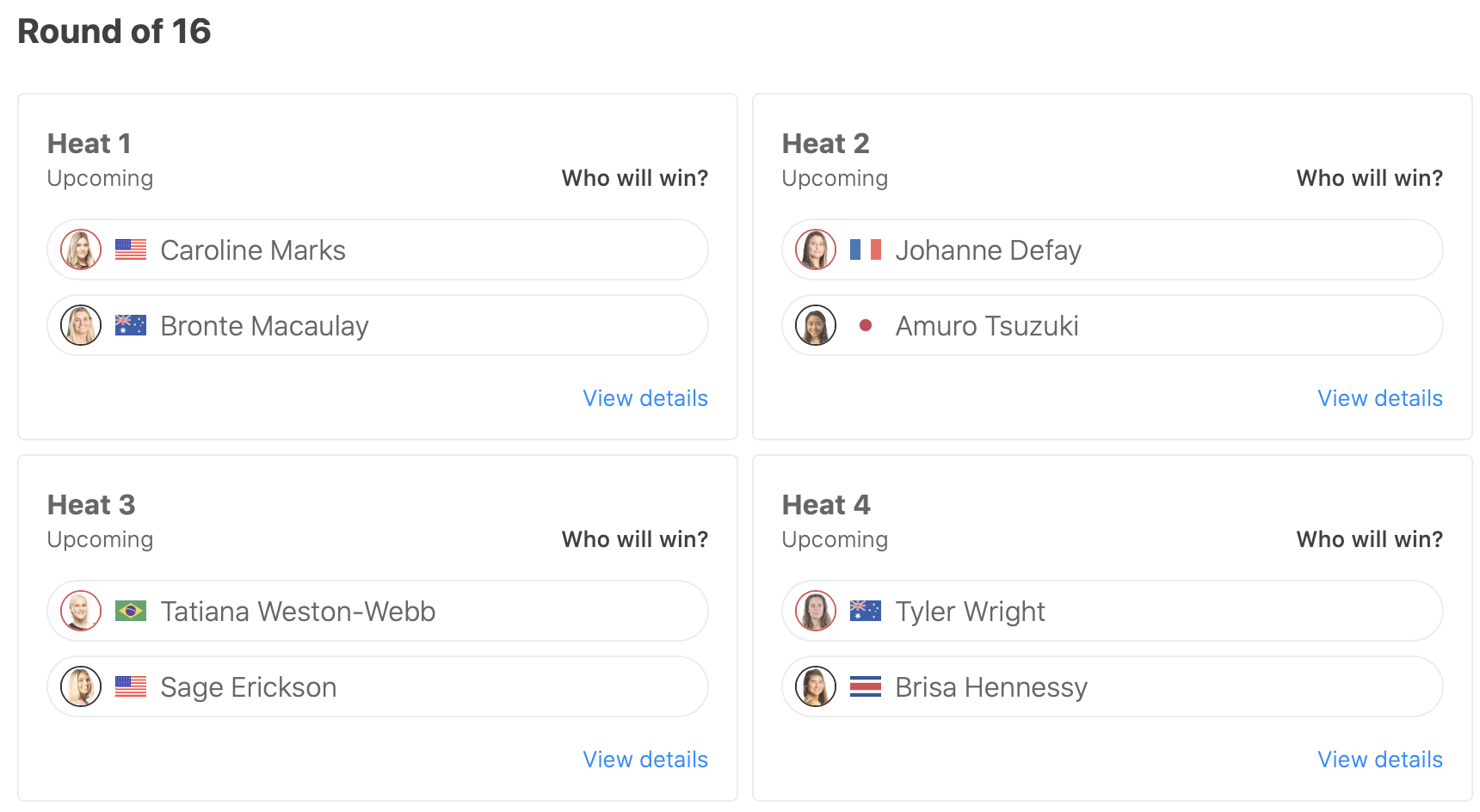 また、コンテストDAY1でCaroline MarksとMalia Manuelを抑える大活躍を見せた都筑有夢路は、迎えるラウンドオブ16のヒート2でJohanne Defayと対戦予定。