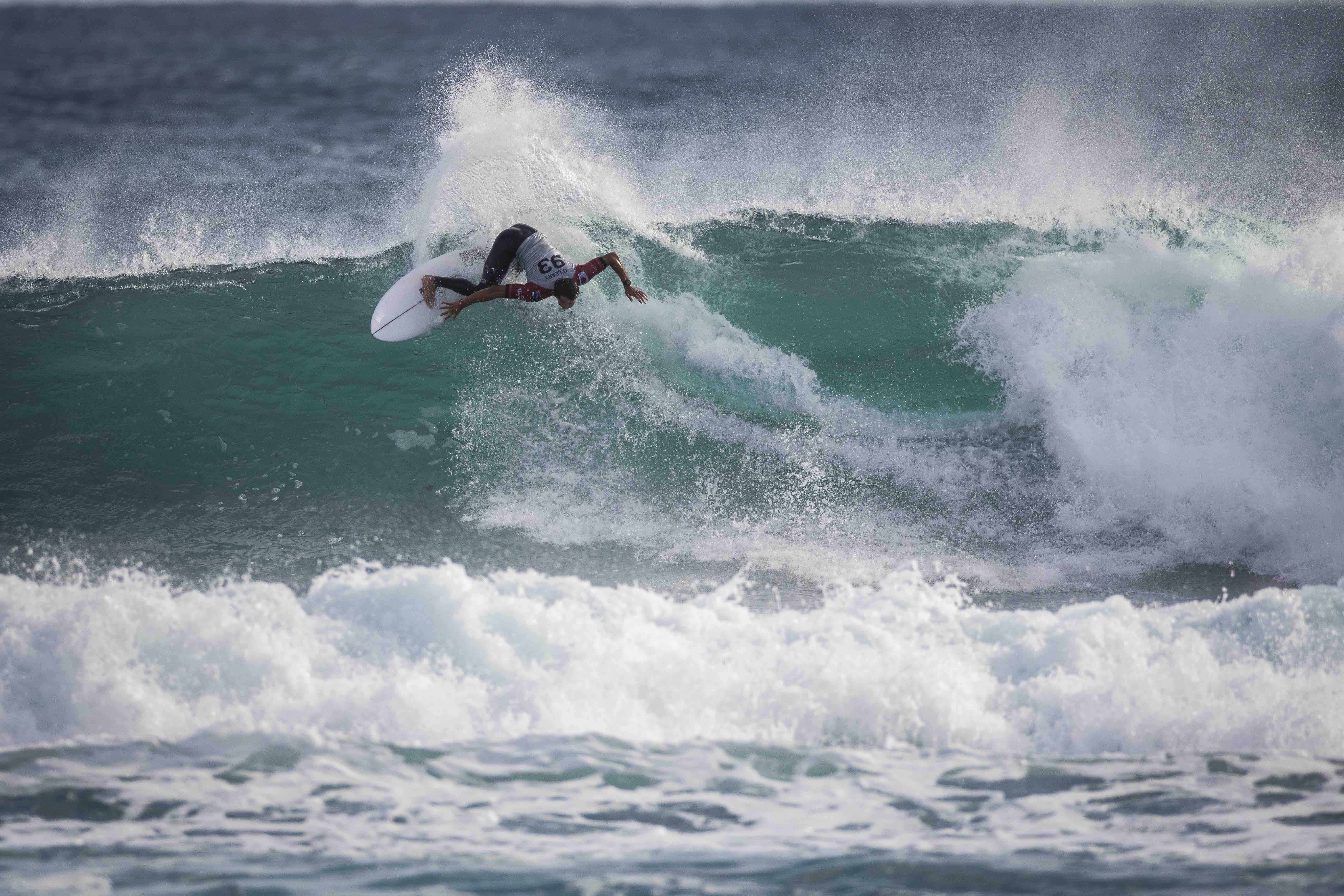 逆転を狙って掴んだこの波でパワフルなバックサイド・サーフィンを披露し、これが8.93ptのエクセレント・スコアをマーク!