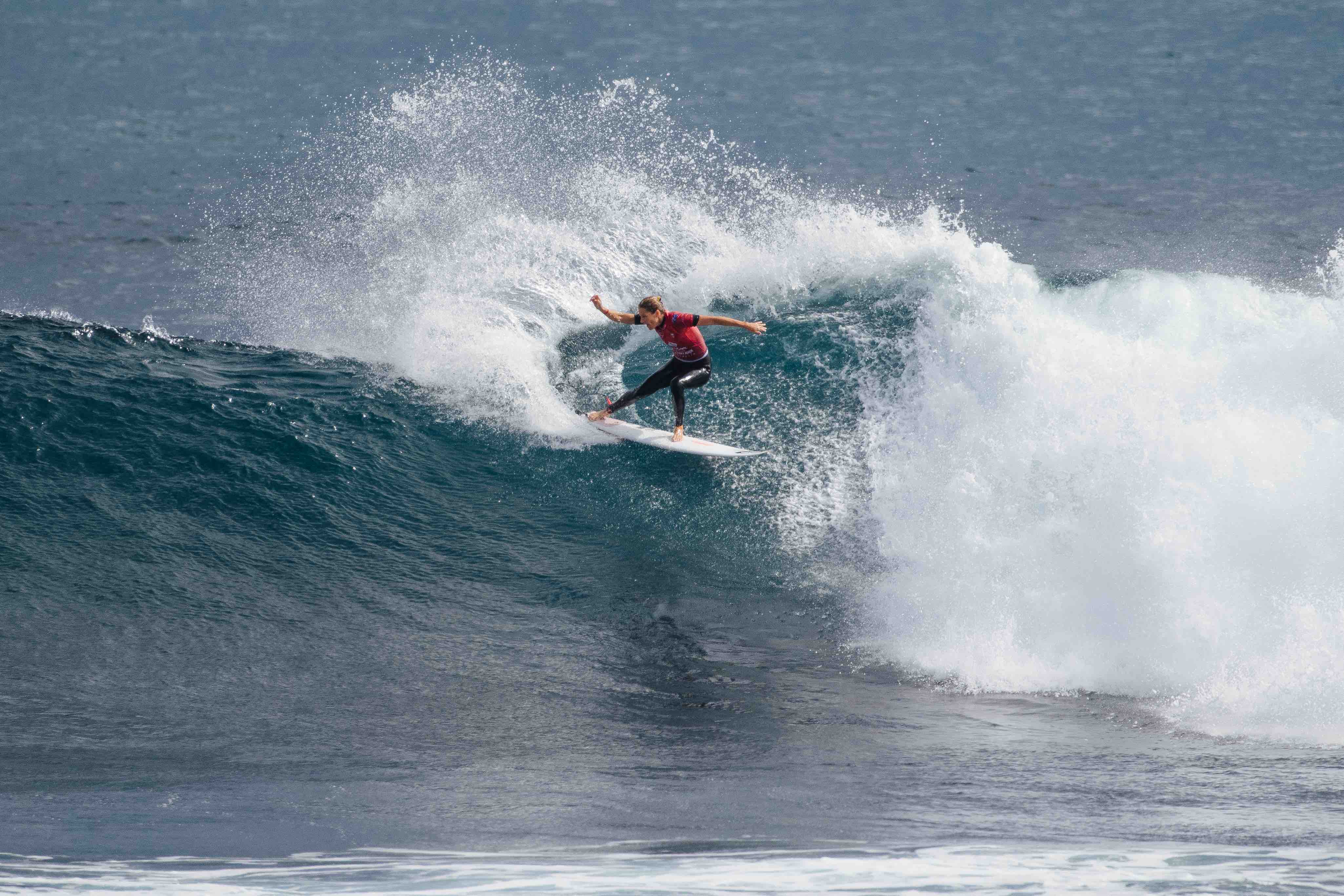 続いて行われたWOMENSクォーターファイナルではヒート2でTatiana Weston-Webbがエクセレントスコアとなる素晴らしいライディングを披露し、ワールドチャンプTyler Wrightに勝利。